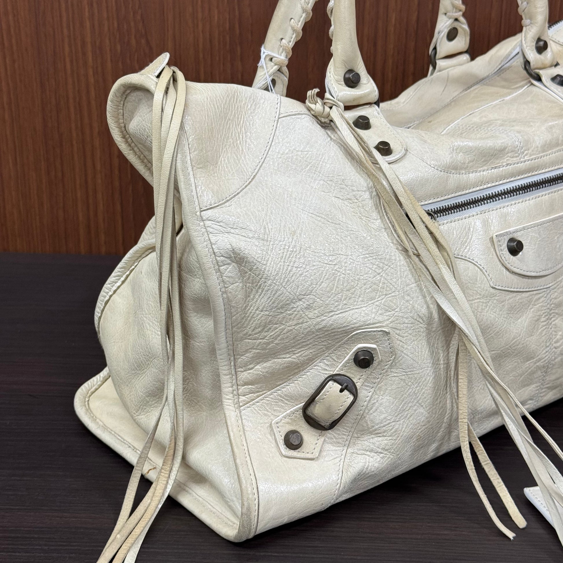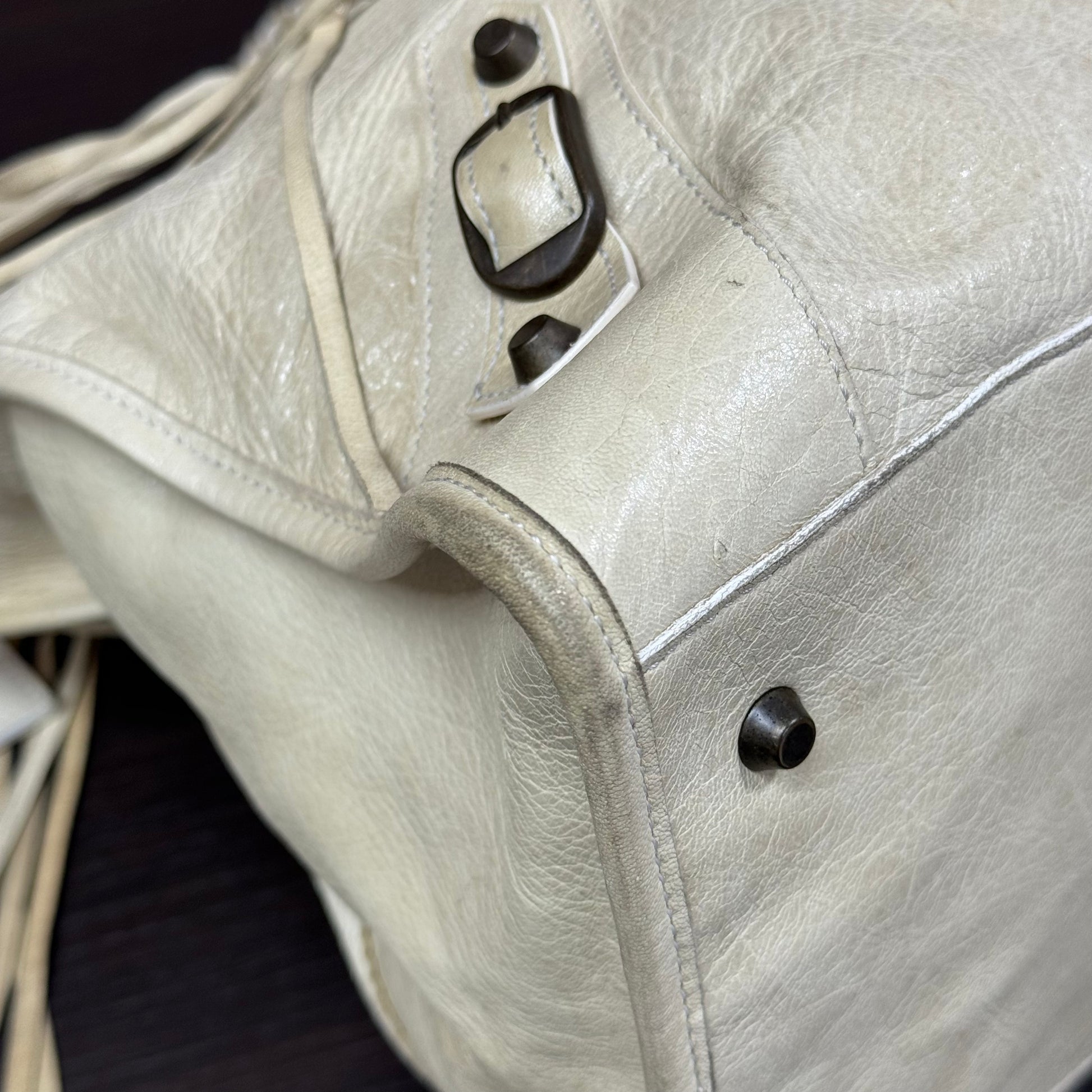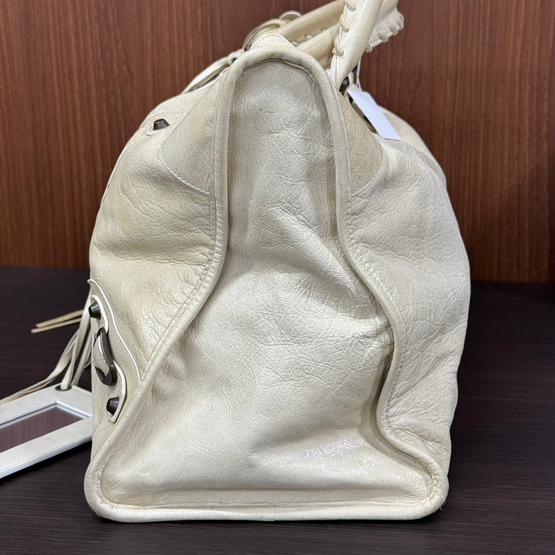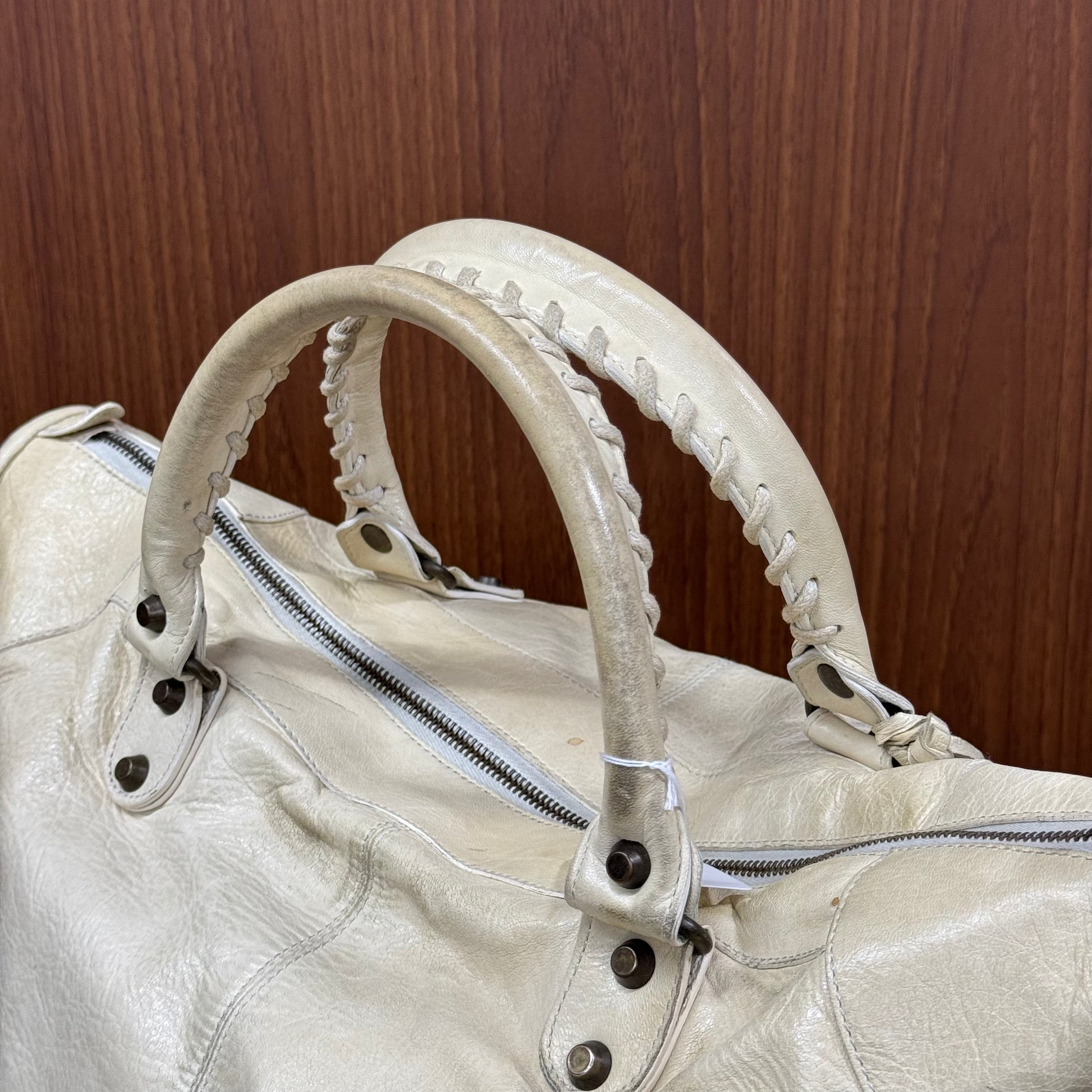 Sac City Balenciaga en cuir d'agneau arena blanc cassé.