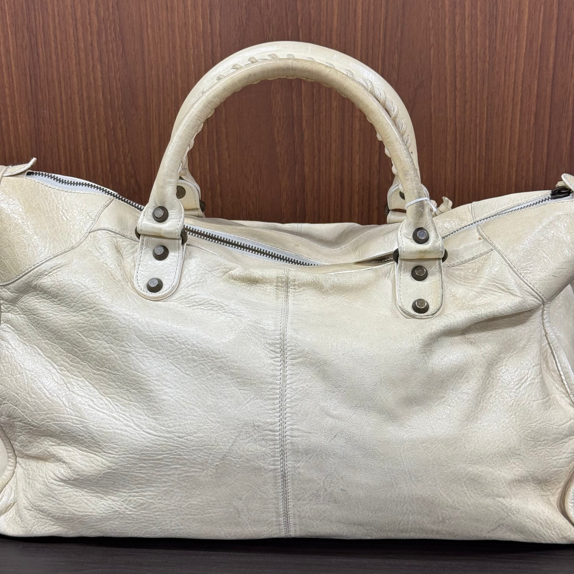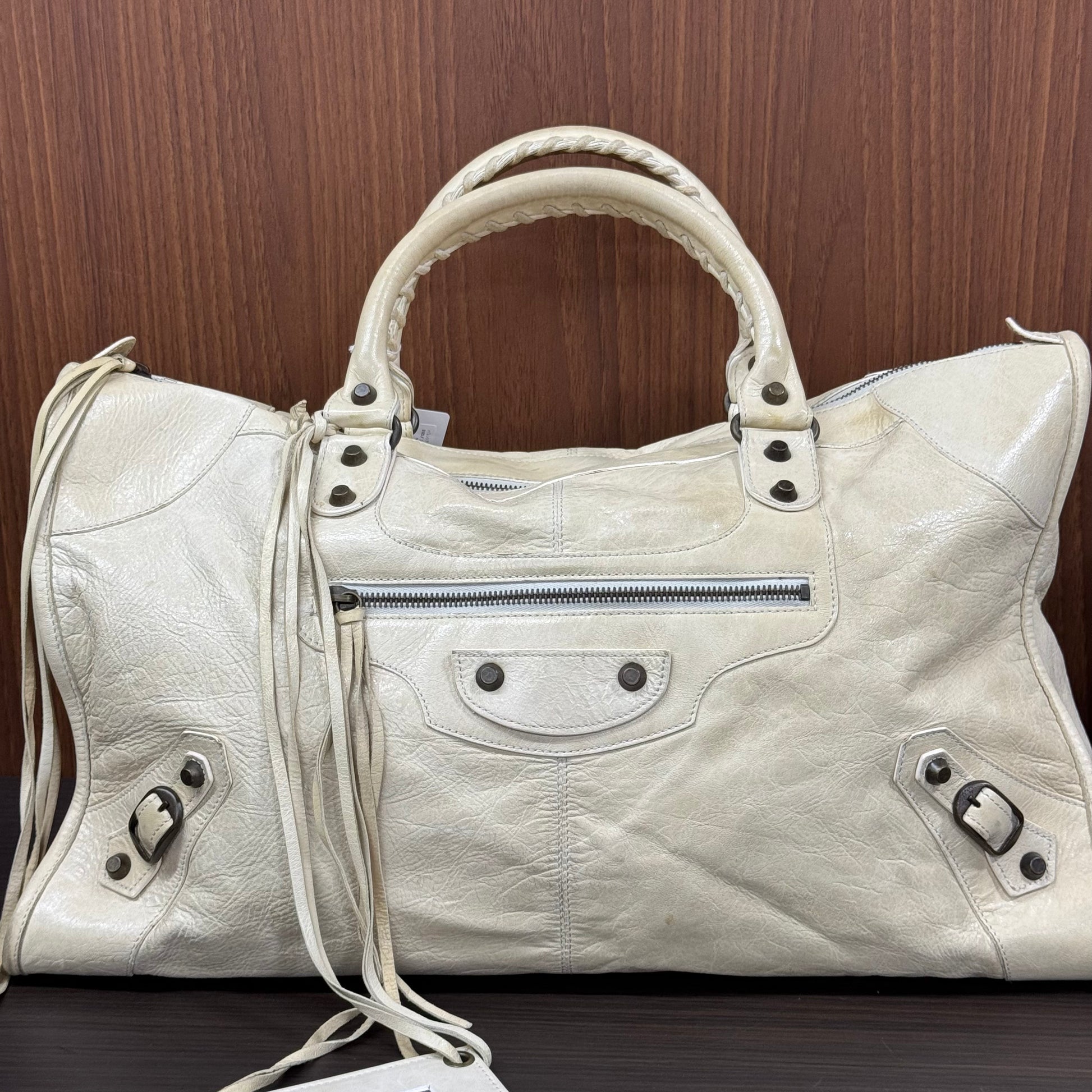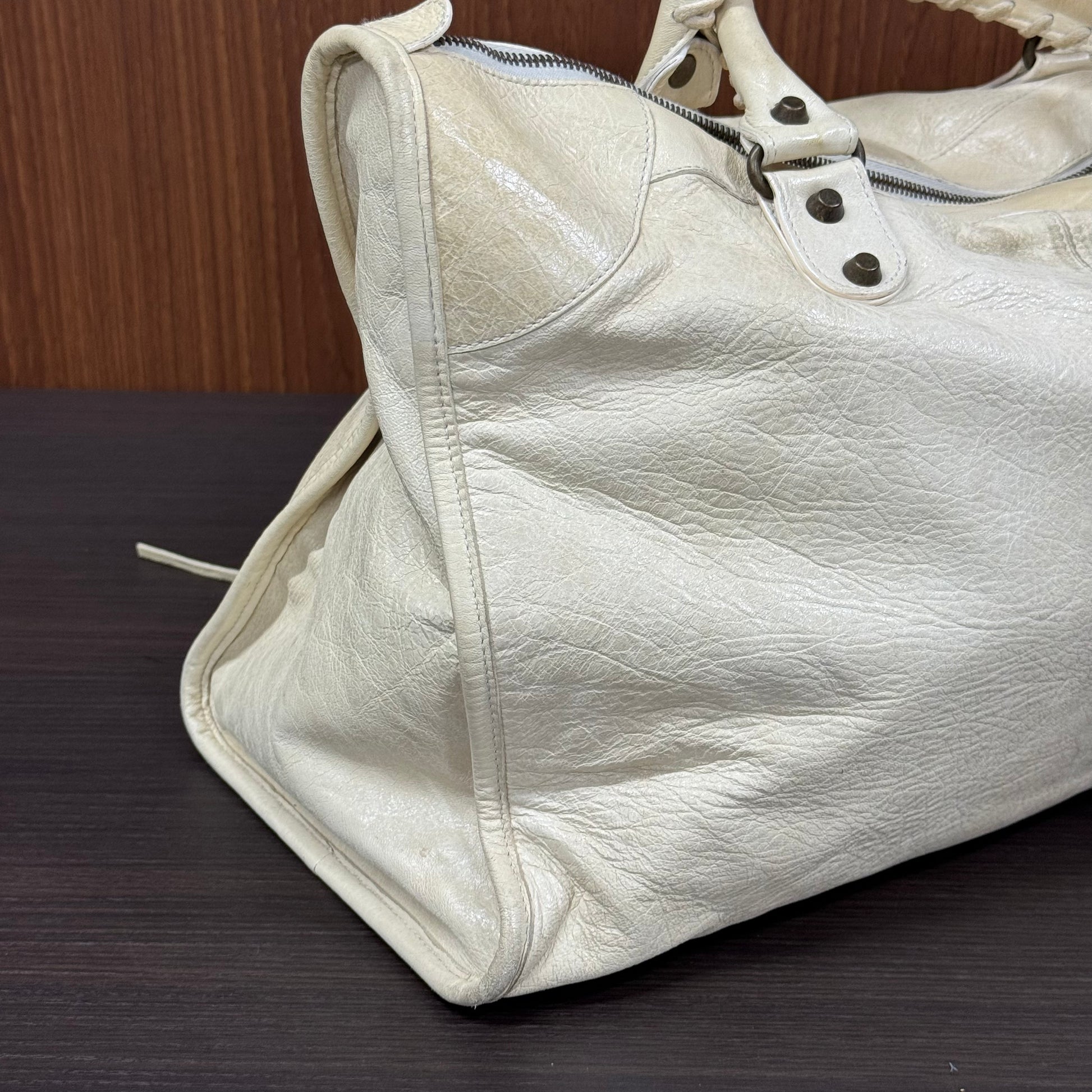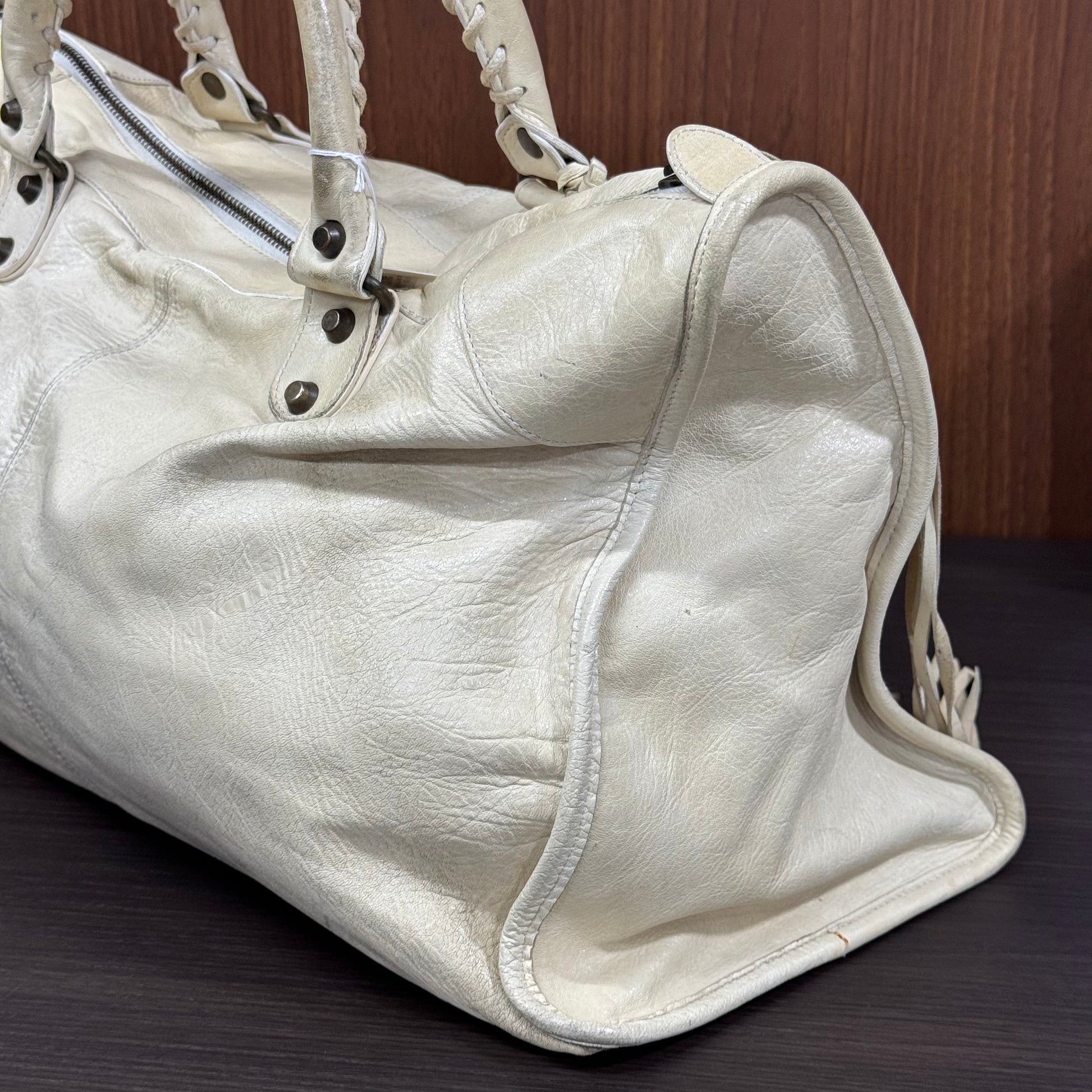 Sac City Balenciaga en cuir d'agneau arena blanc cassé.