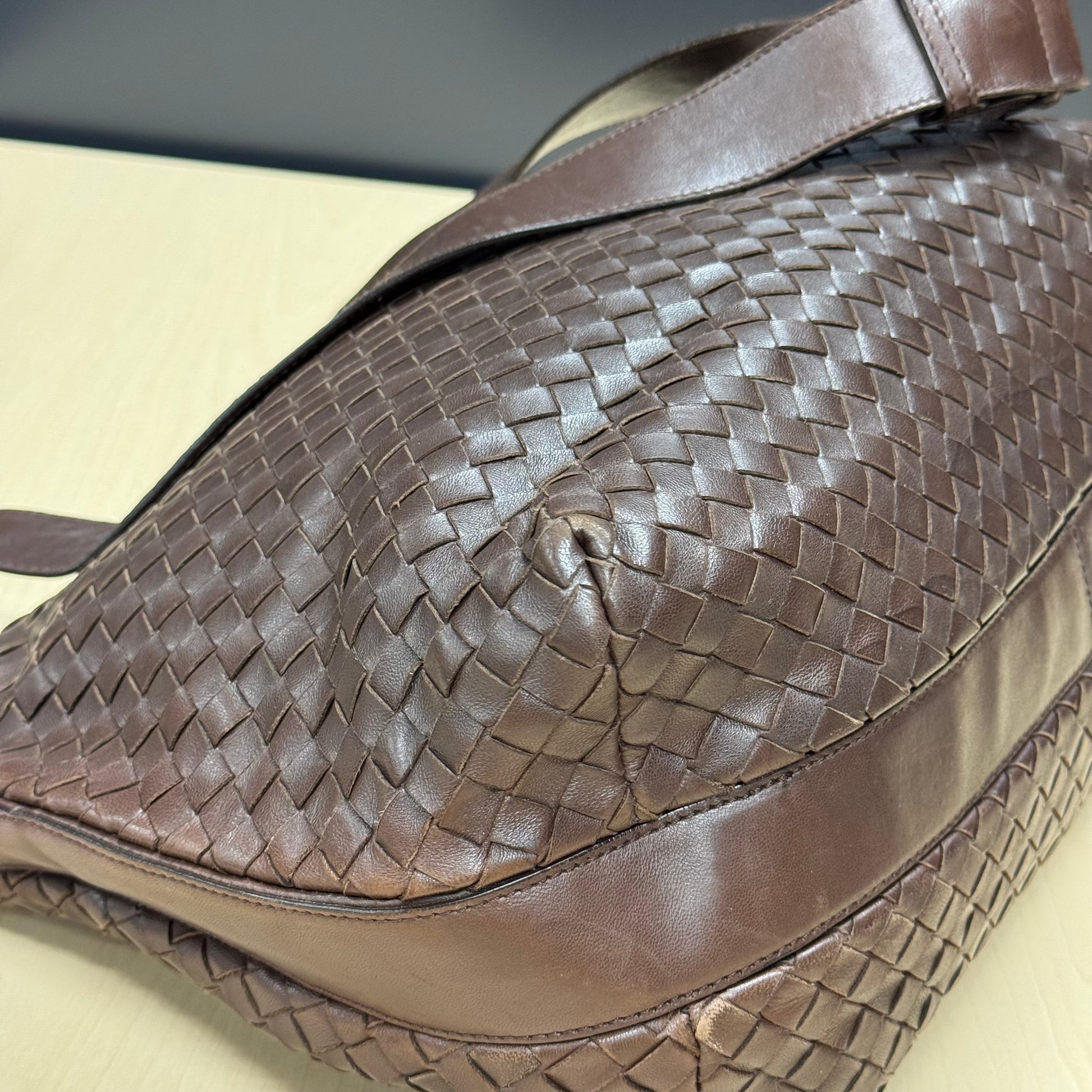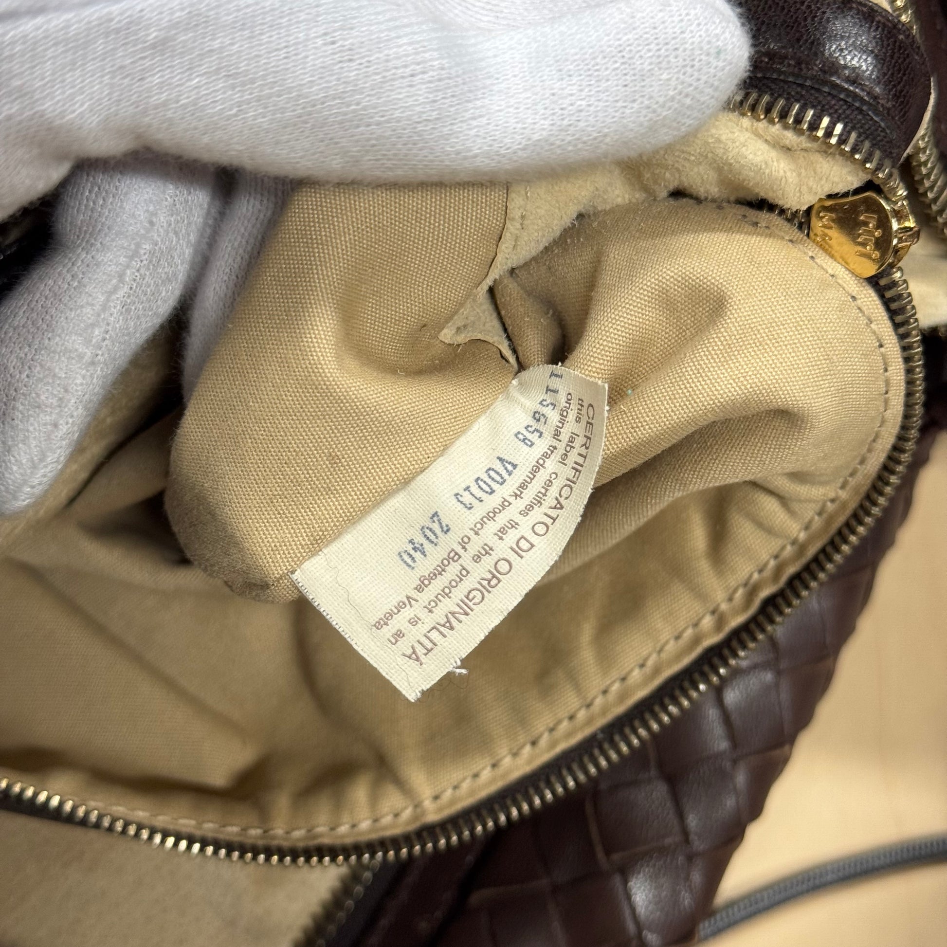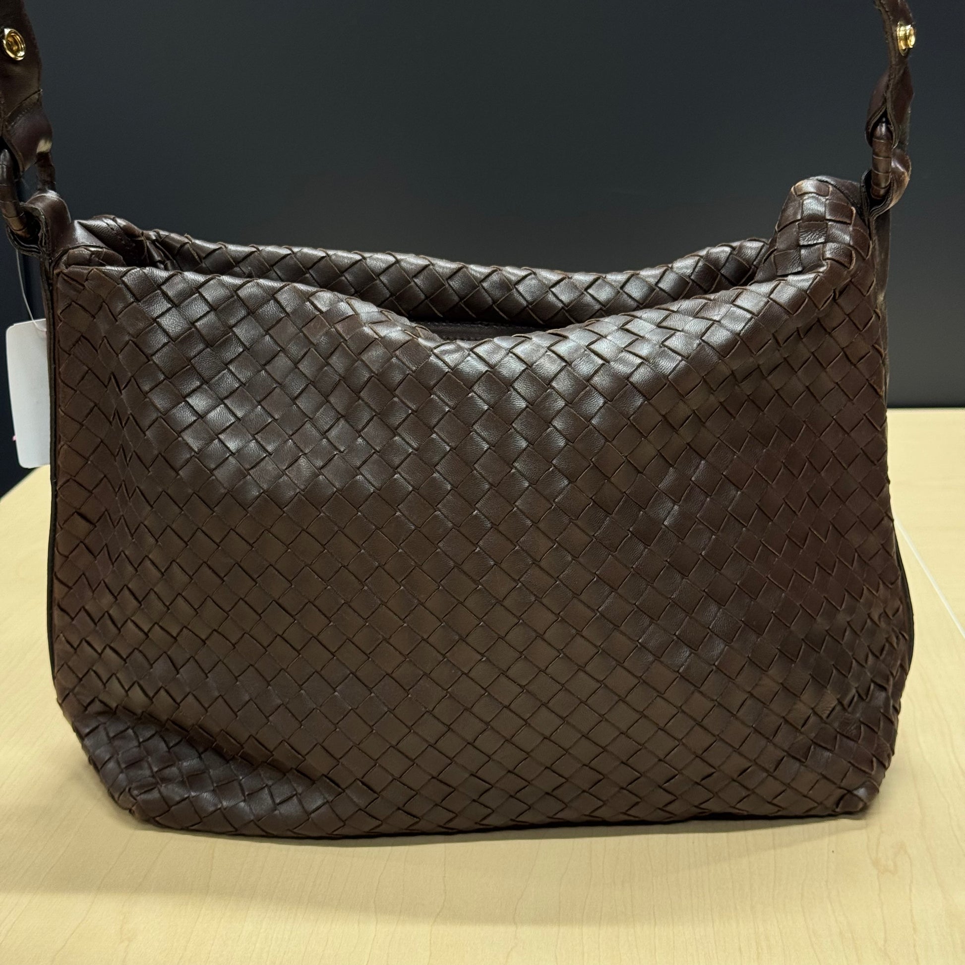 Sac bourse porté bandoulière en cuir intrecciato chocolat