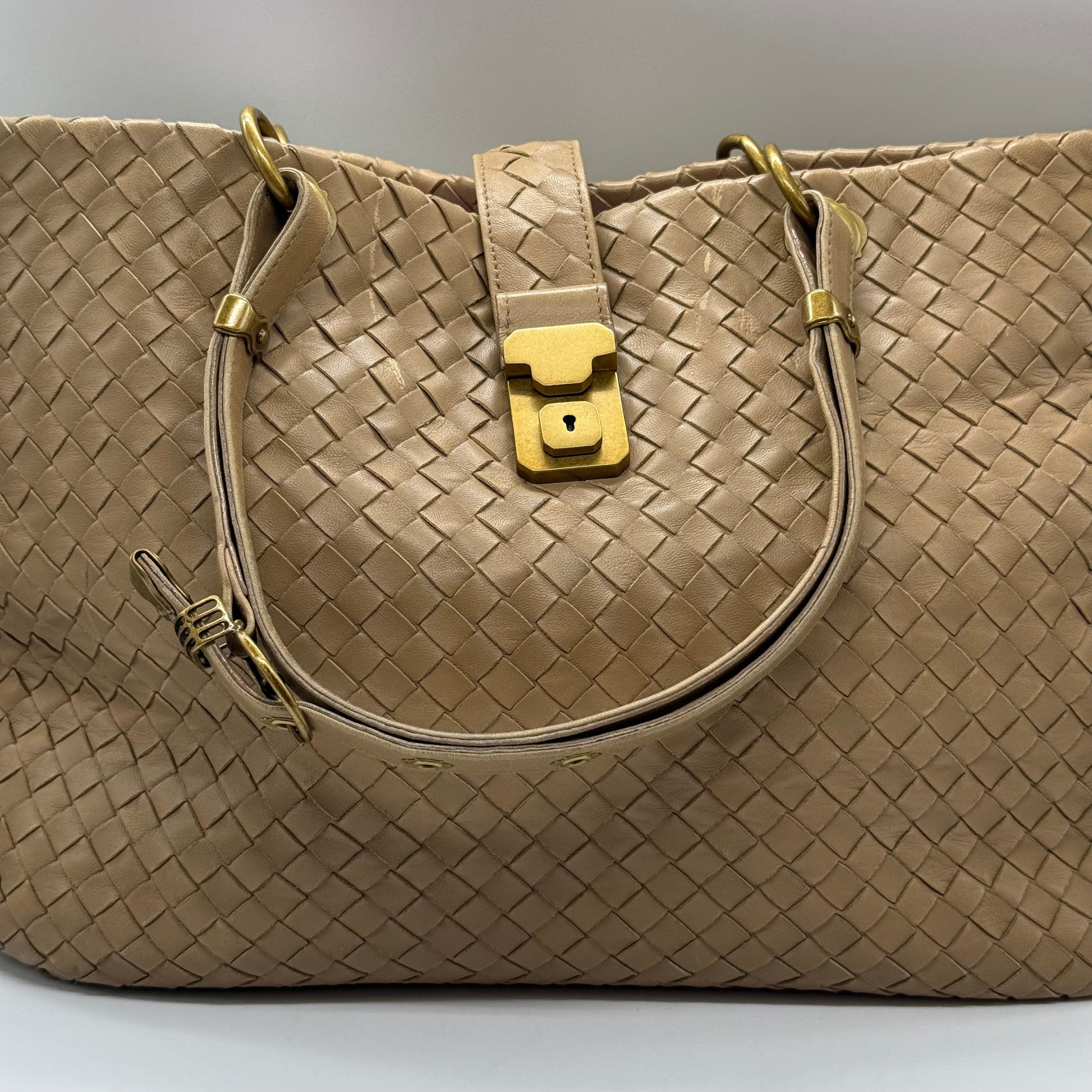 Très Grand shopping en cuir intrecciato camel , porté épaule