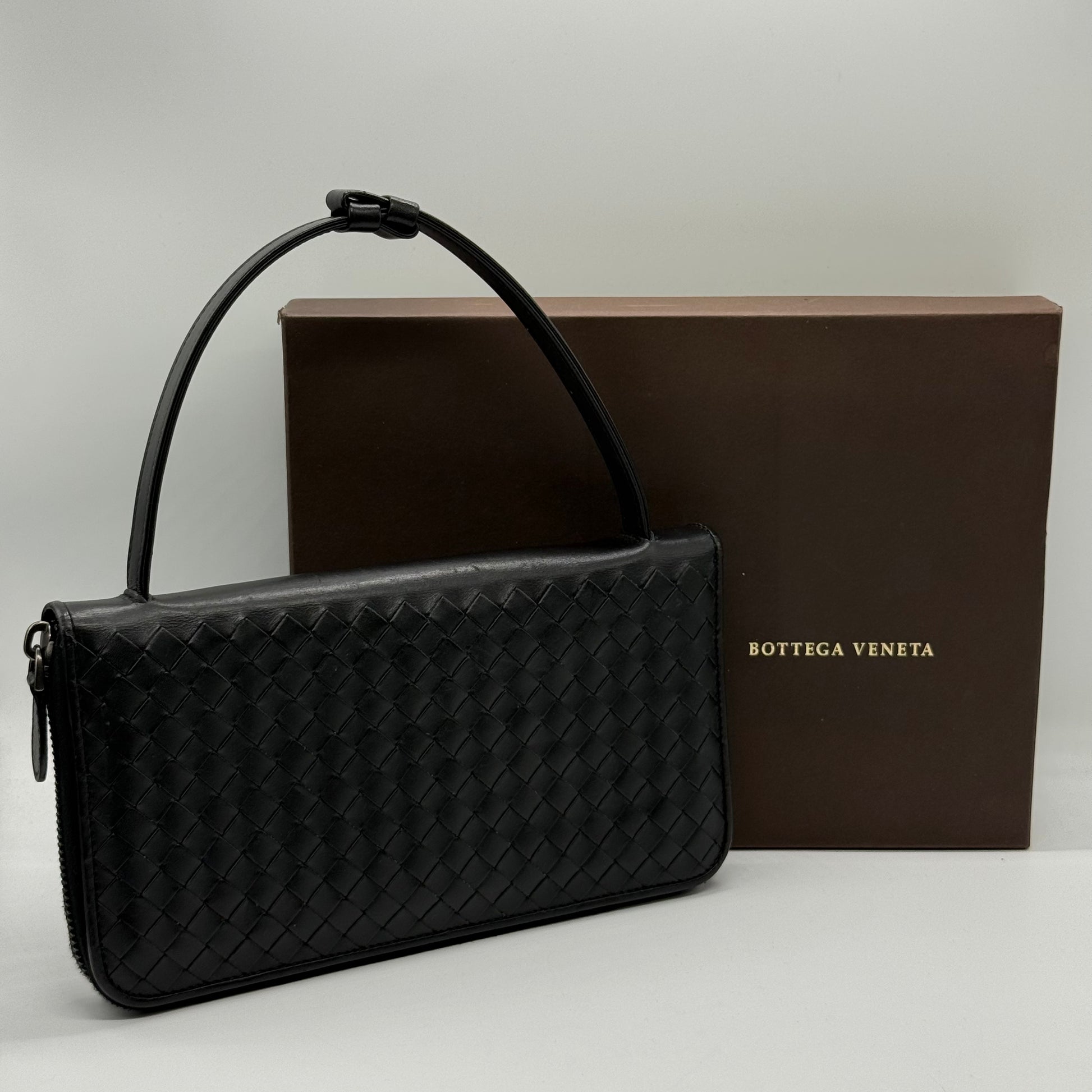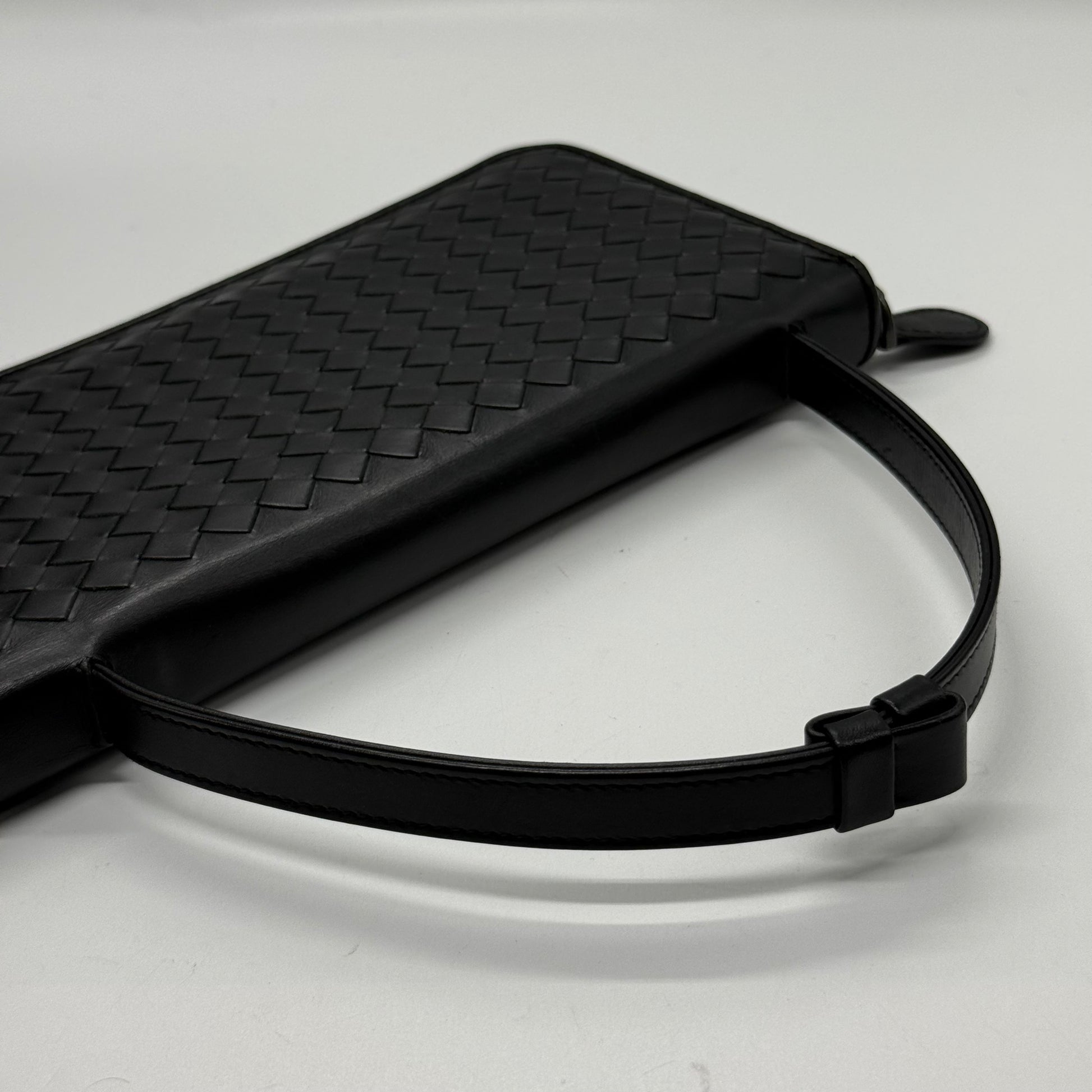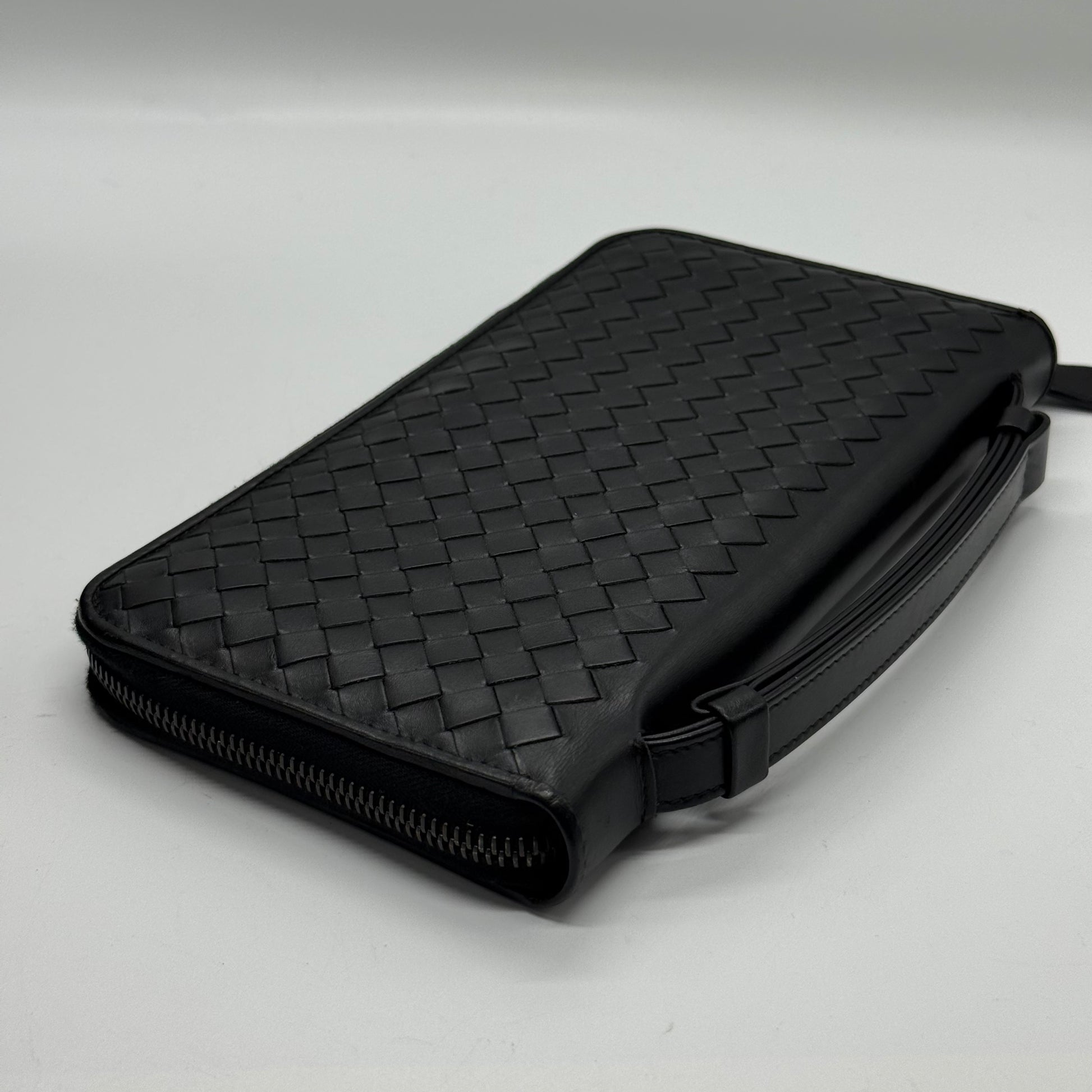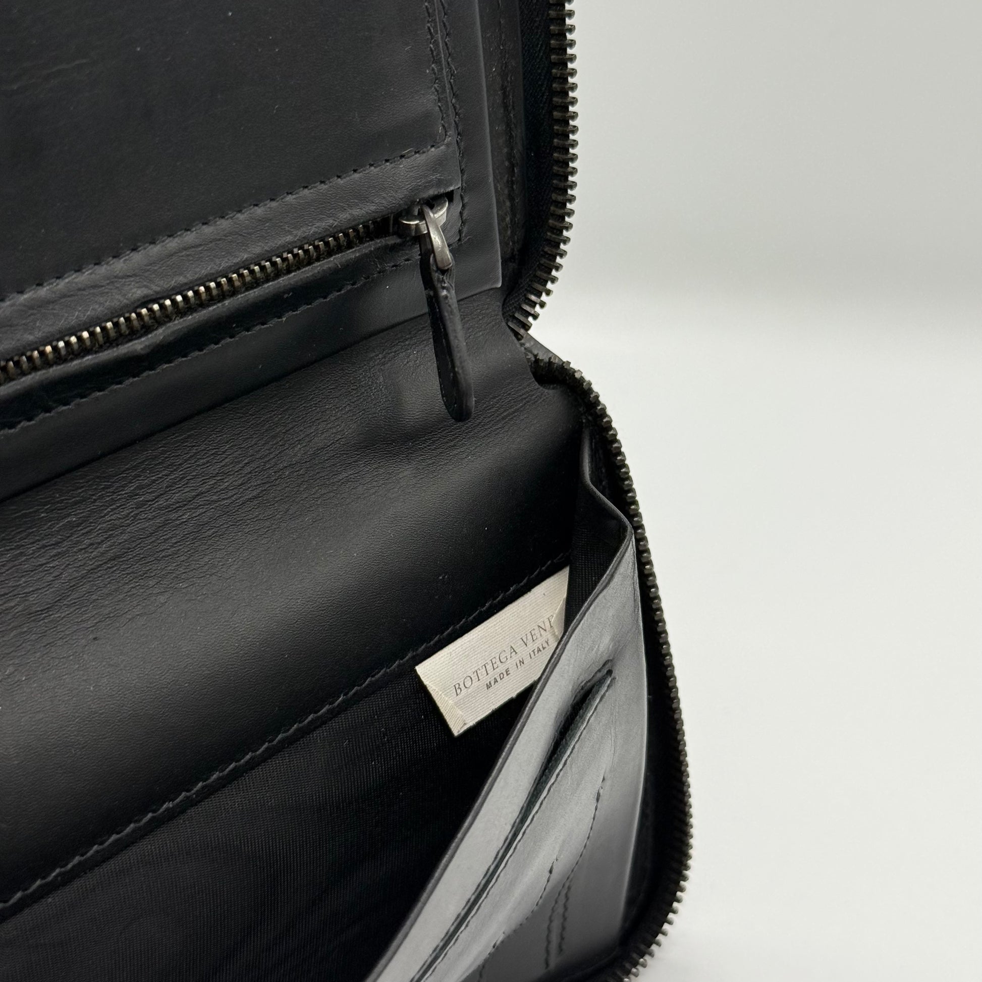 Porte document de voyage Bottega Veneta en cuir intrecciato noir.
