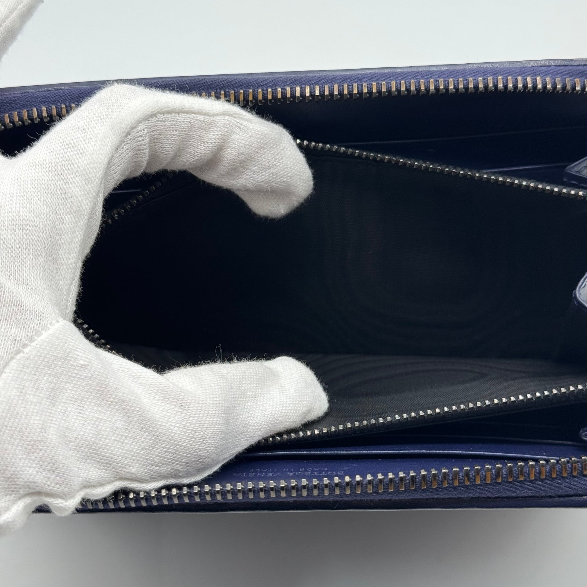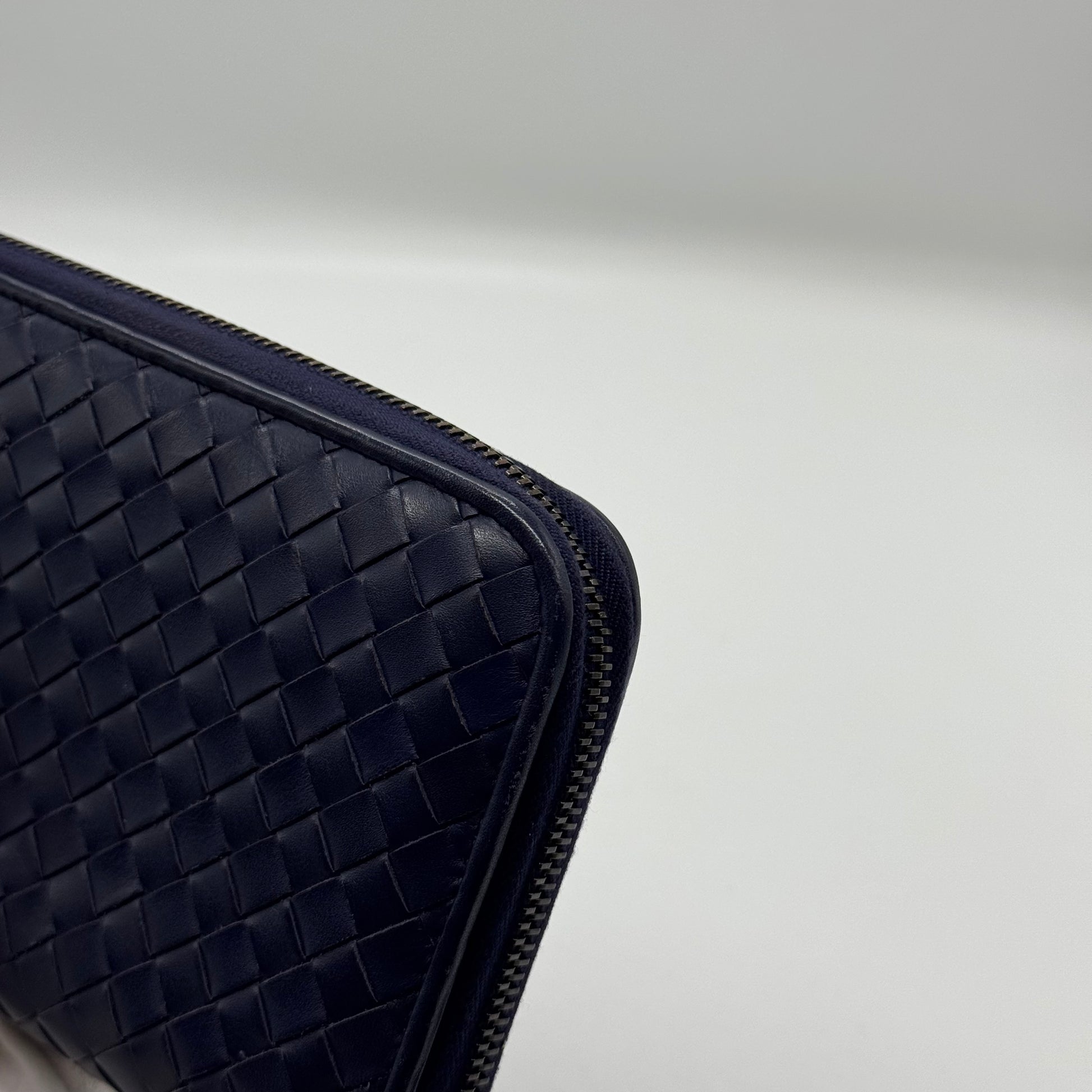 Portefeuille Bottega en cuir Intrecciato bleu nuit