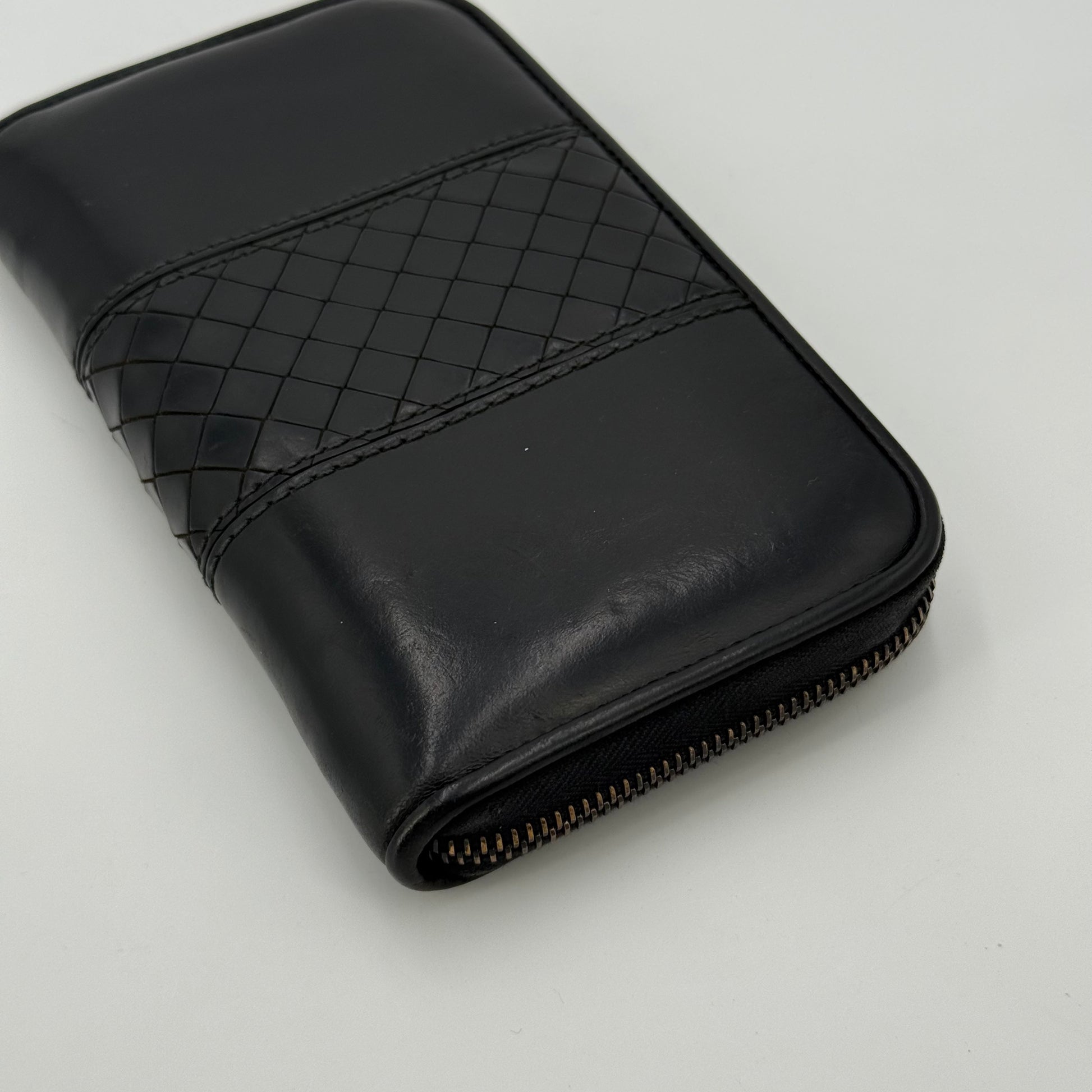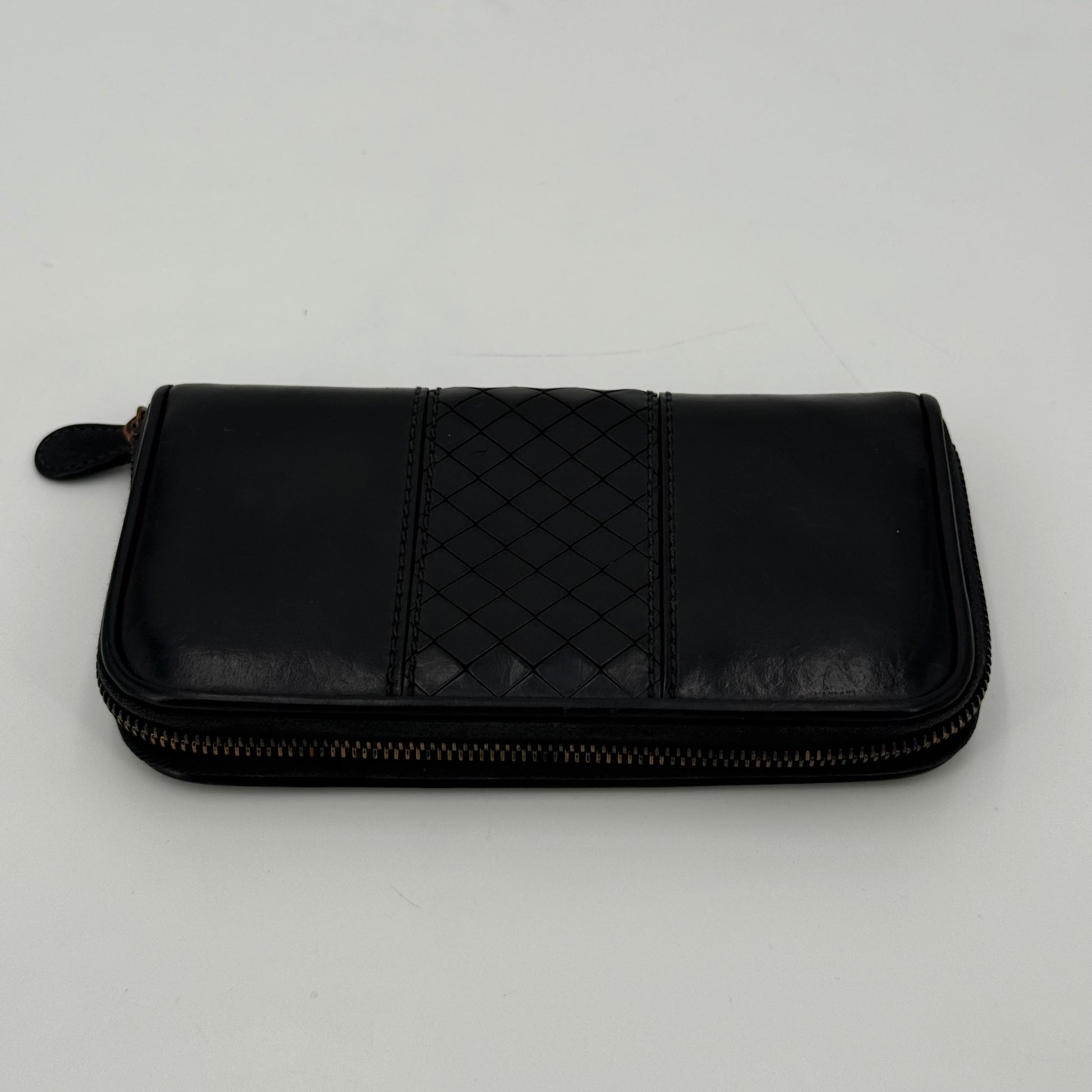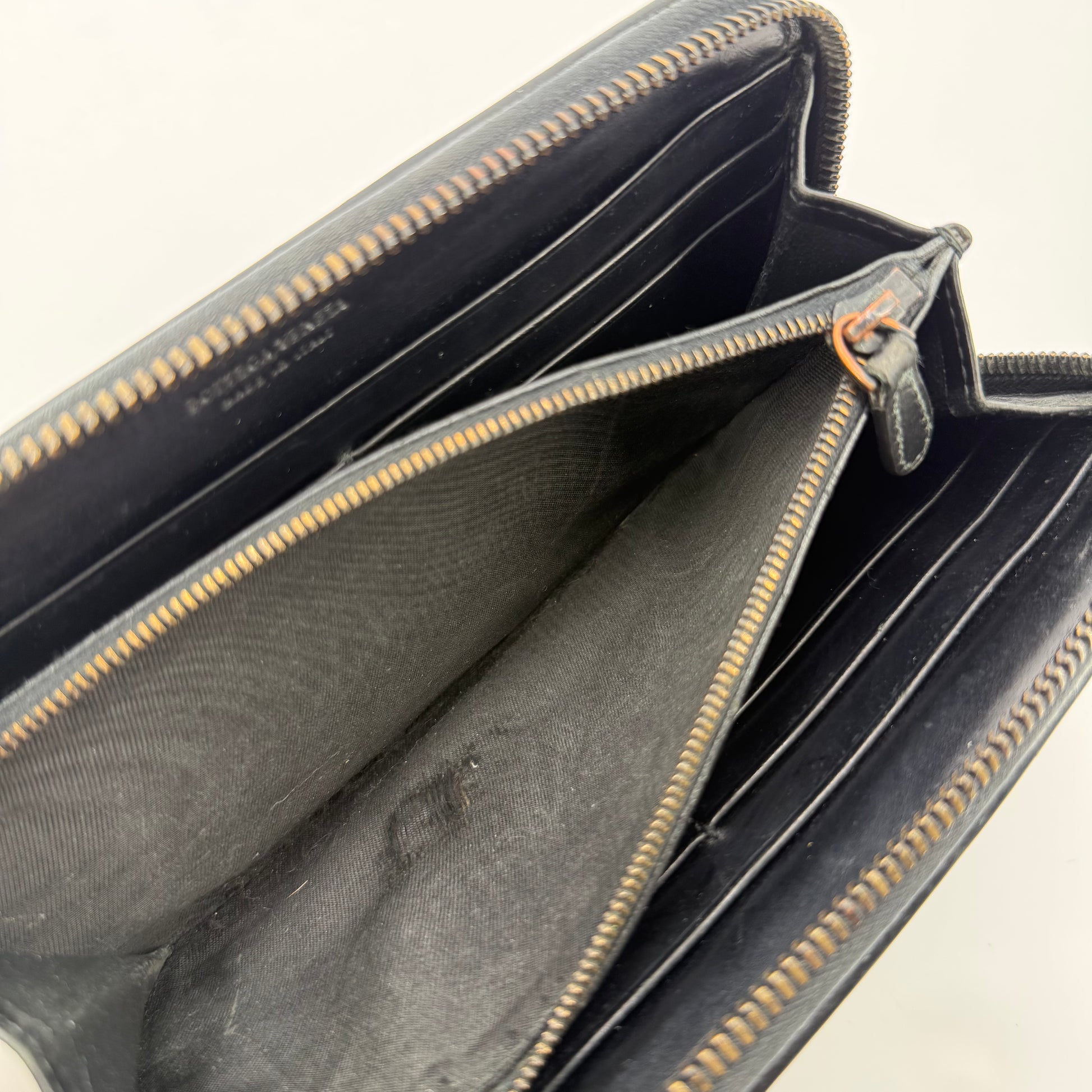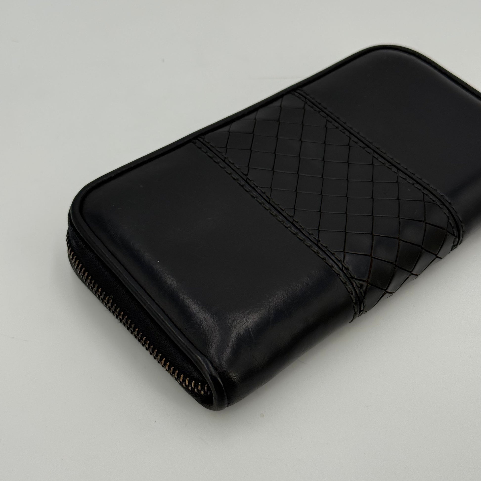 Portefeuille Bottega Veneta en cuir de veau noir.
