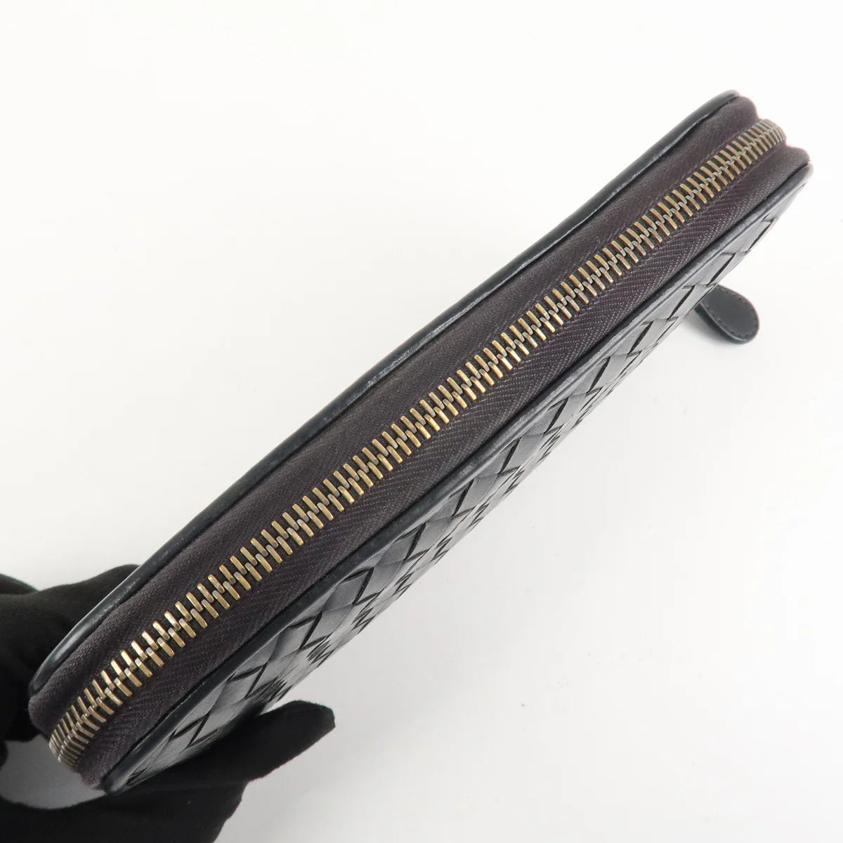 Portefeuille long en cuir intrecciato noir , avec sa boîte .