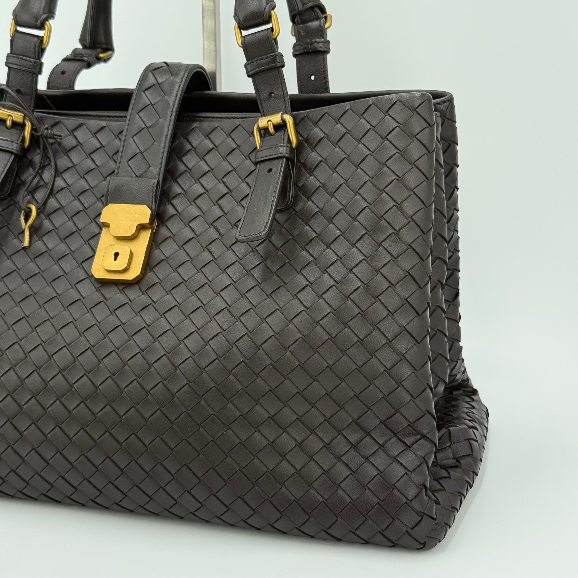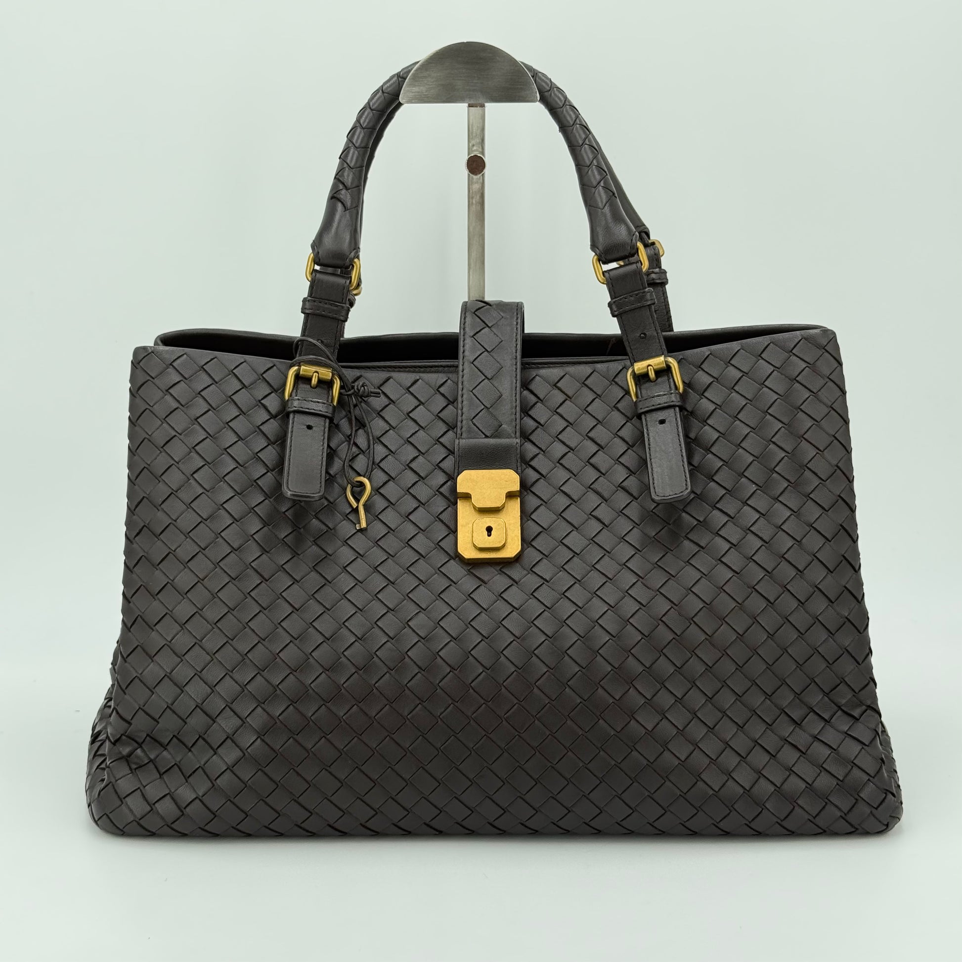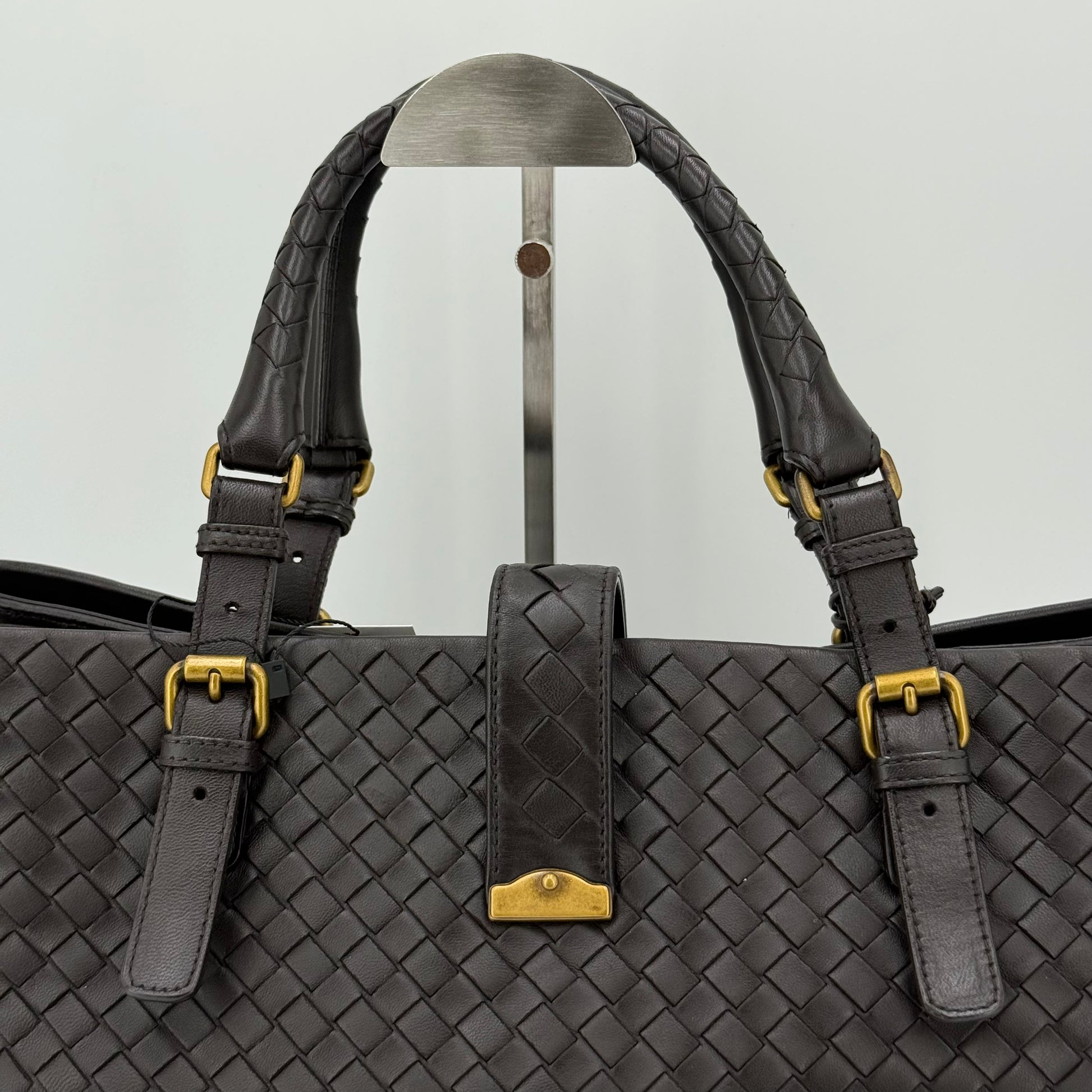 Sac Bottega Veneta Roma en cuir de veau intrecciato brun.