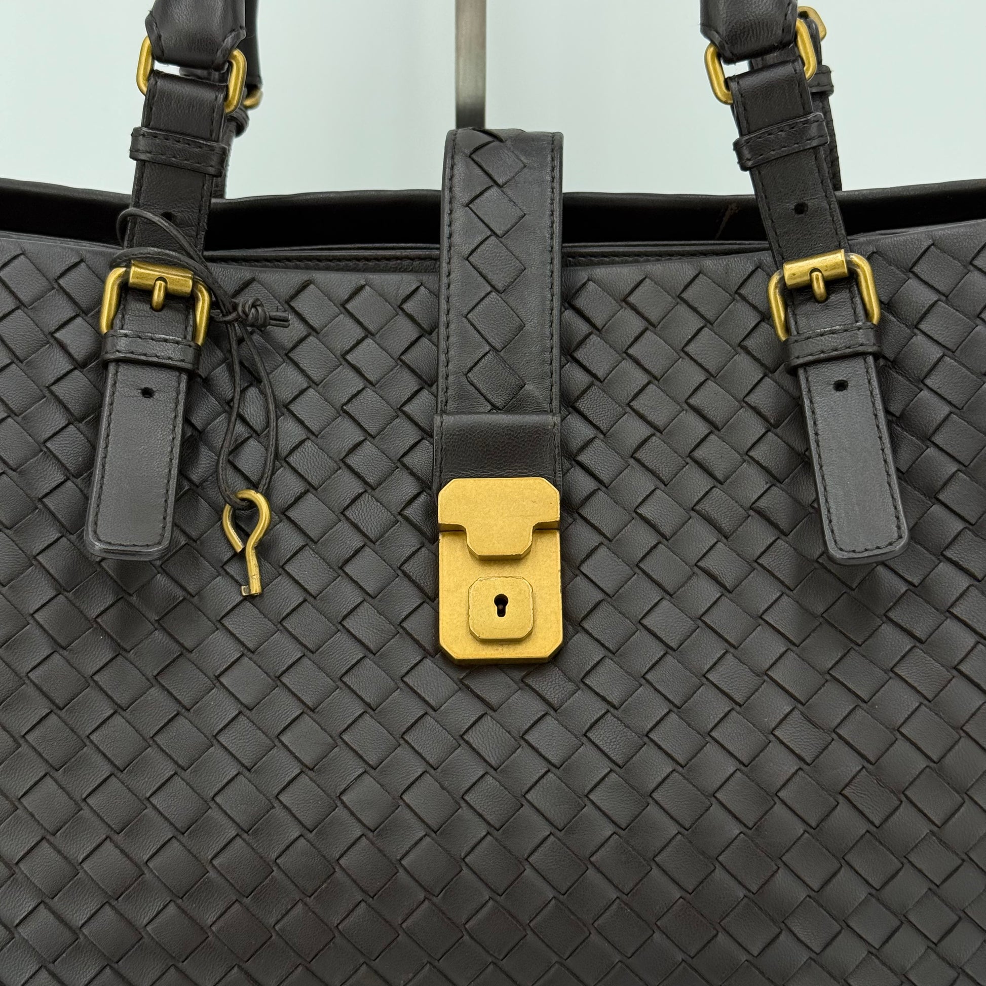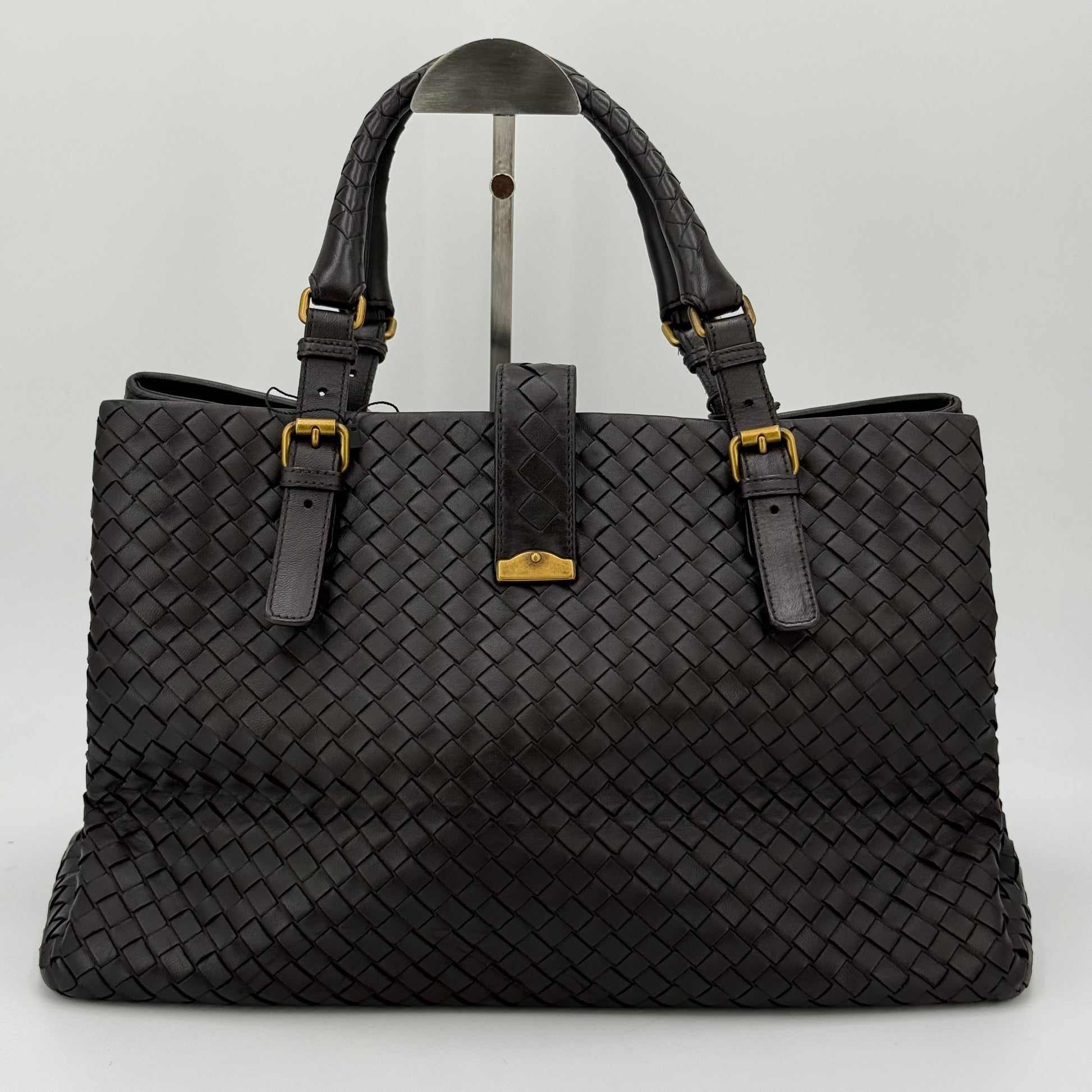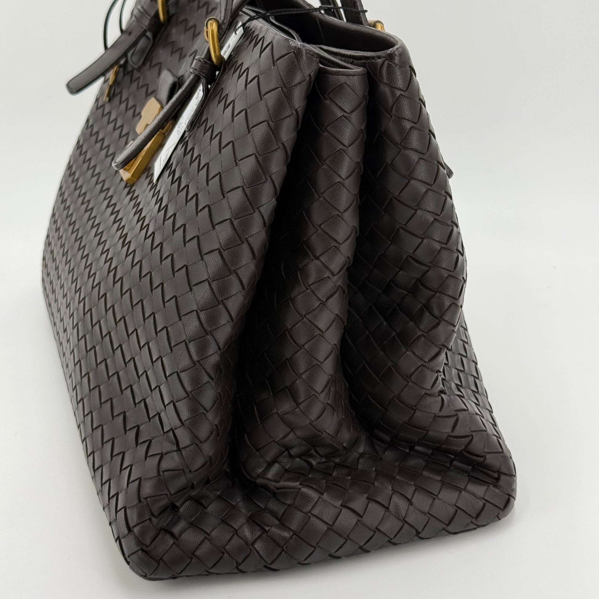 Sac Bottega Veneta Roma en cuir de veau intrecciato brun.
