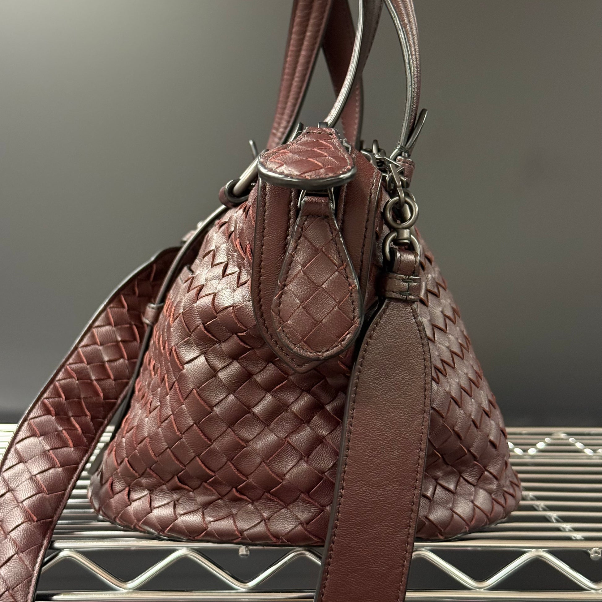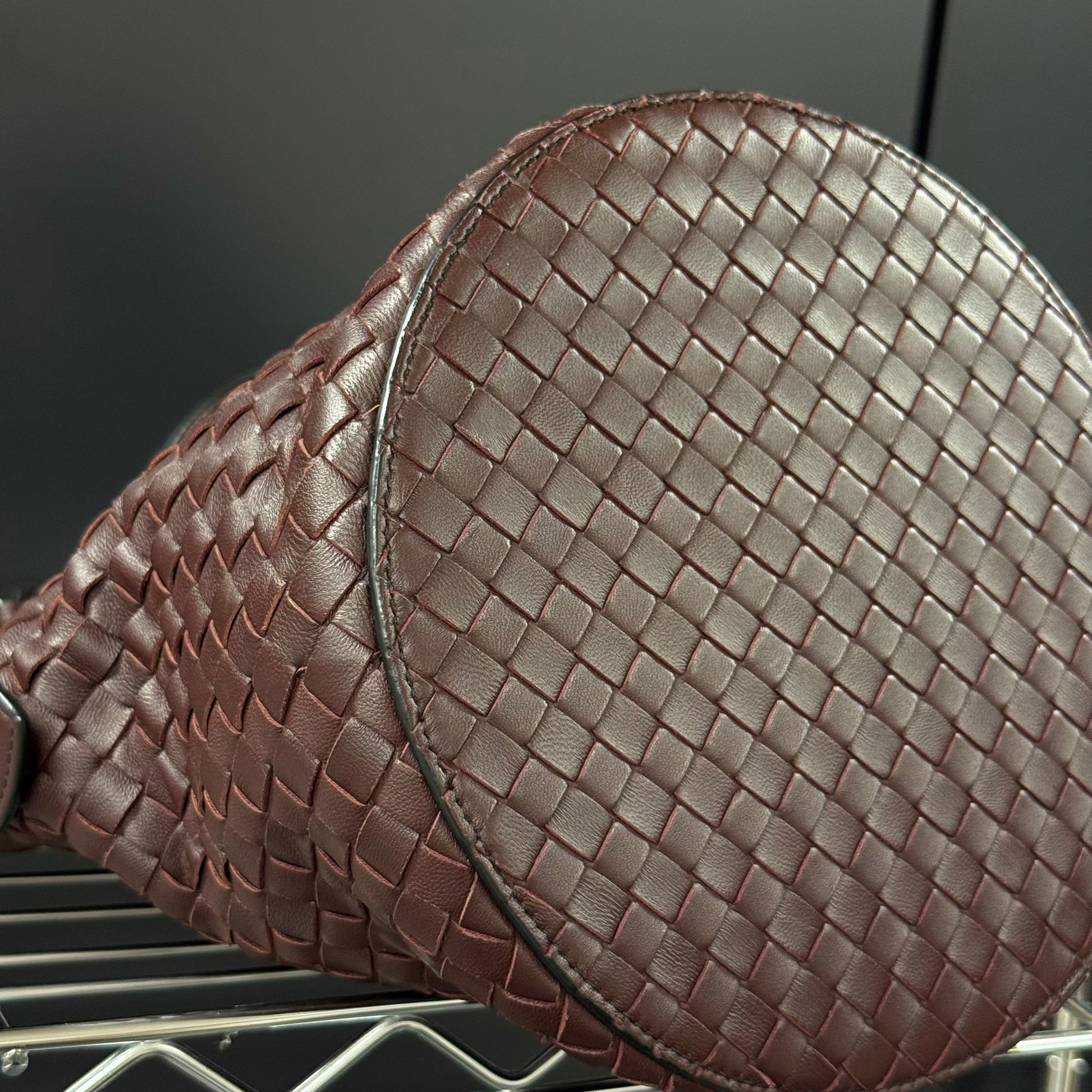 Sac Bottega Veneta Tambura en cuir intrecciato bordeaux.