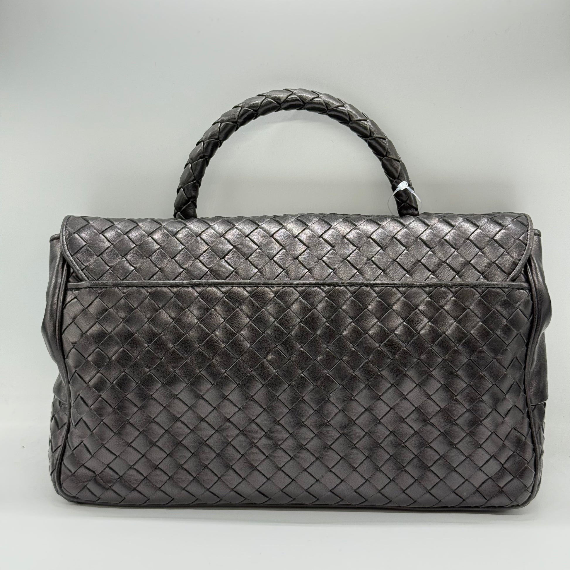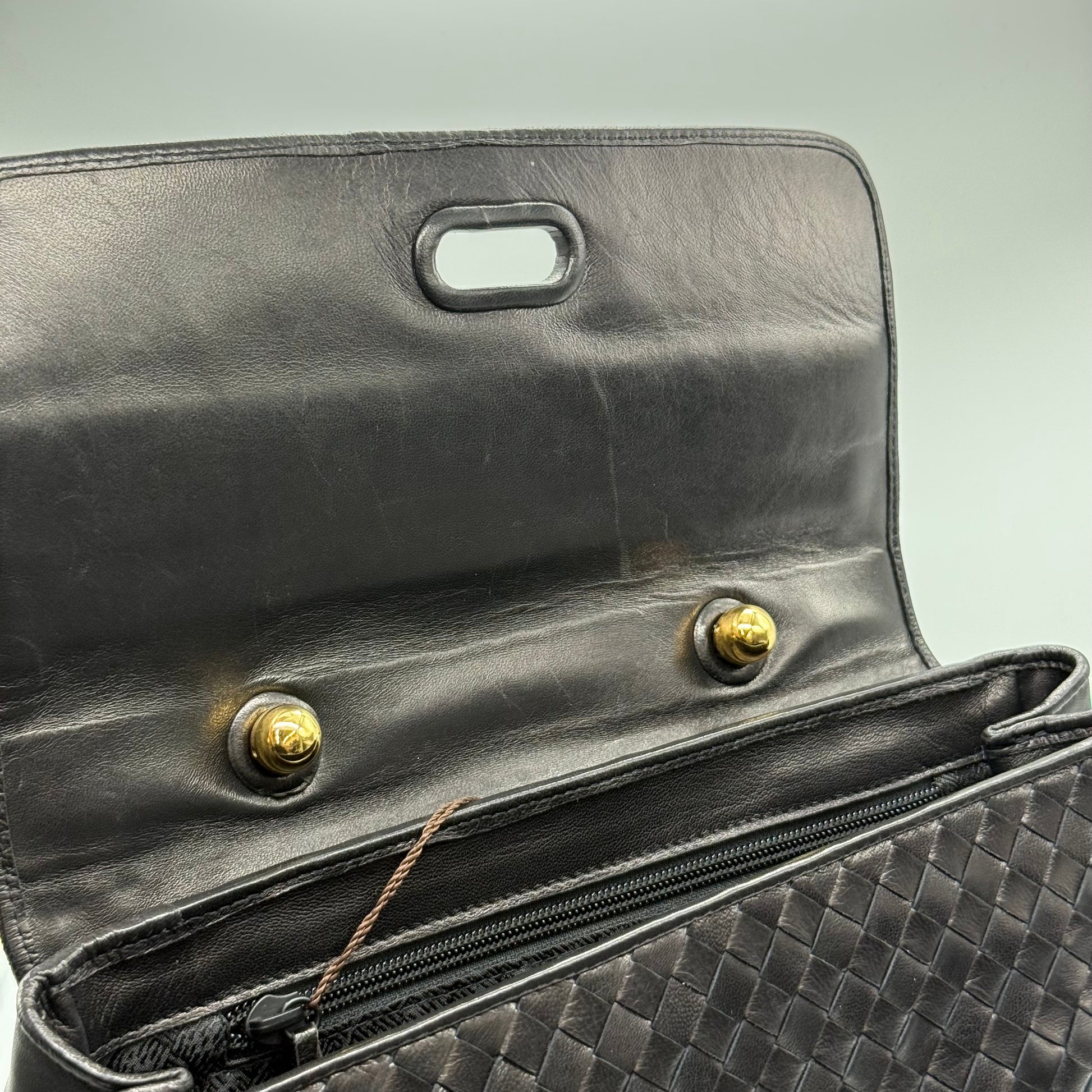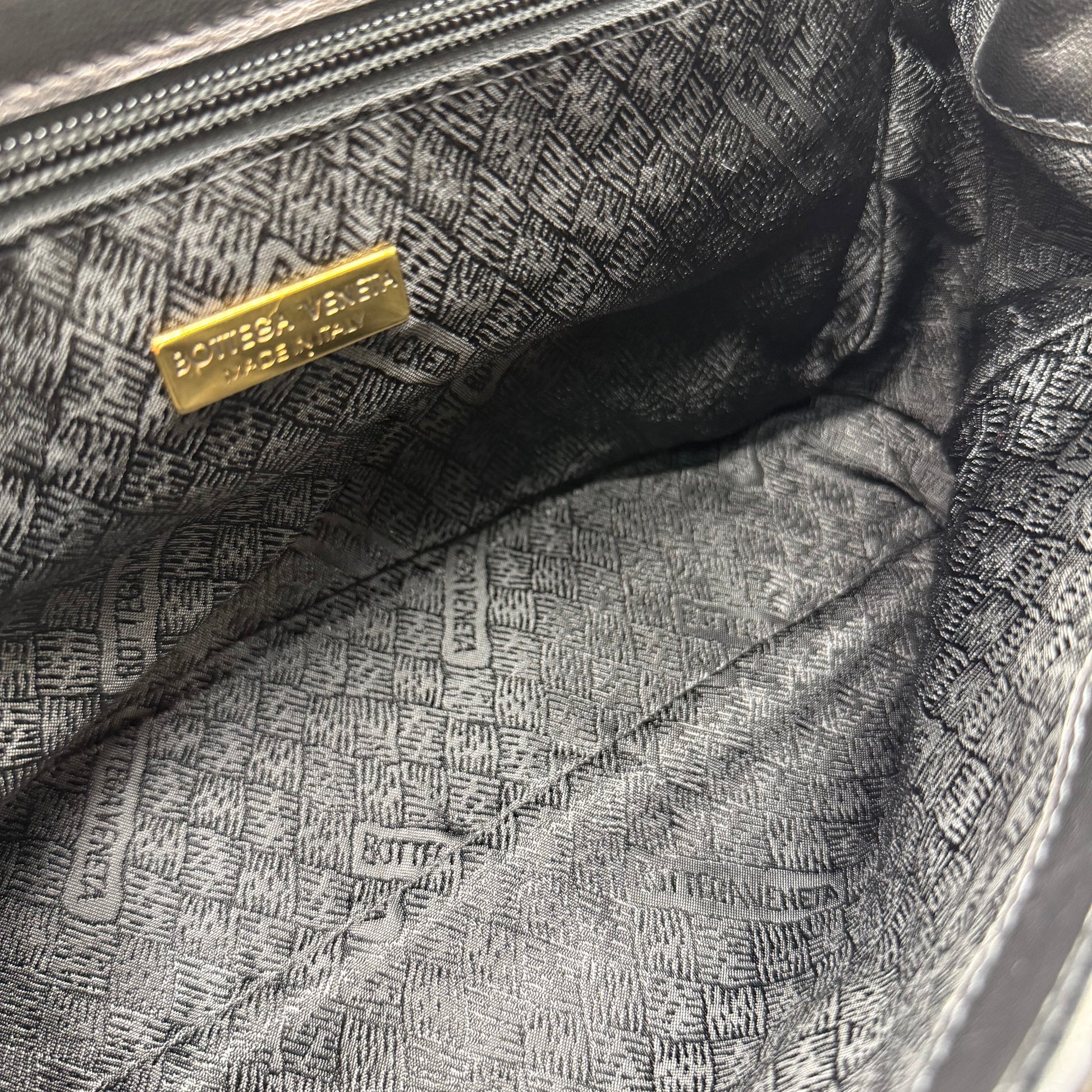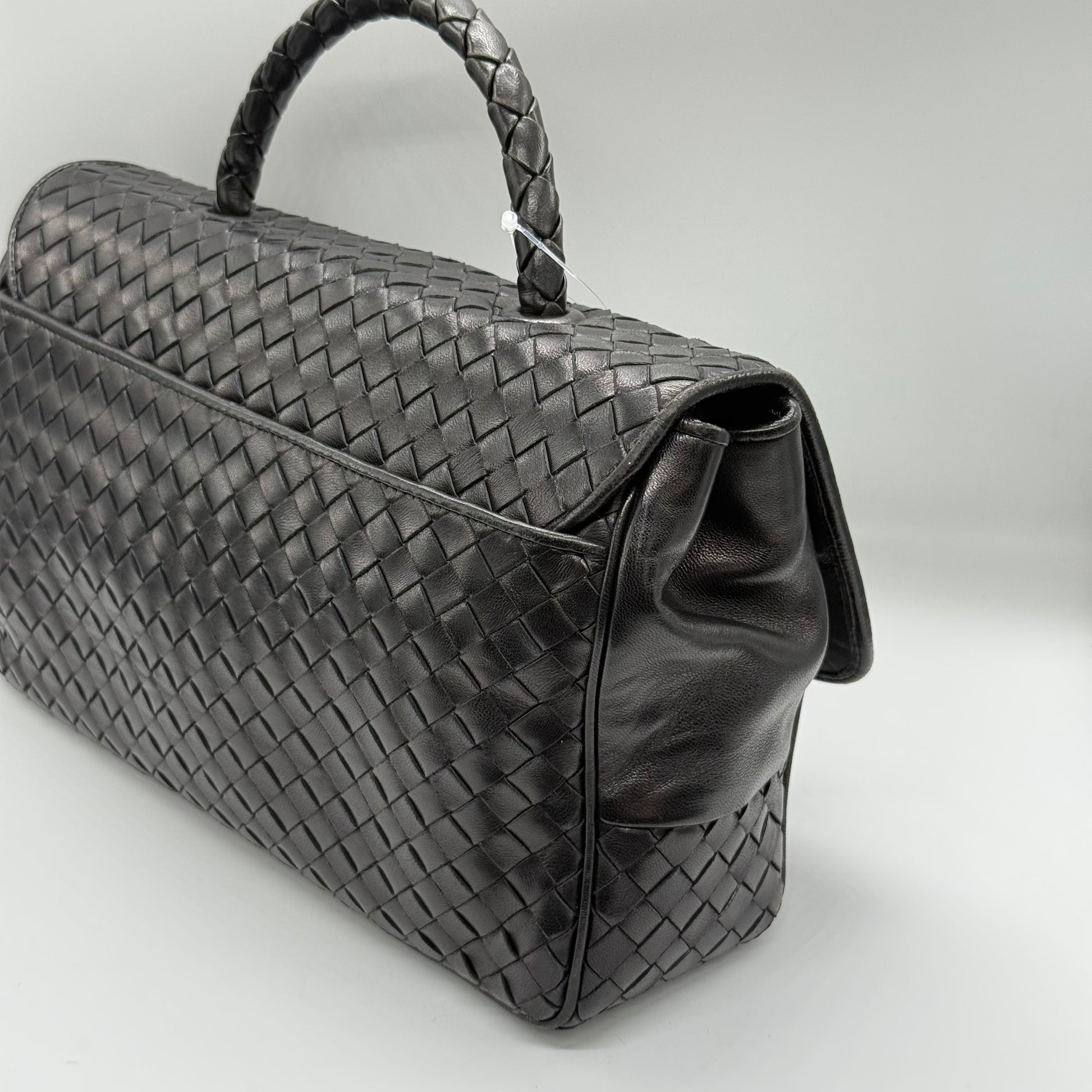 Sac Bottega Veneta Top Handle en cuir de veau intrecciation noir.