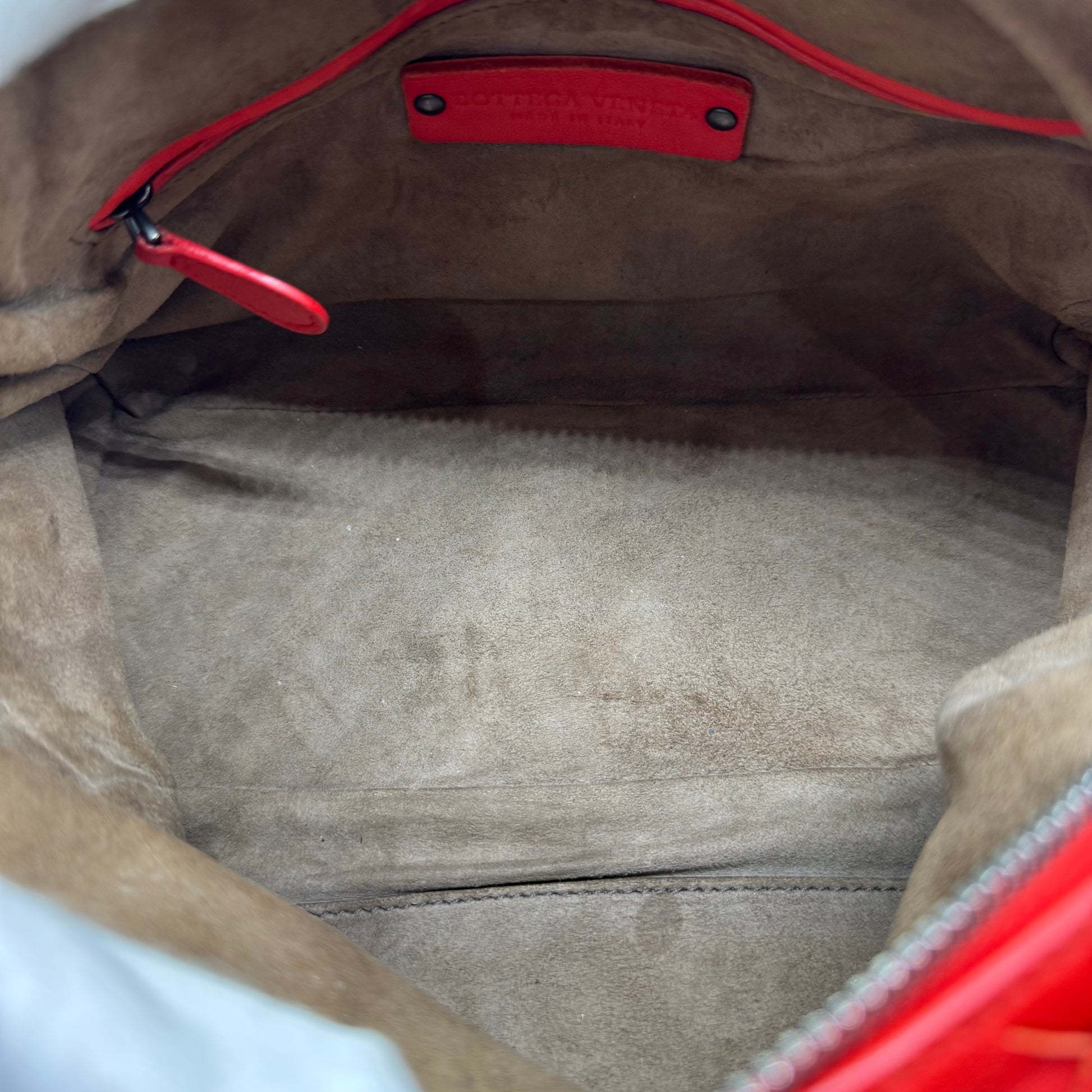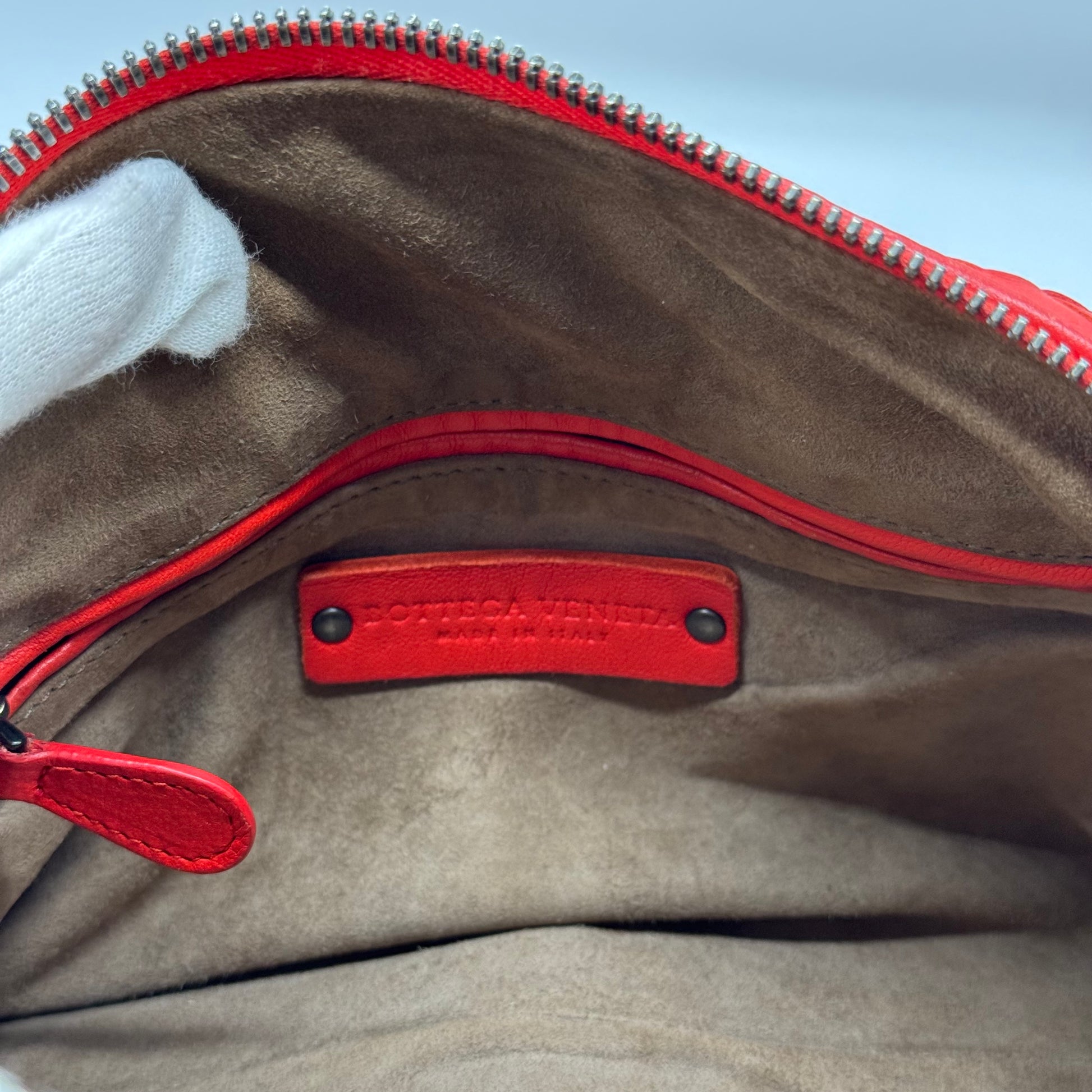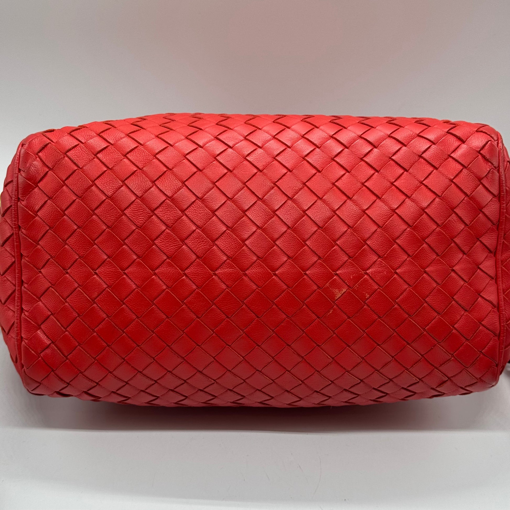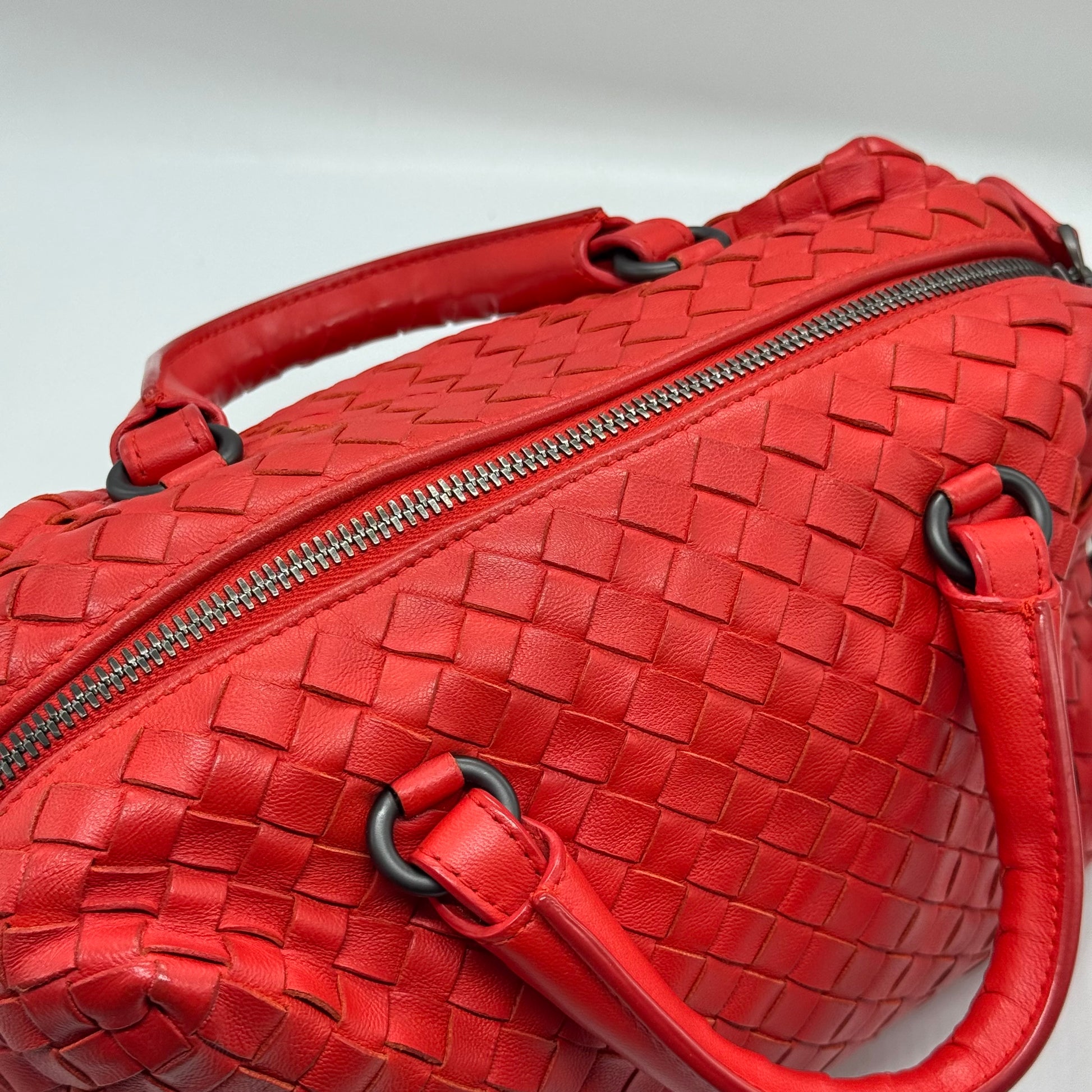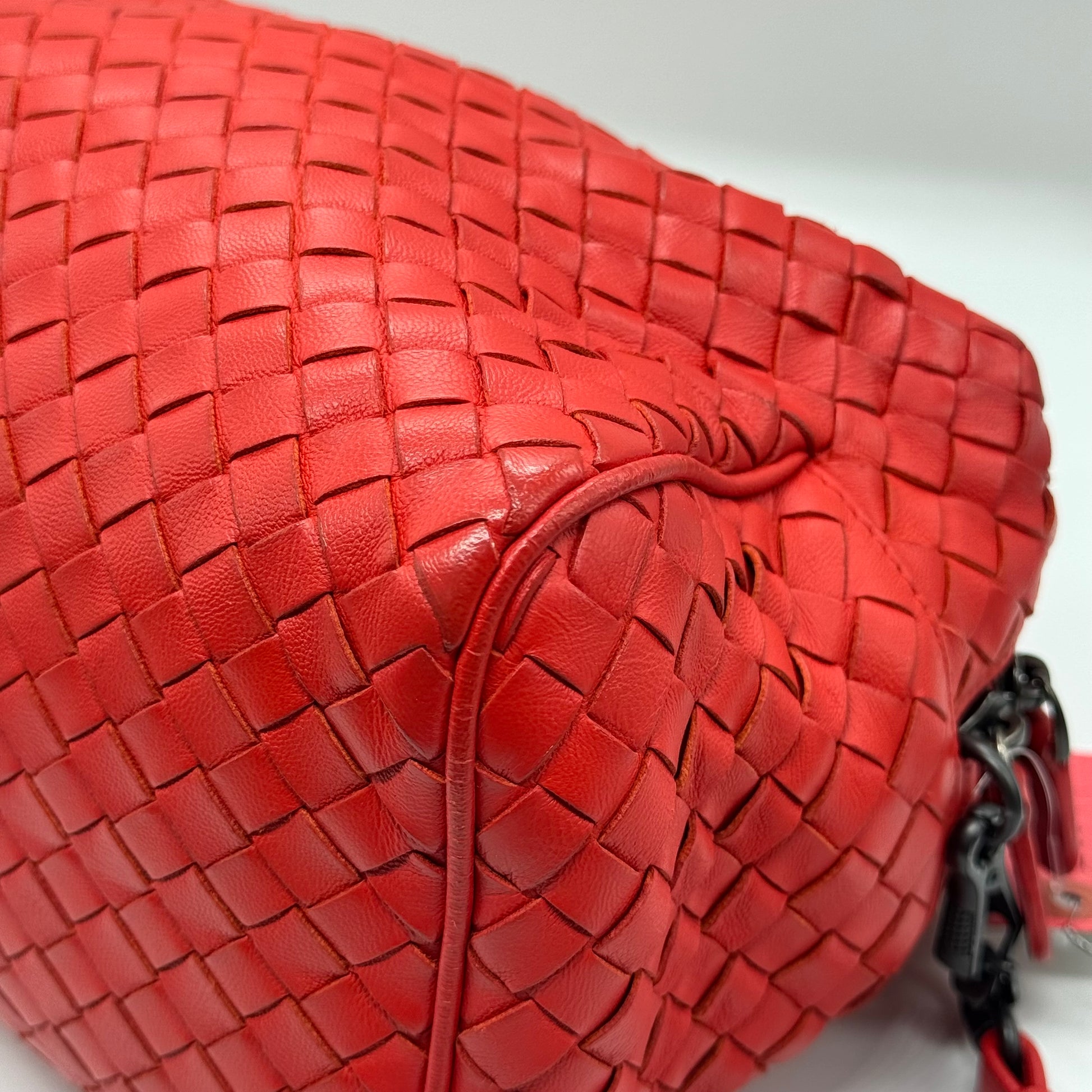 Sac boston Bottega Veneta en cuir Intrecciato rouge