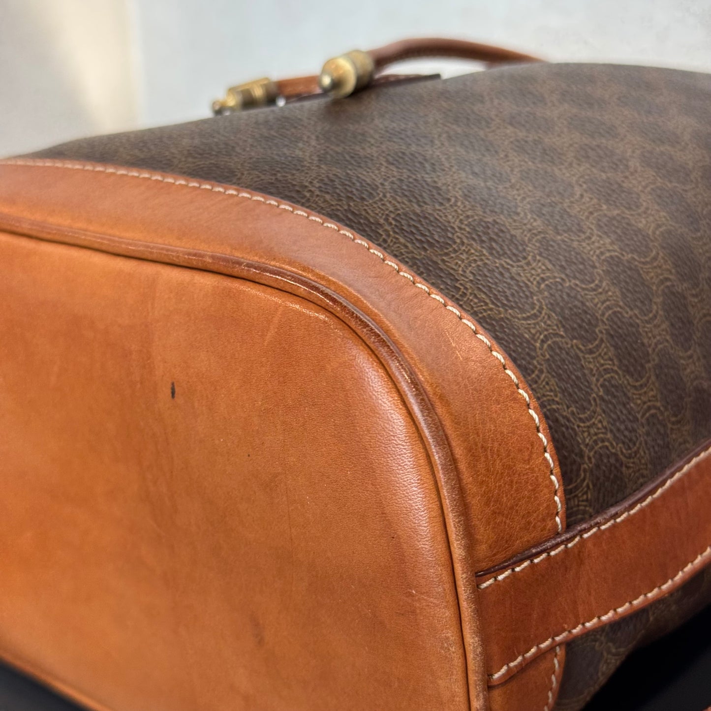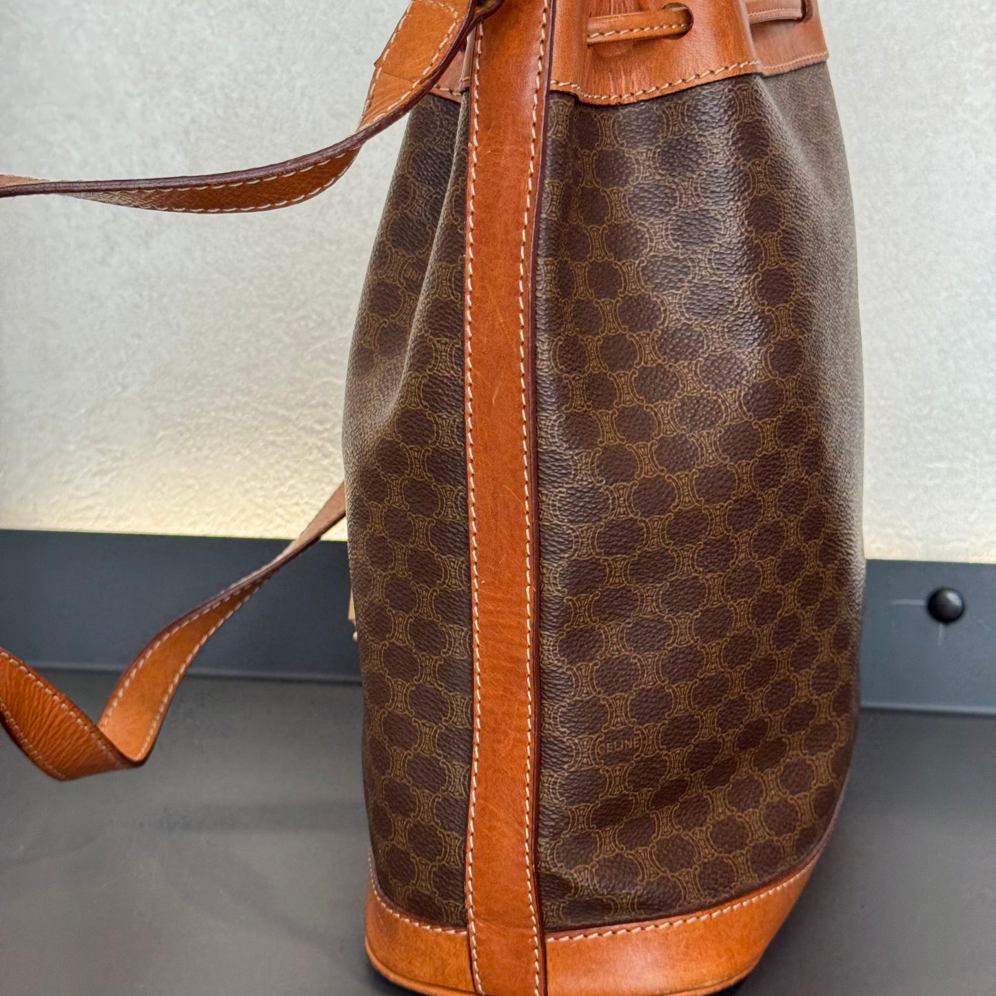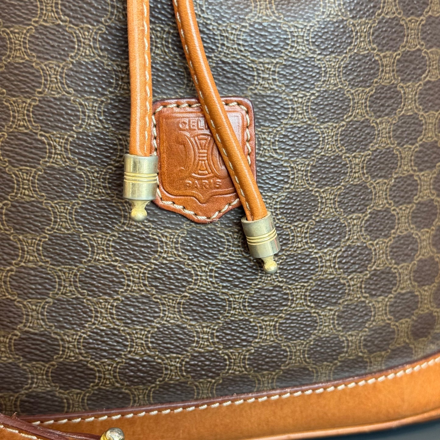 Sac Seau Céline en toile enduite monogramme triomphe et cuir de veau. Ce modèle se porte en bandoulière.