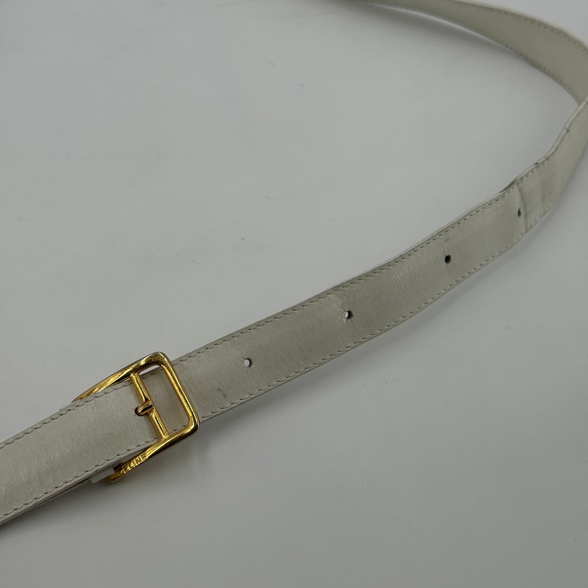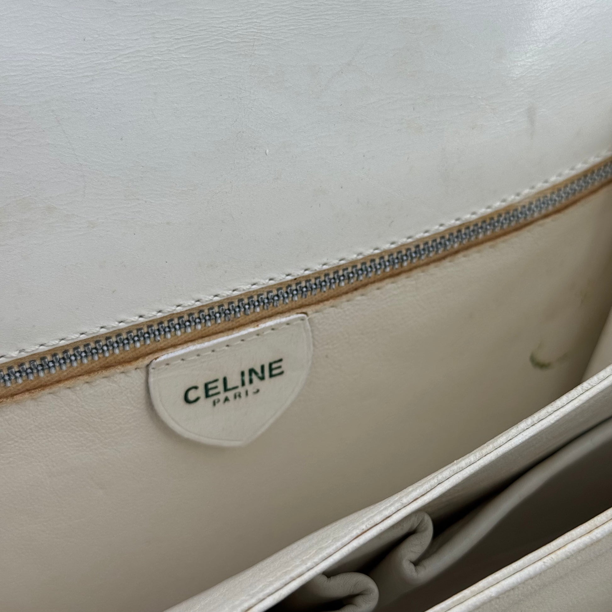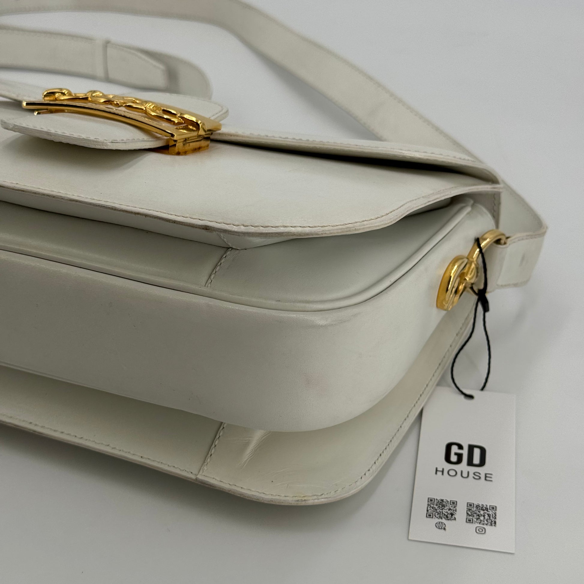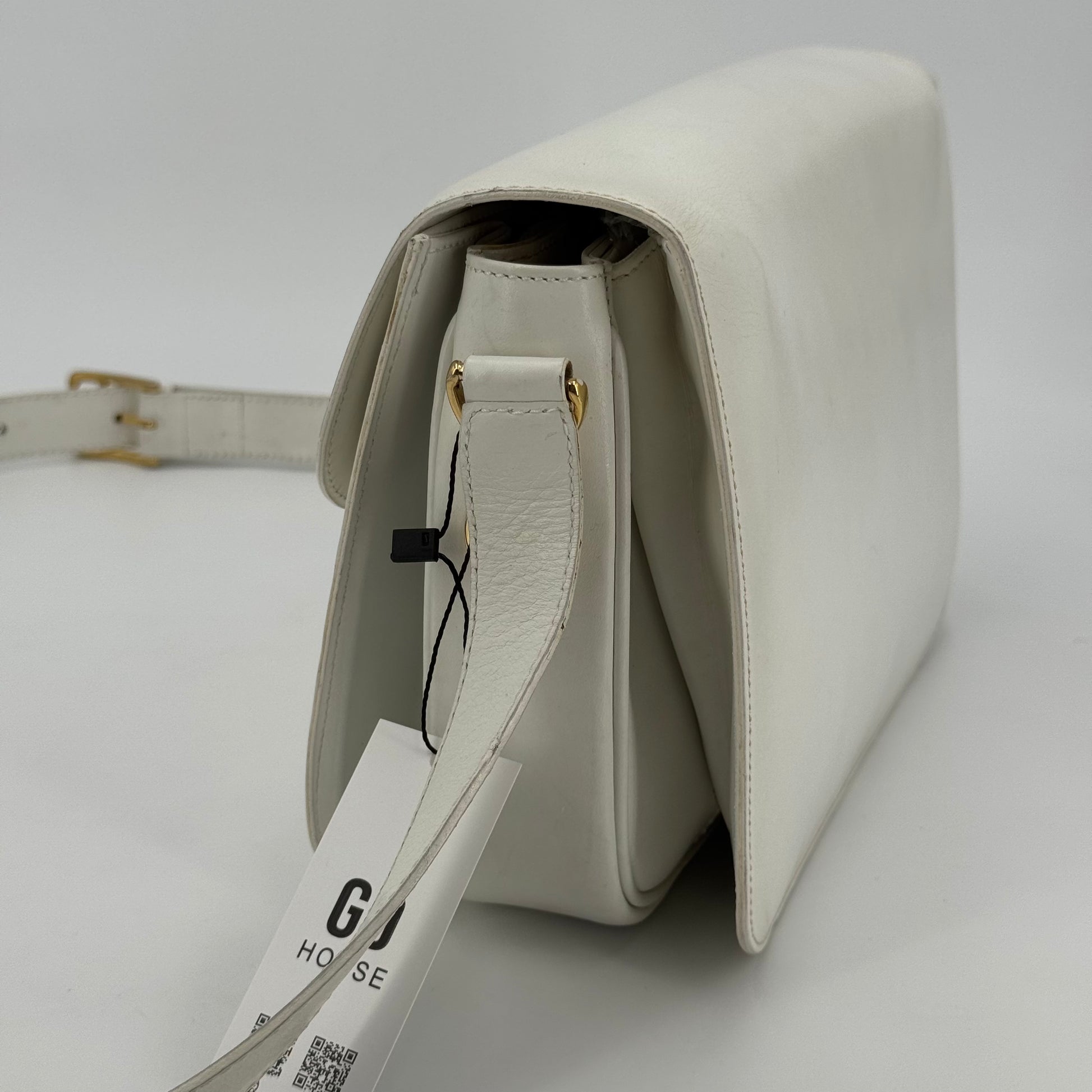 Besace Céline vintage en cuir de veau box blanc et bijouterie dorée