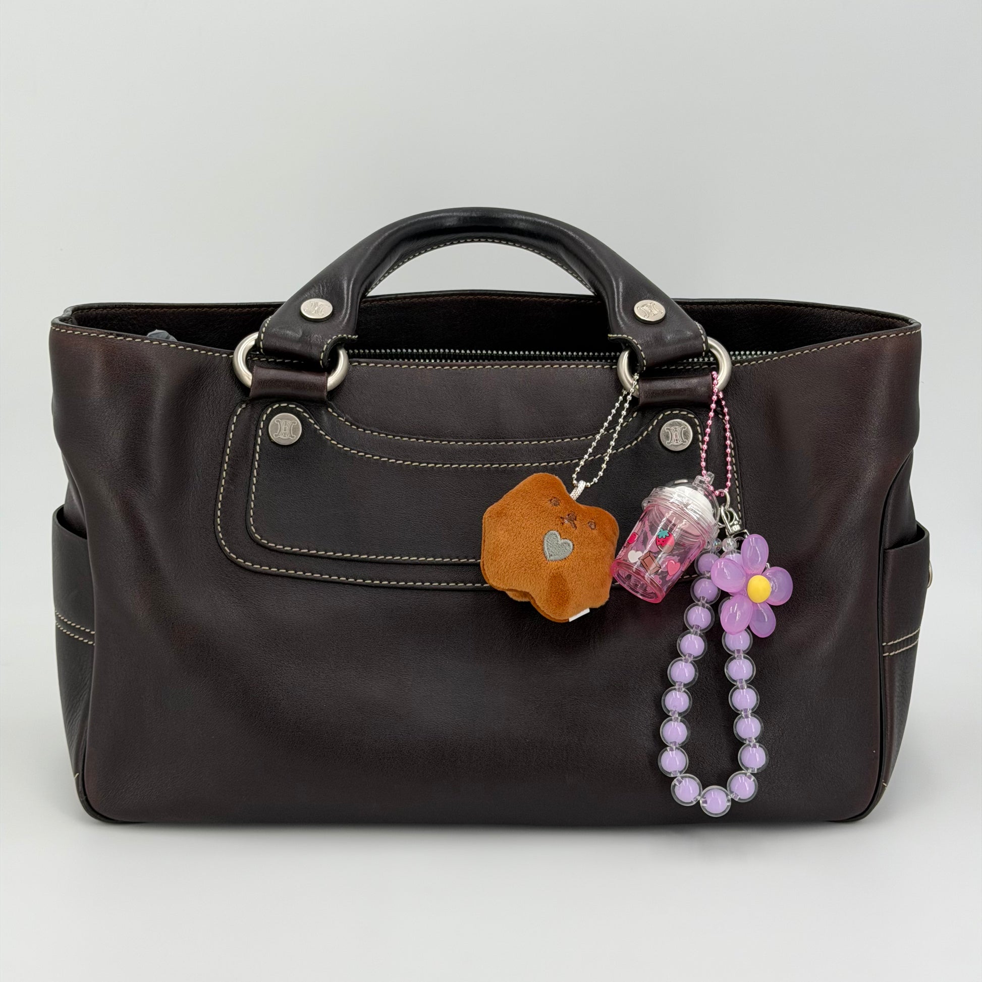 Sac Boogie Céline en cuir de veau brun et bijouterie argent