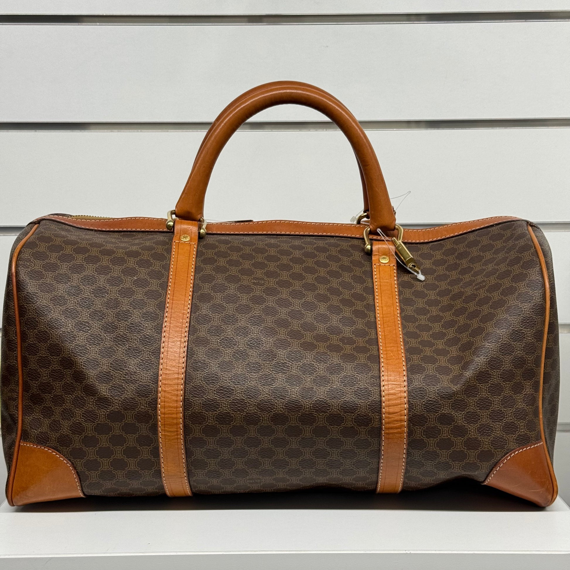 Sac Boston 40 Céline en toile enduite monogramme et partie en cuir de veau caramel