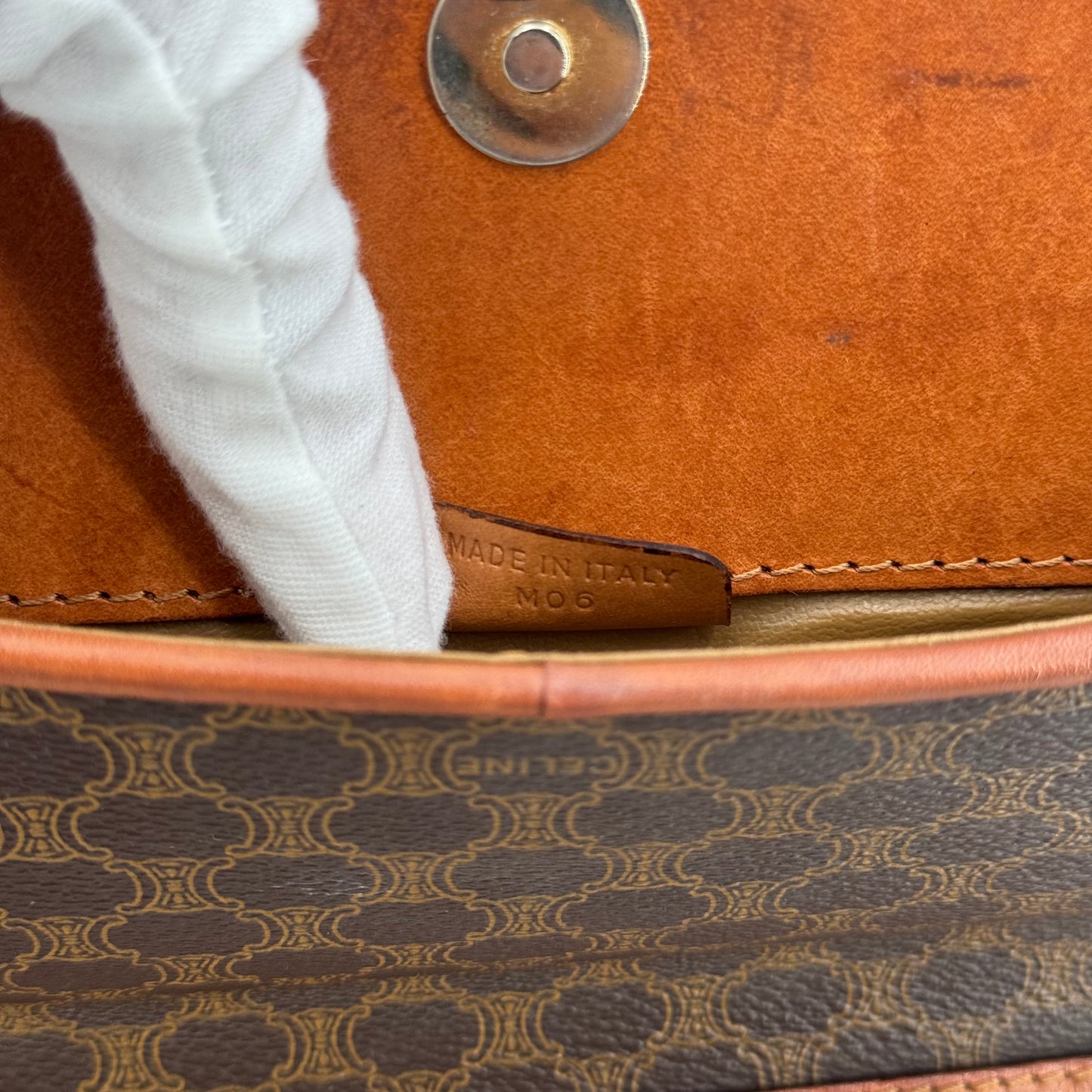 pochette en toile enduite monogram triomphe et cuir de veau camel, porté main.