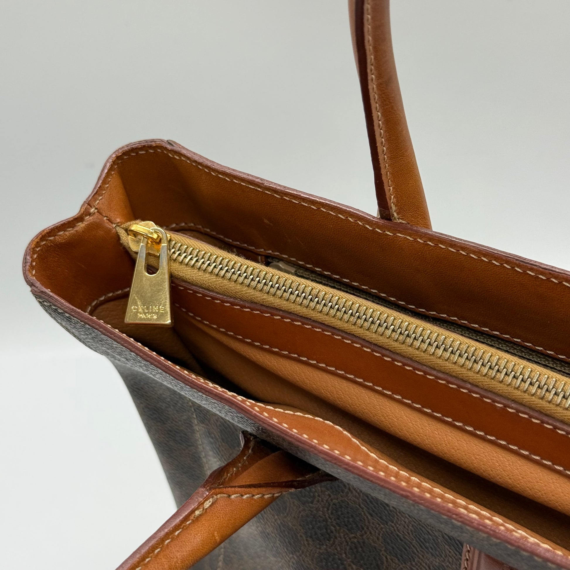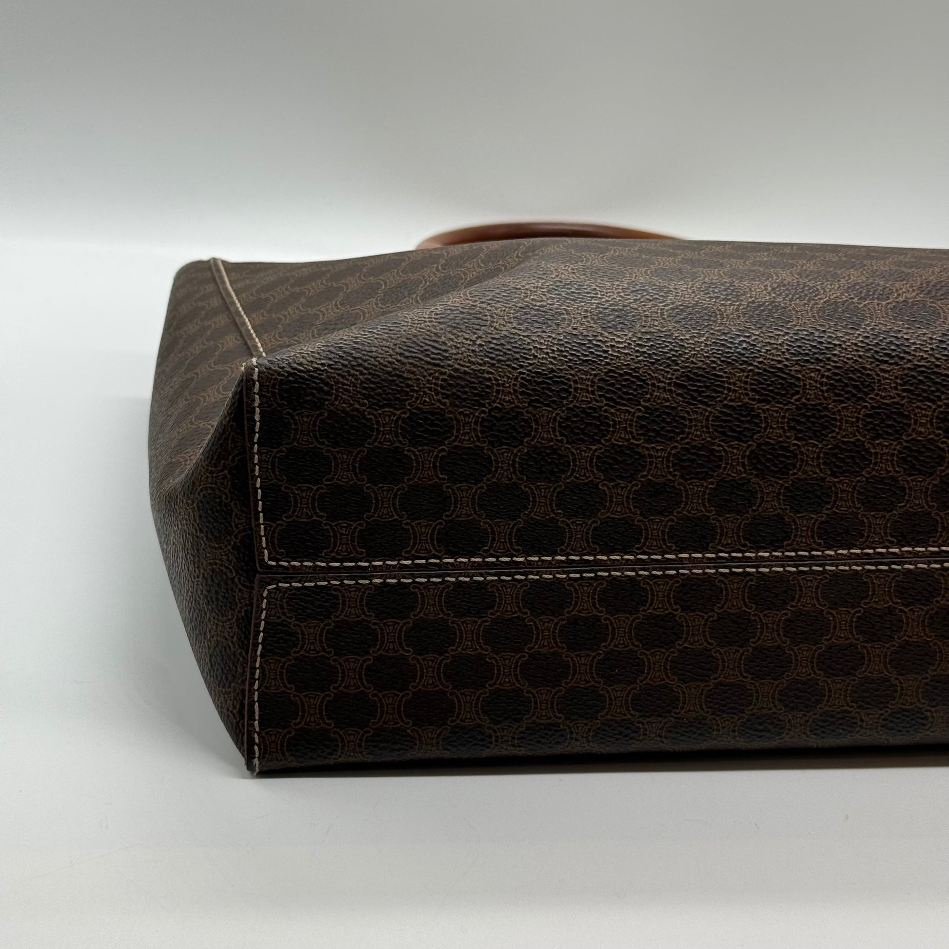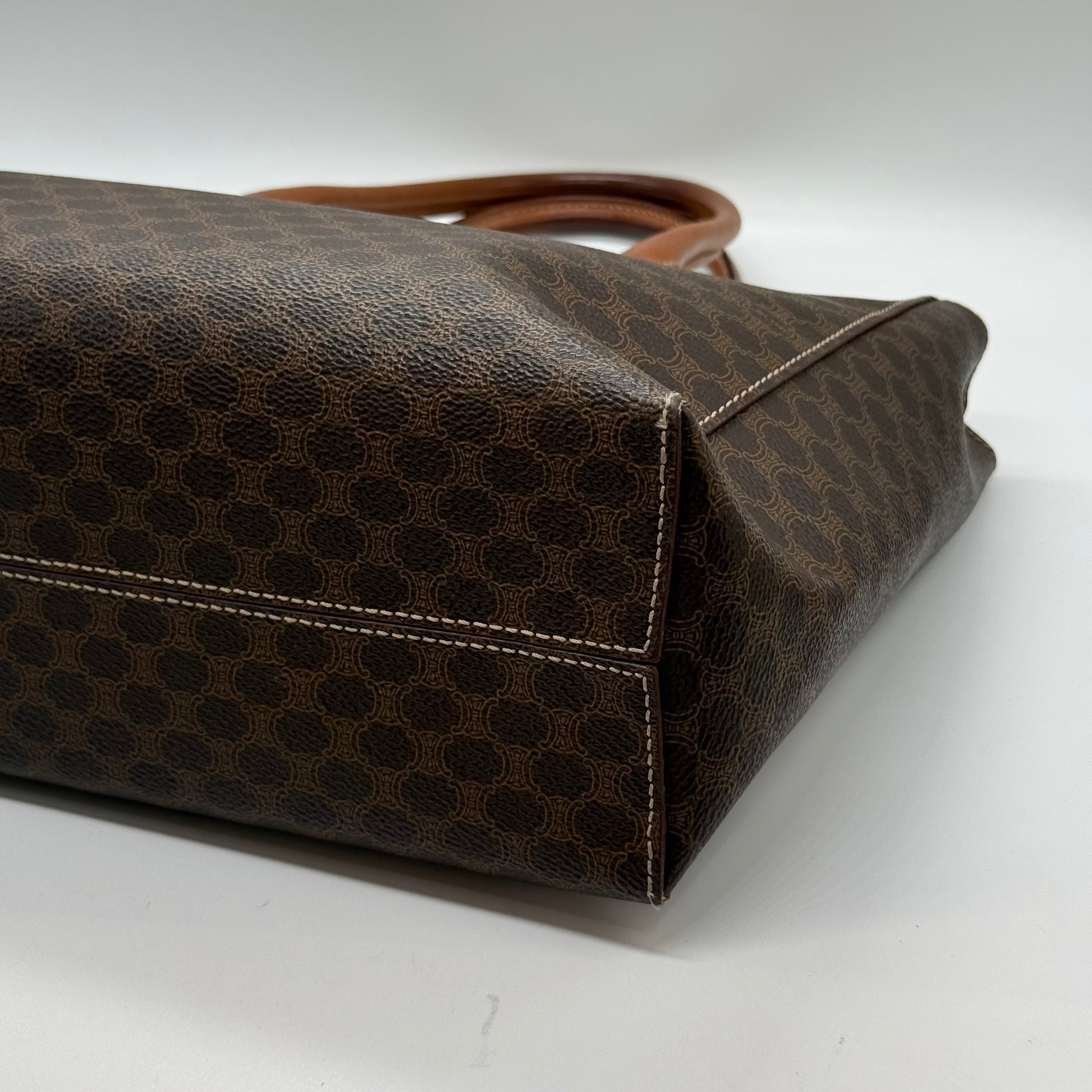 Sac shopping en toile monogram triomphe et cuir de veau caramel , porté main
