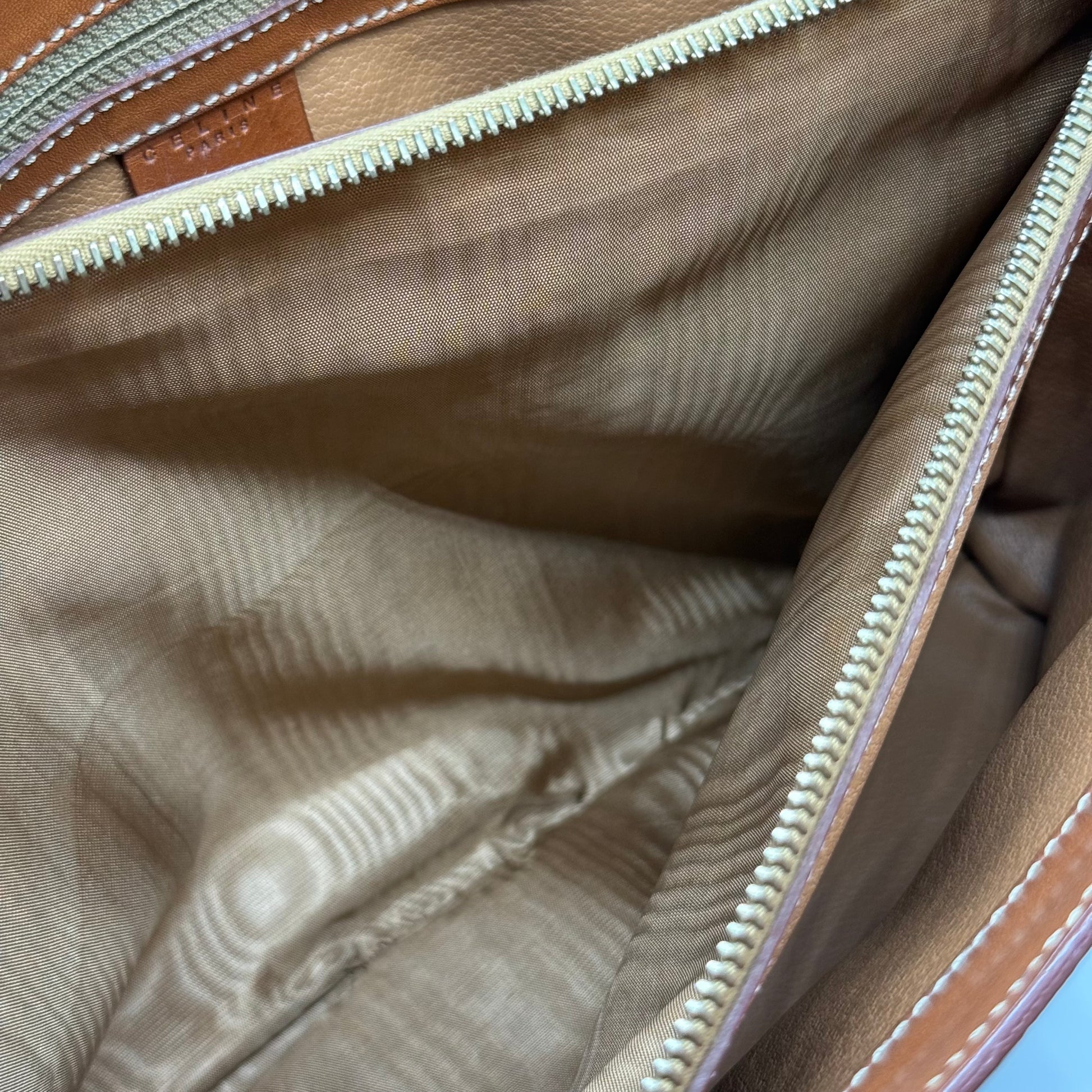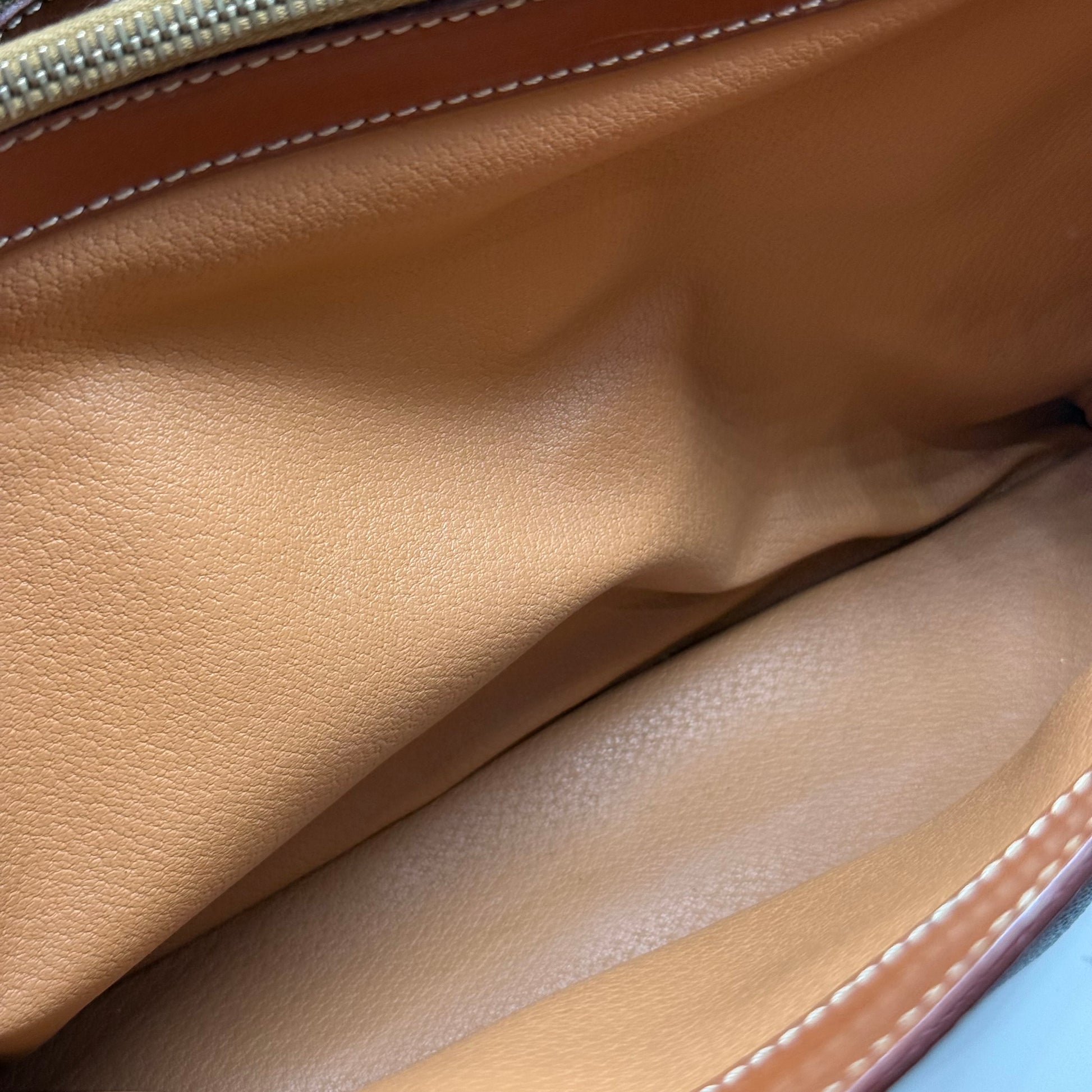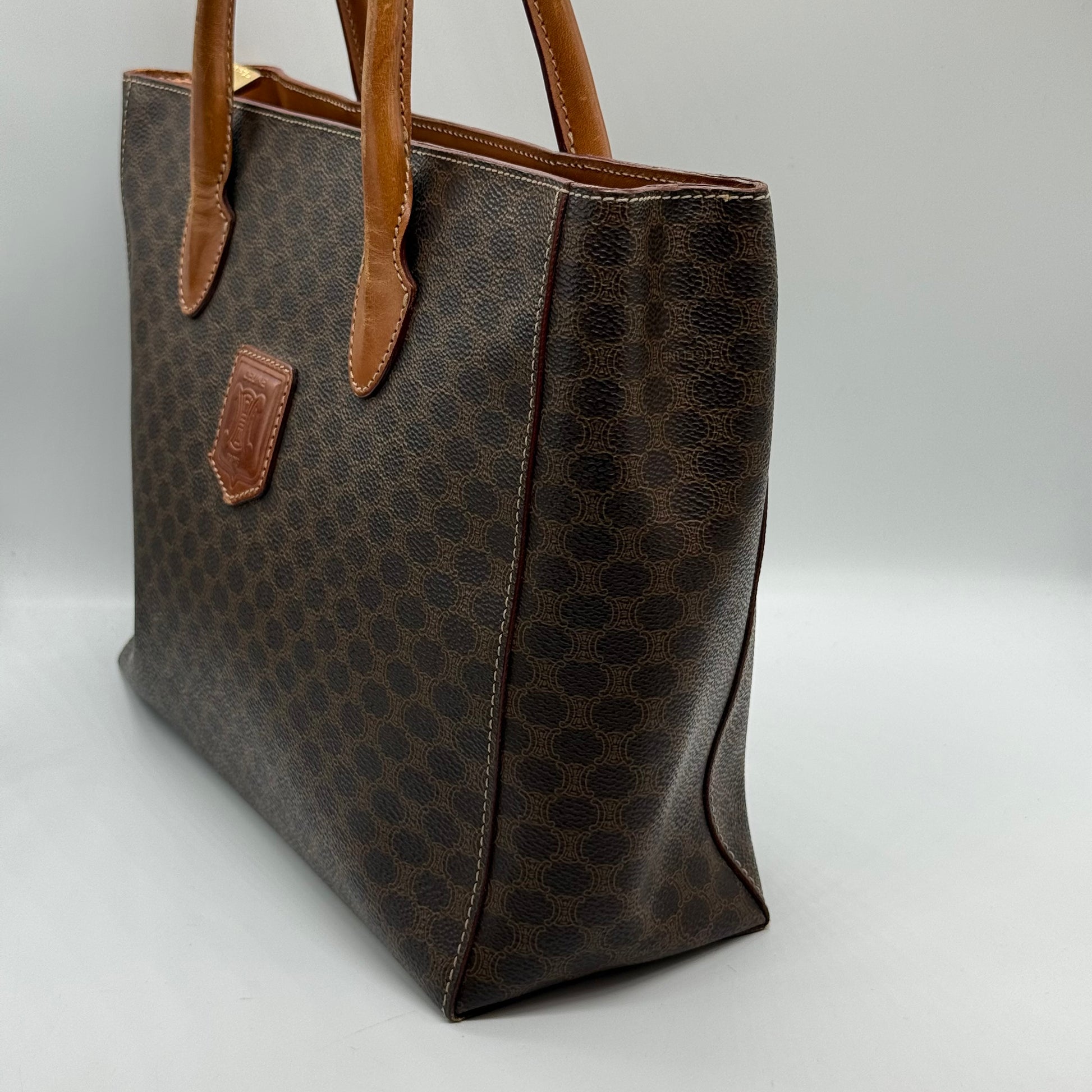 Sac shopping en toile monogram triomphe et cuir de veau caramel , porté main
