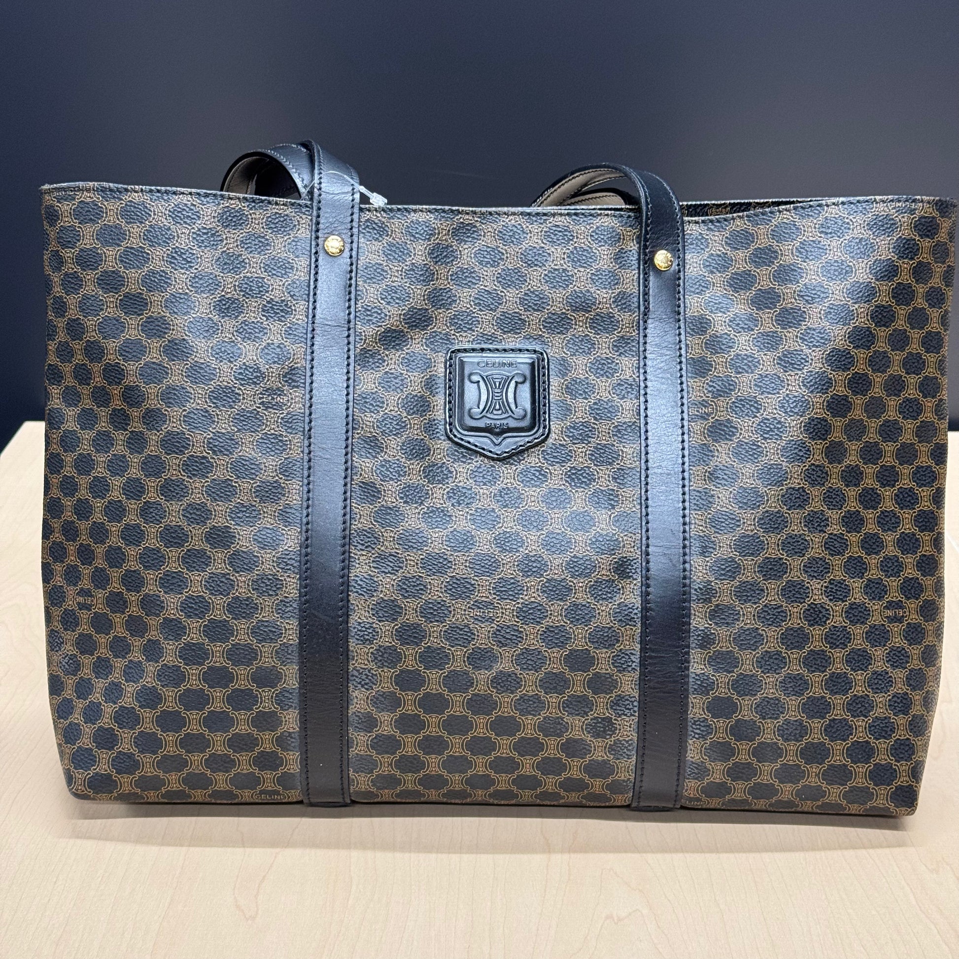 Sac Céline Shopping en toile enduite et cuir de veau.