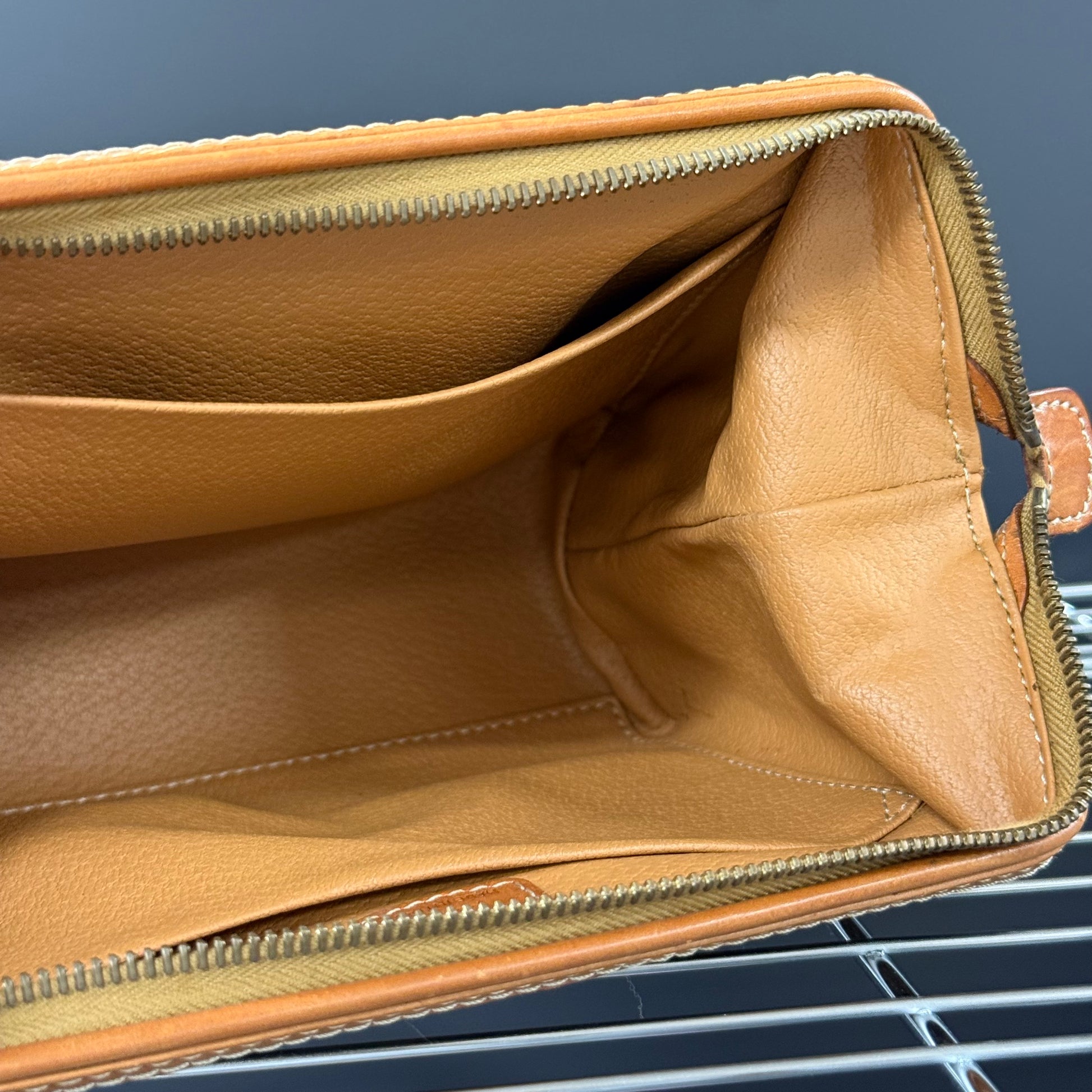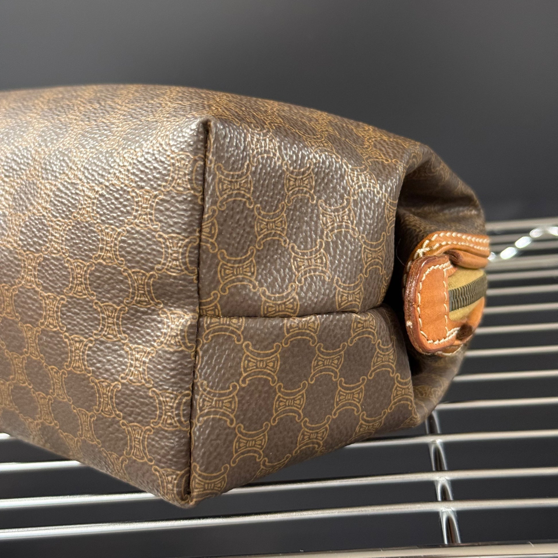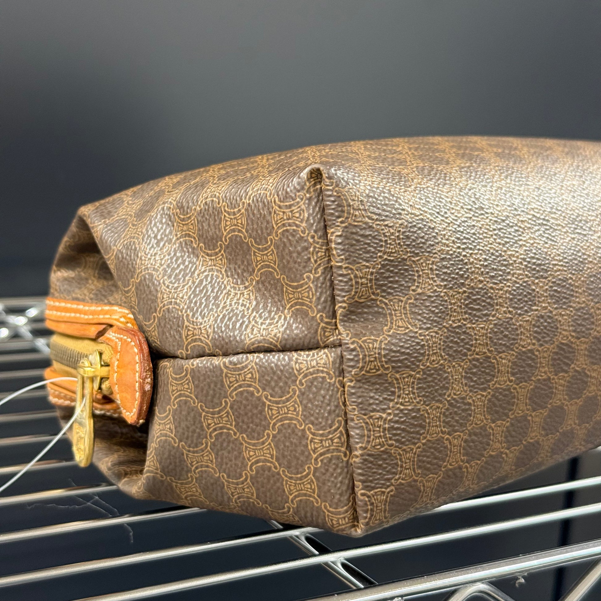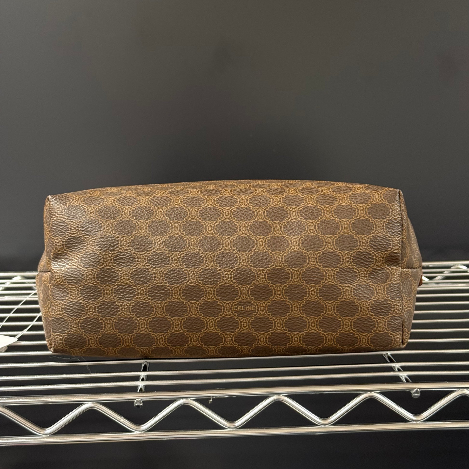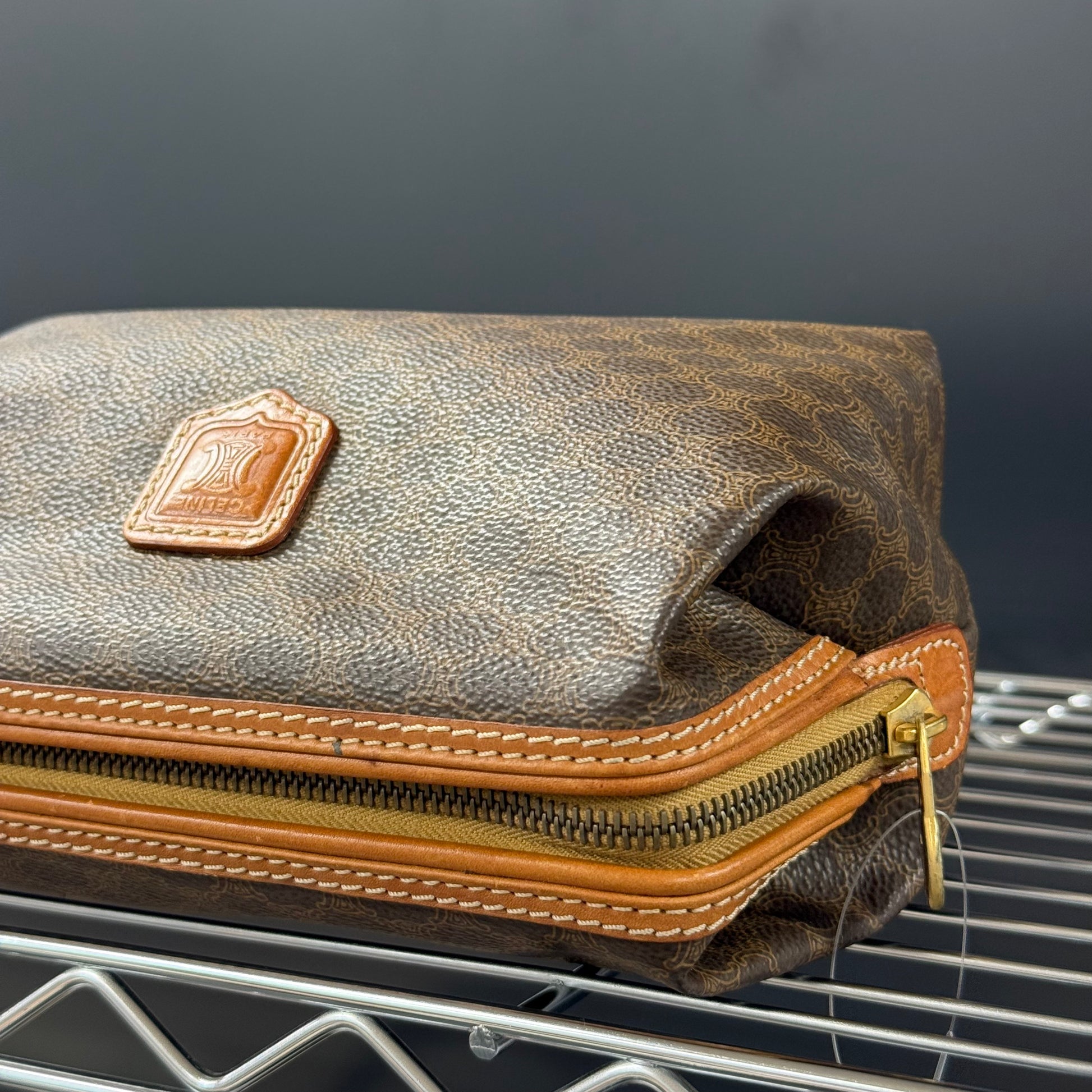 Trousse cosmétique Céline en toile enduite et cuir.