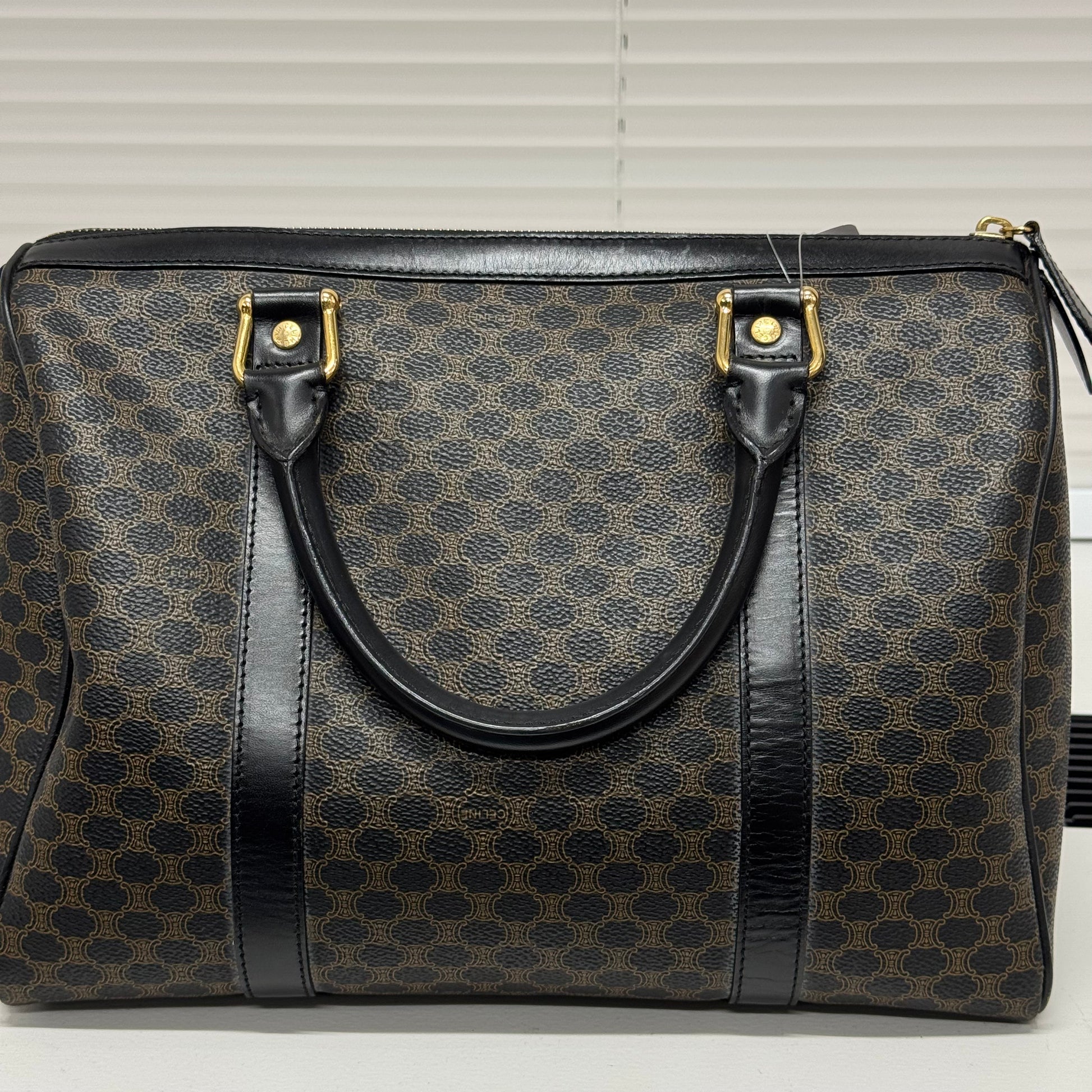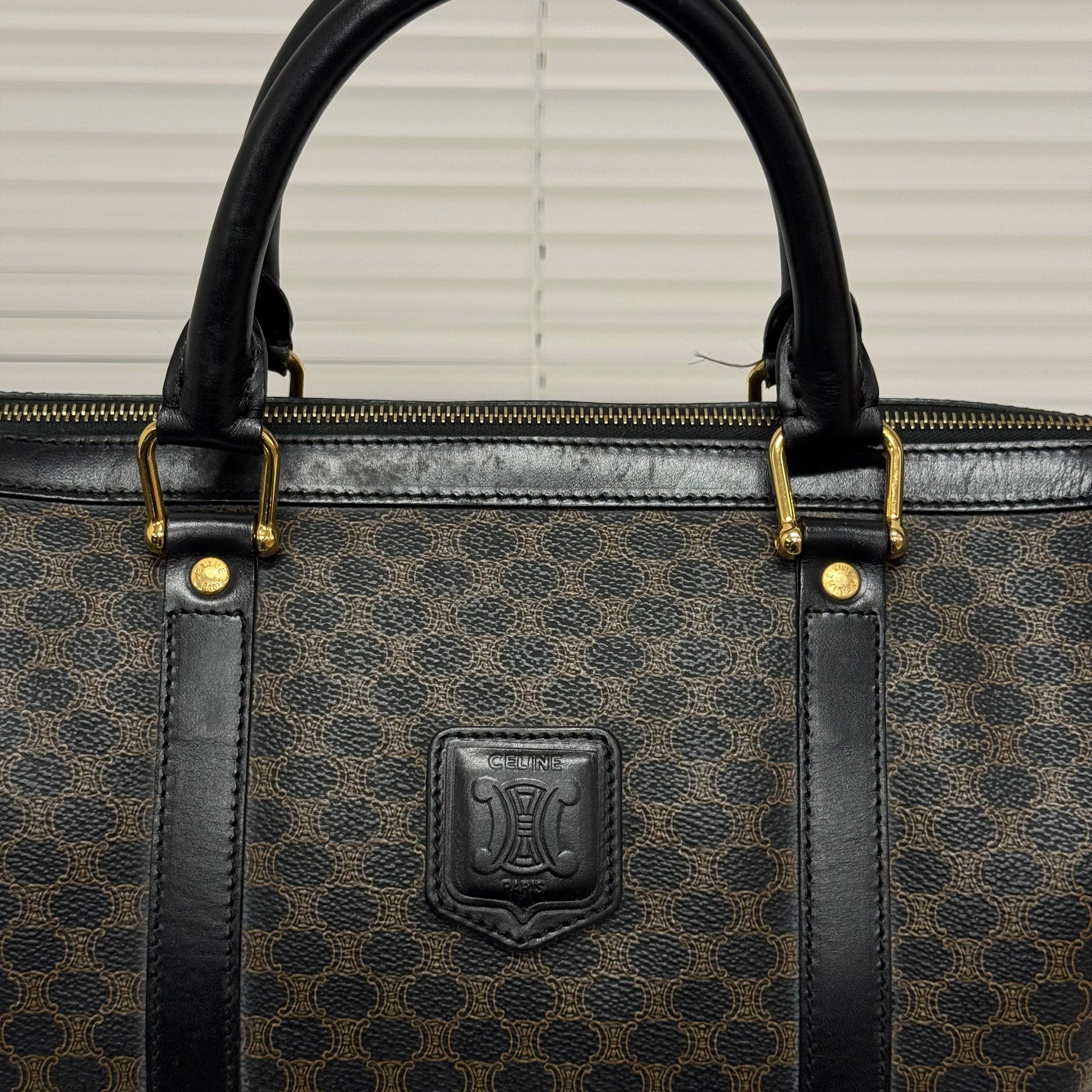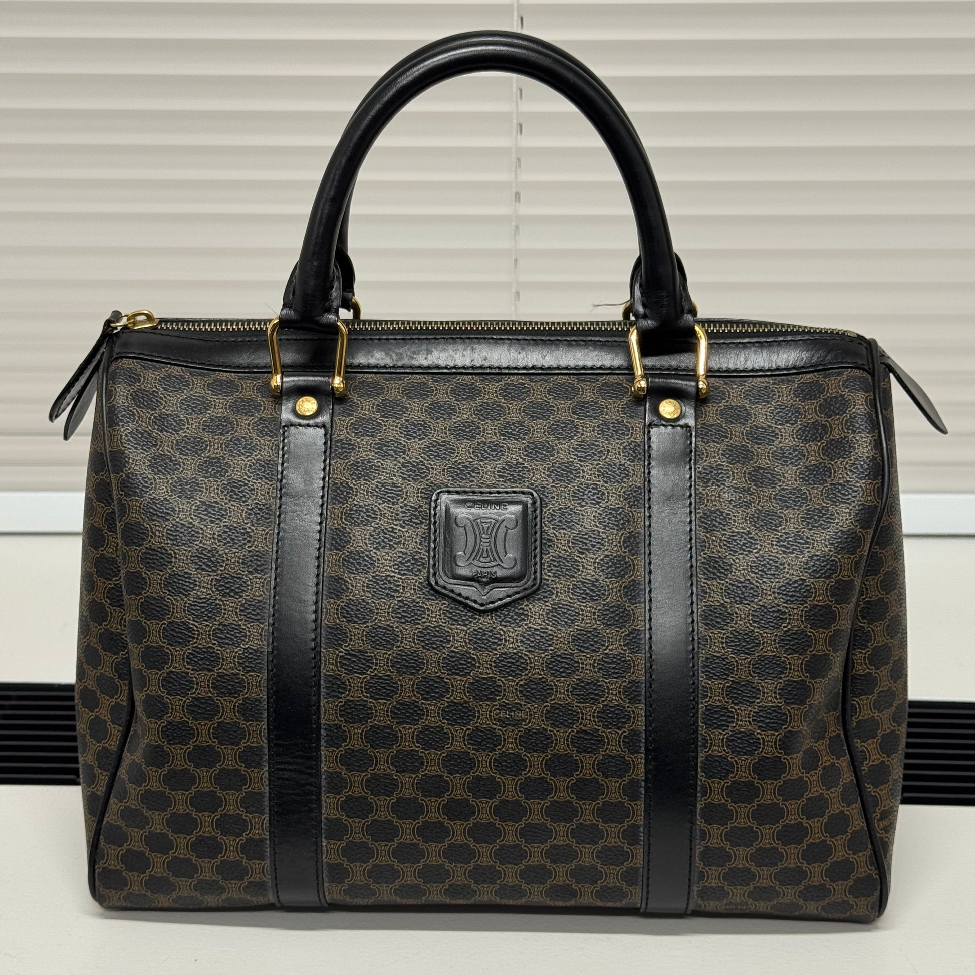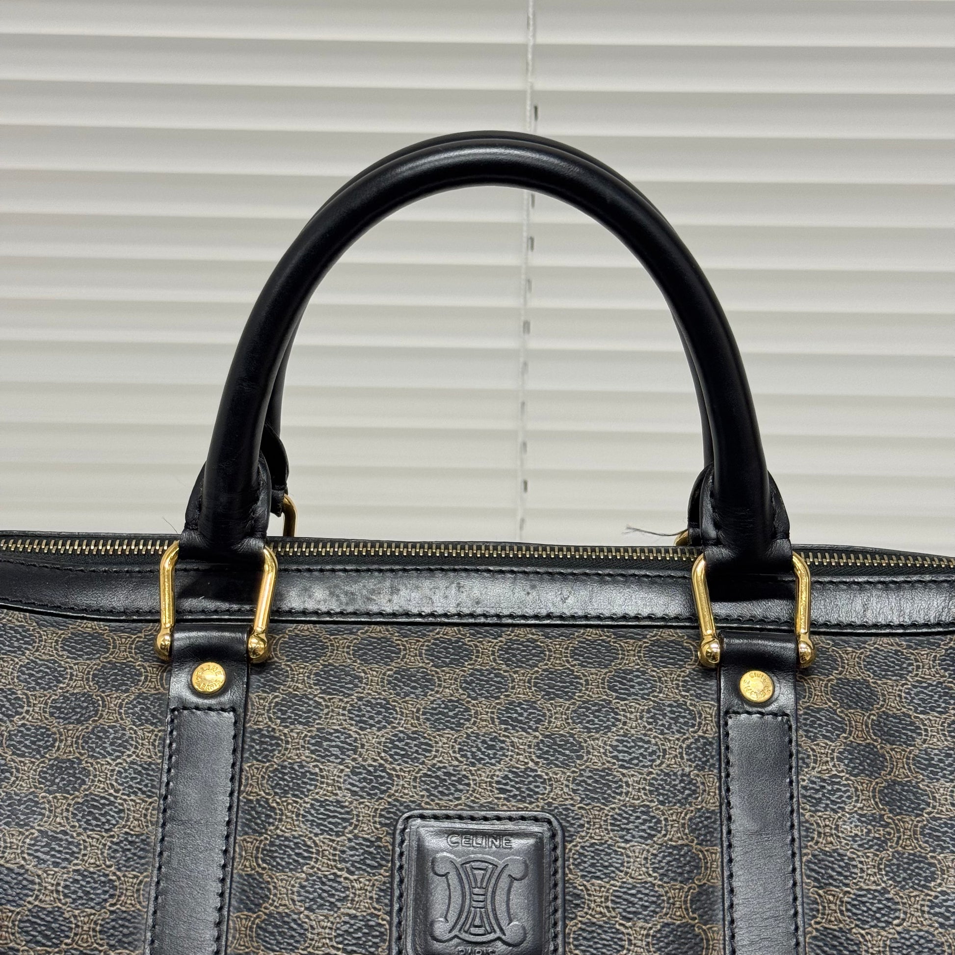 Sac Céline Boston en toile enduite et cuir de veau noir.