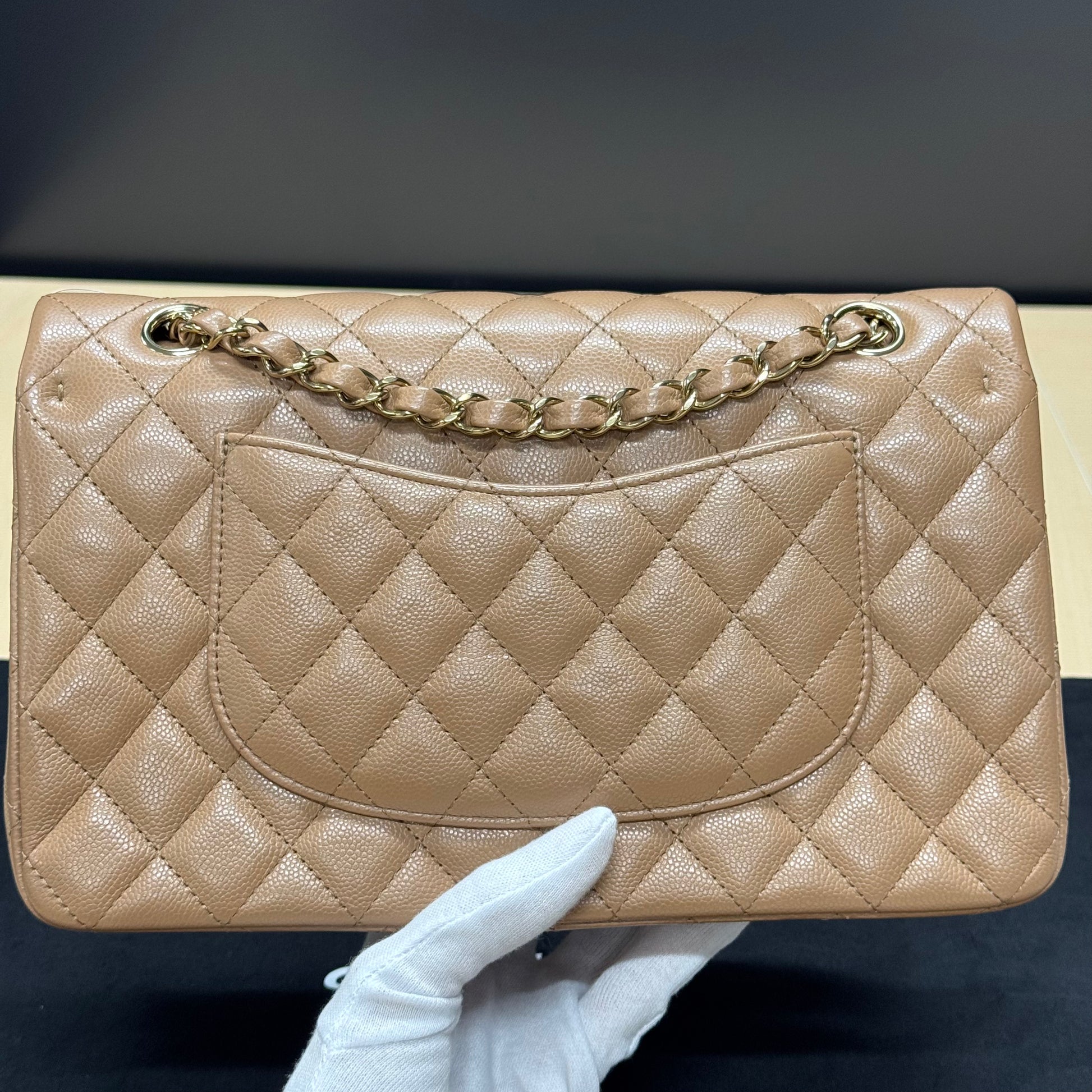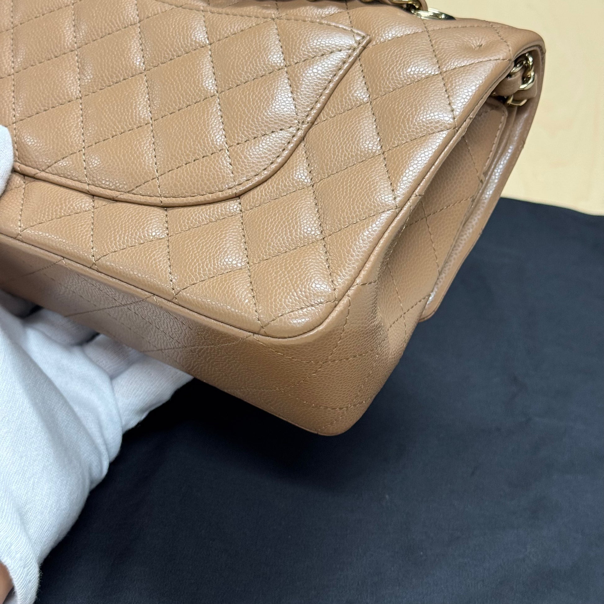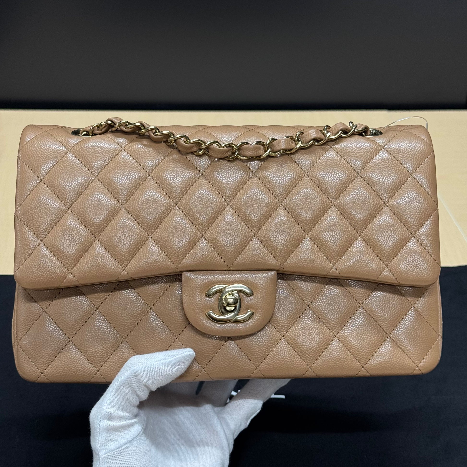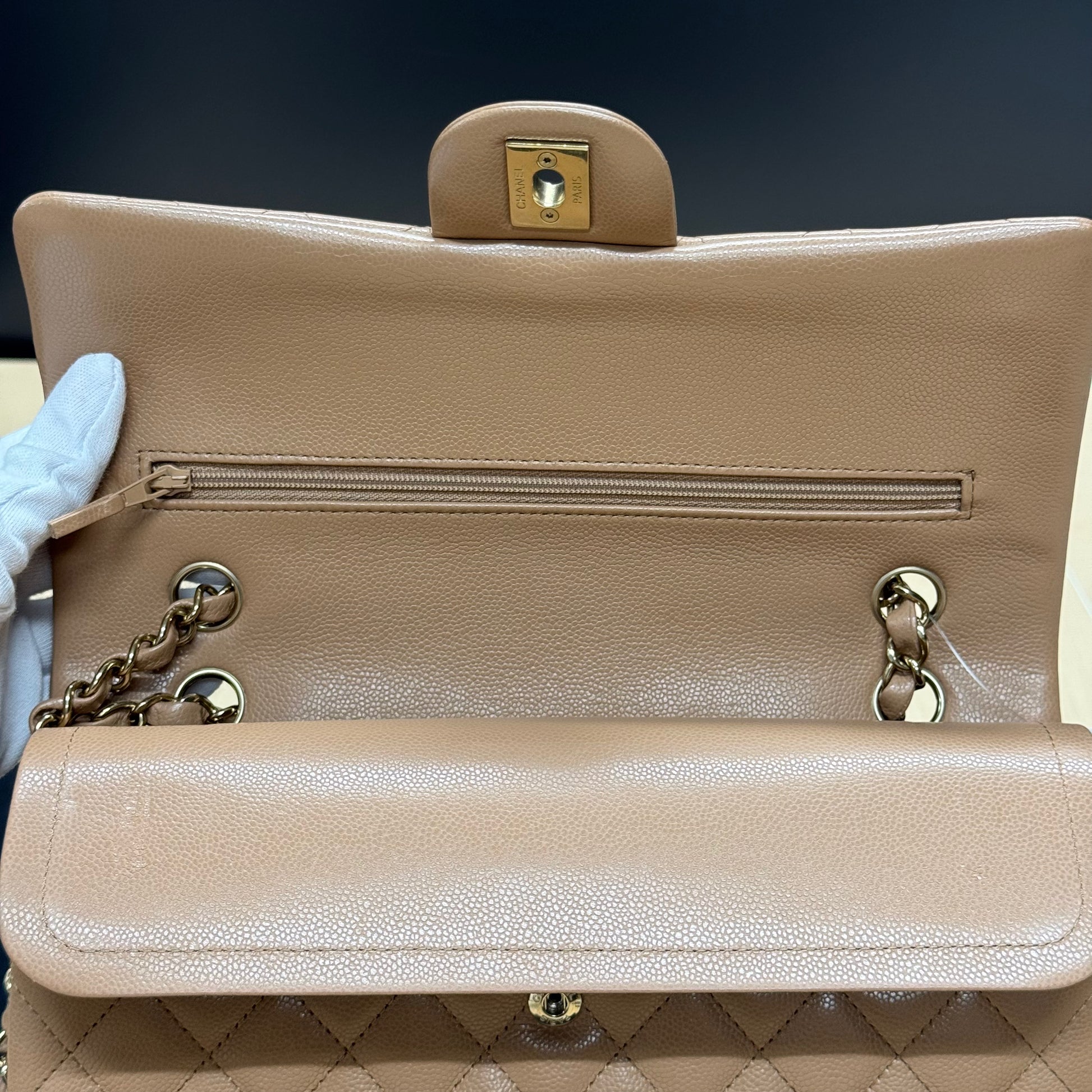 Sac Chanel 1112 en cuir de veau grainé taupe.