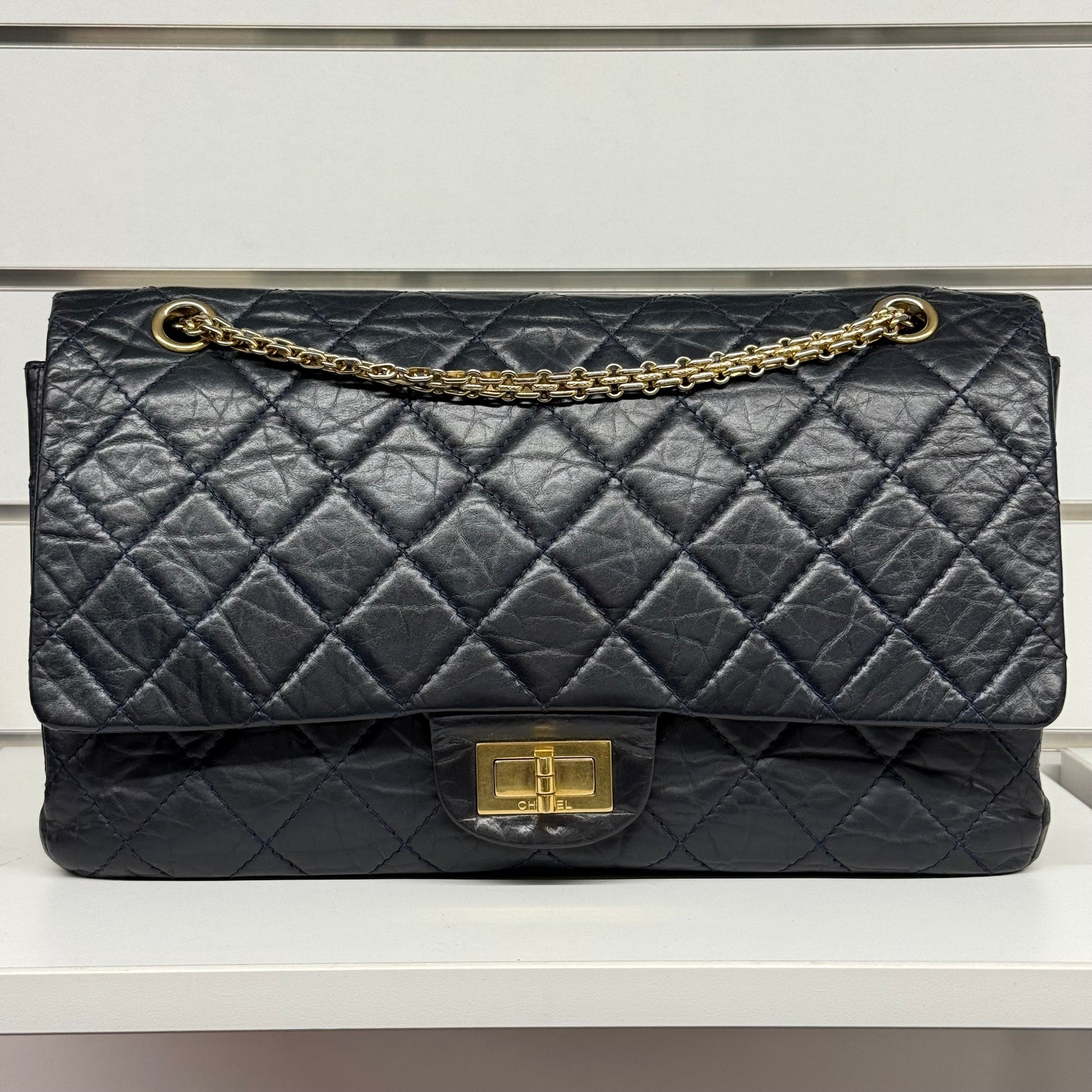 Sac 2.55 en veau vieilli navy , chaîne mademoiselle dorée vieilli, taille 28, prix retail 11 100€ .