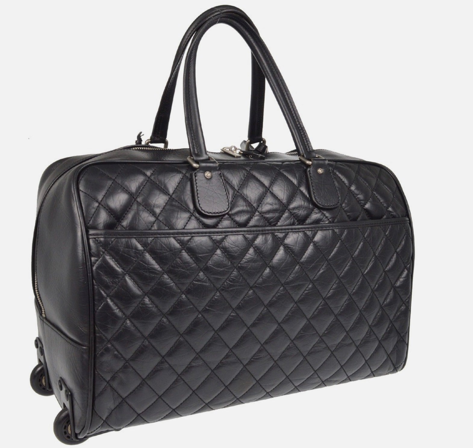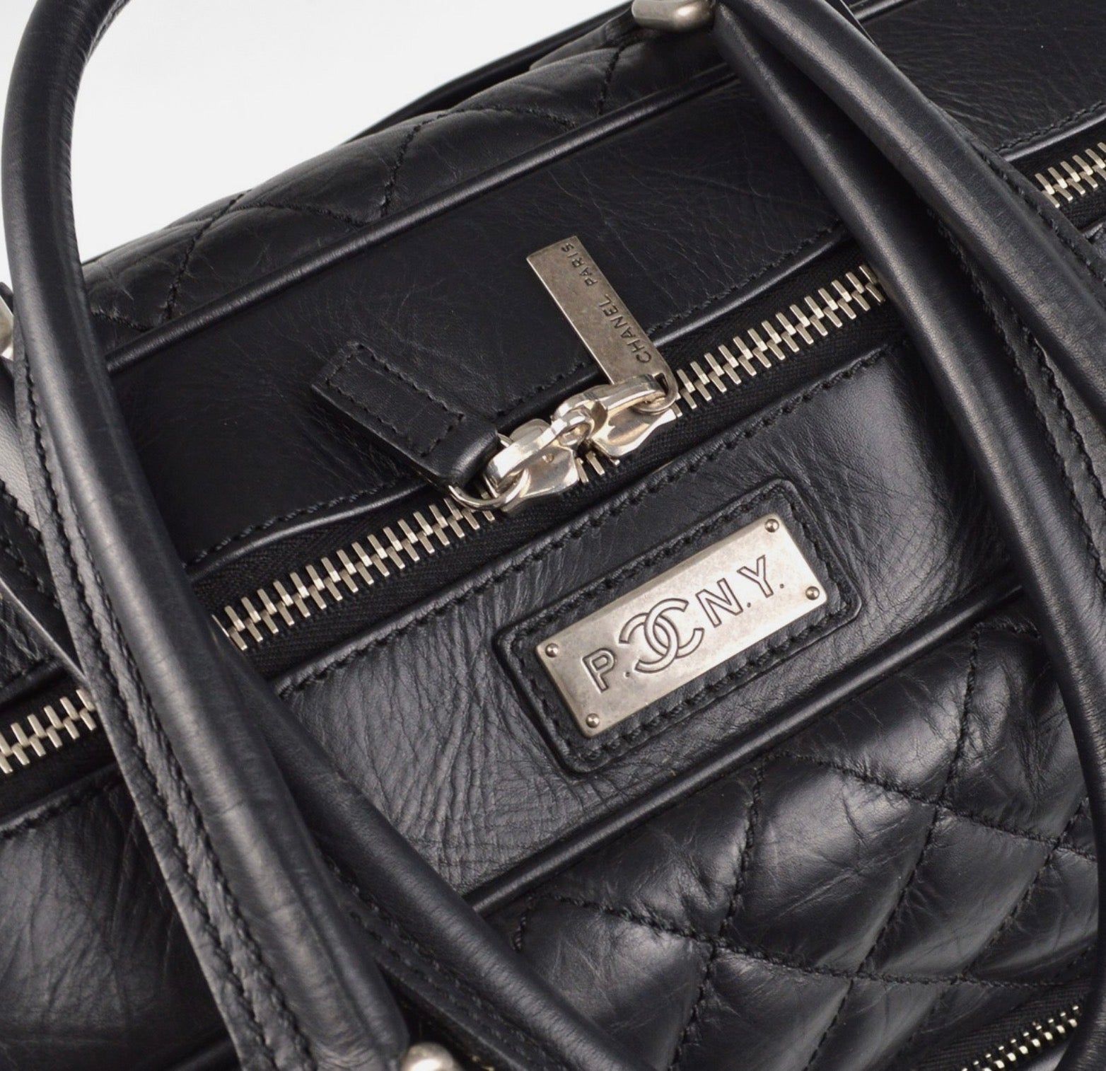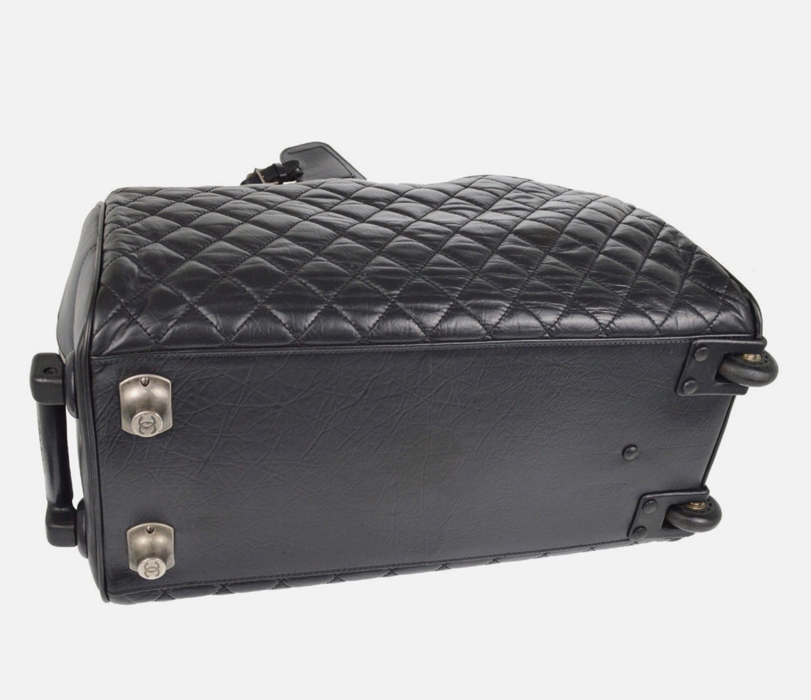 Chanel Black Calfskin Paris NY Carry-On Rolling Luggage