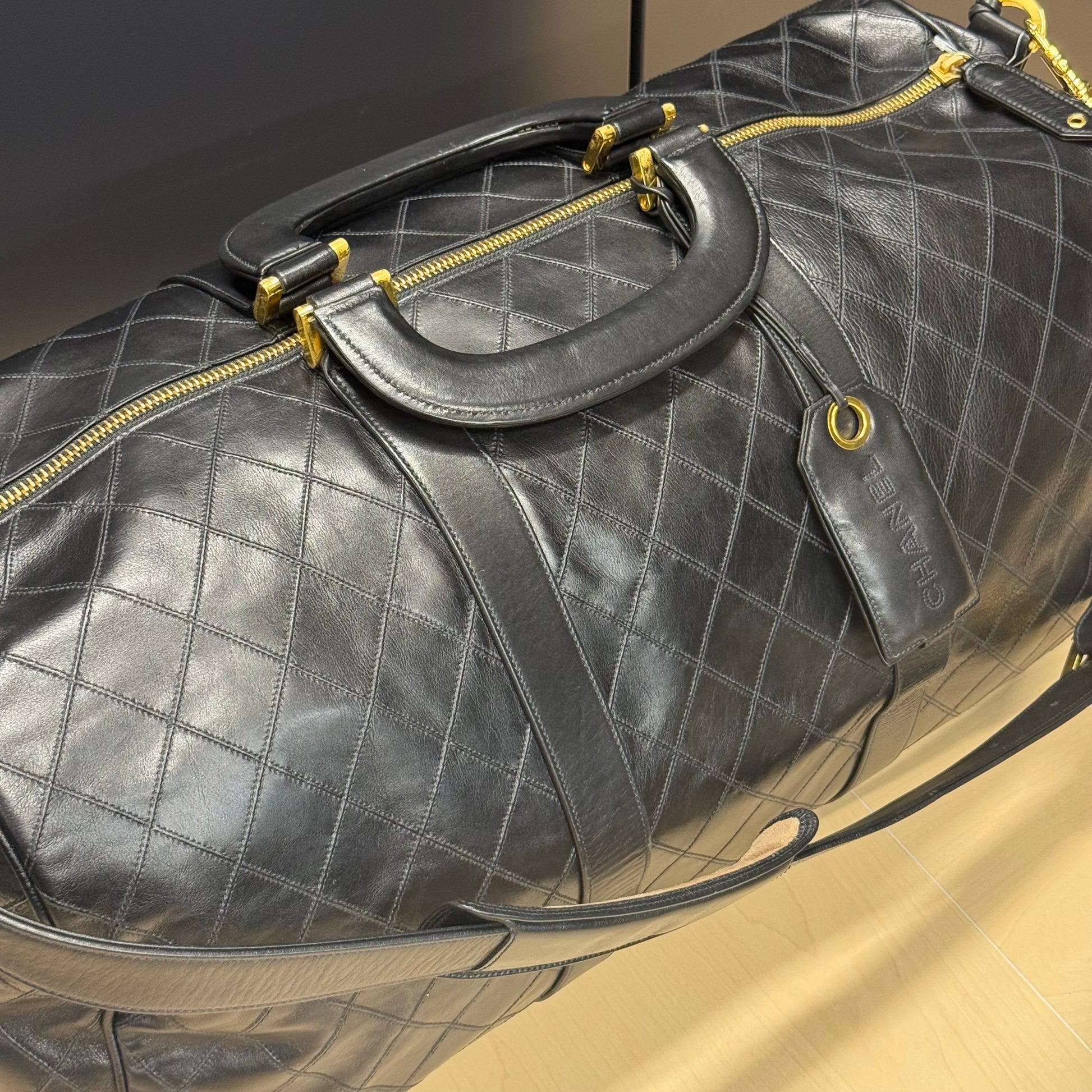 Sac Chanel Duffle en cuir d’agneau pleine fleur noir