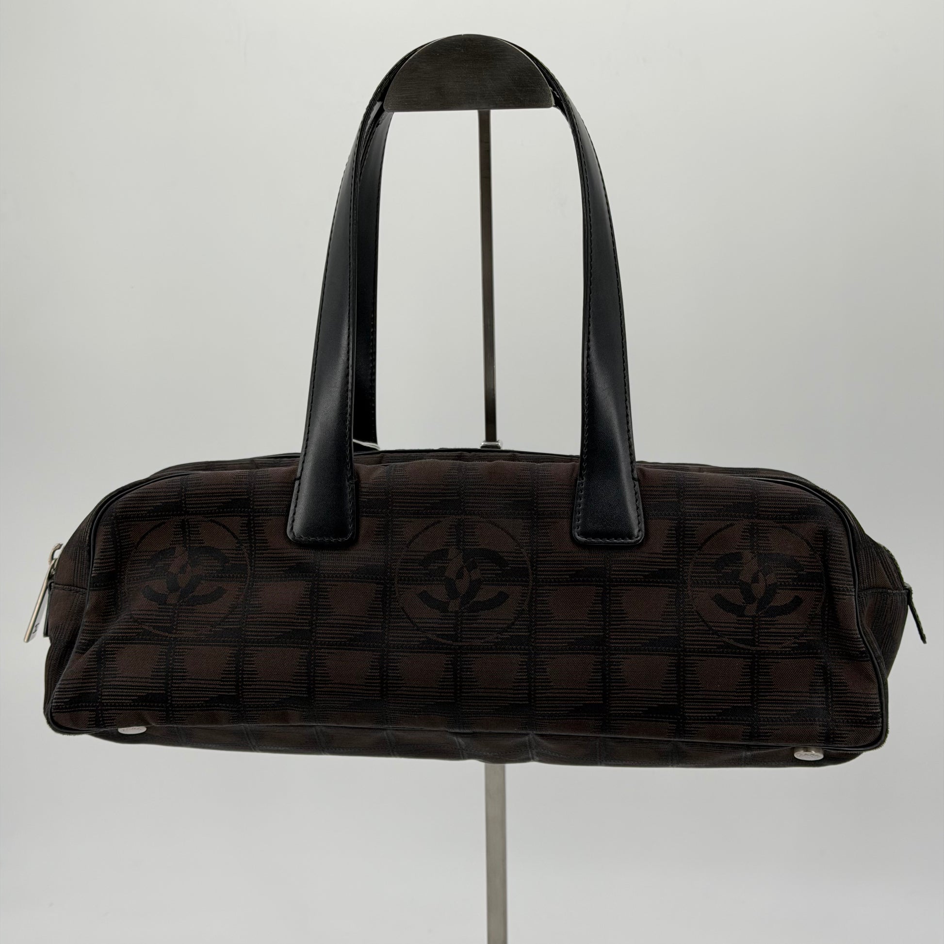 Sac Chanel ligne voyage en toile noire.