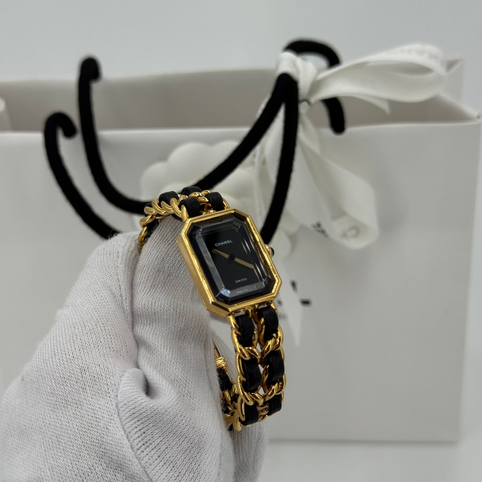 Montre Chanel Première Originale en plaqué or et cuir.
