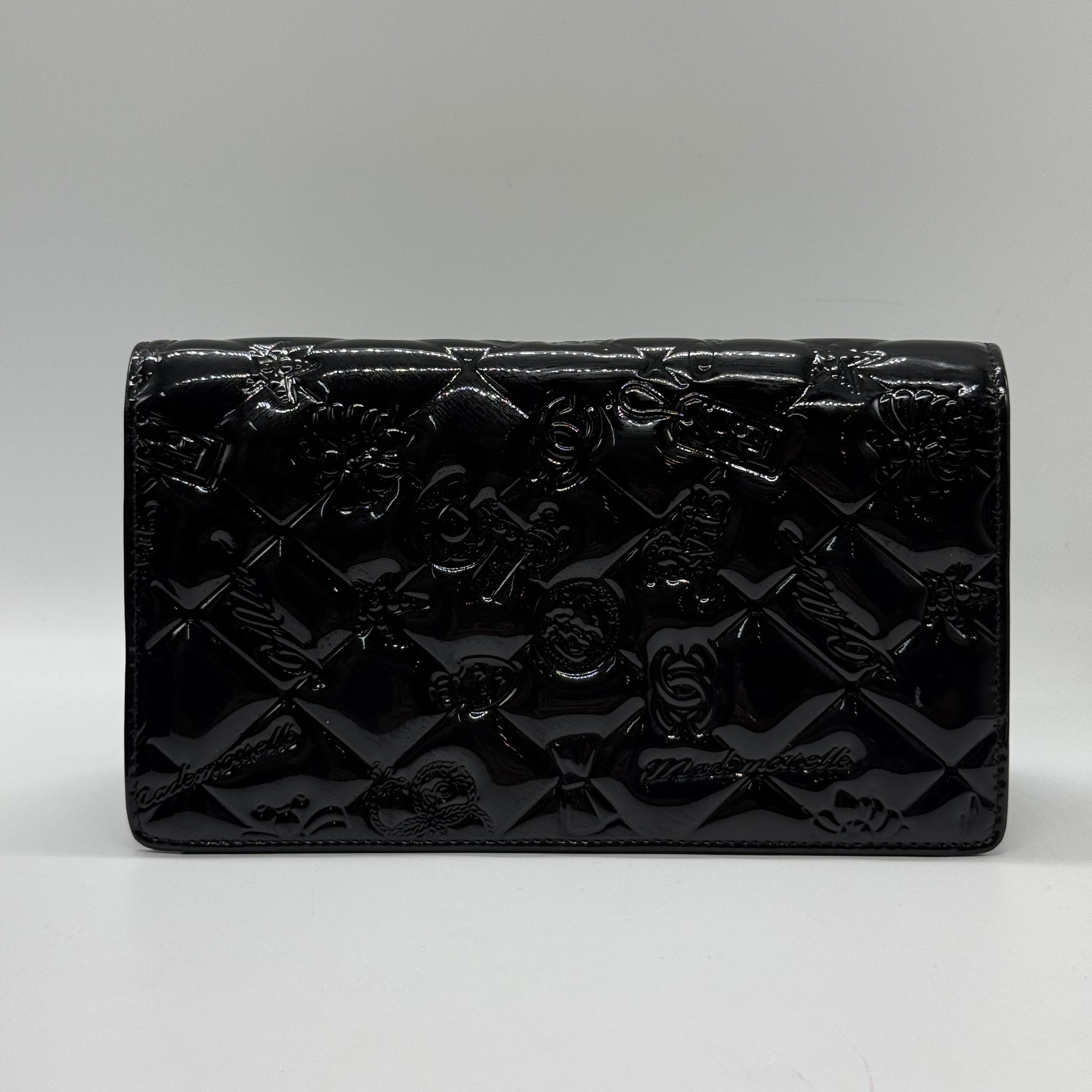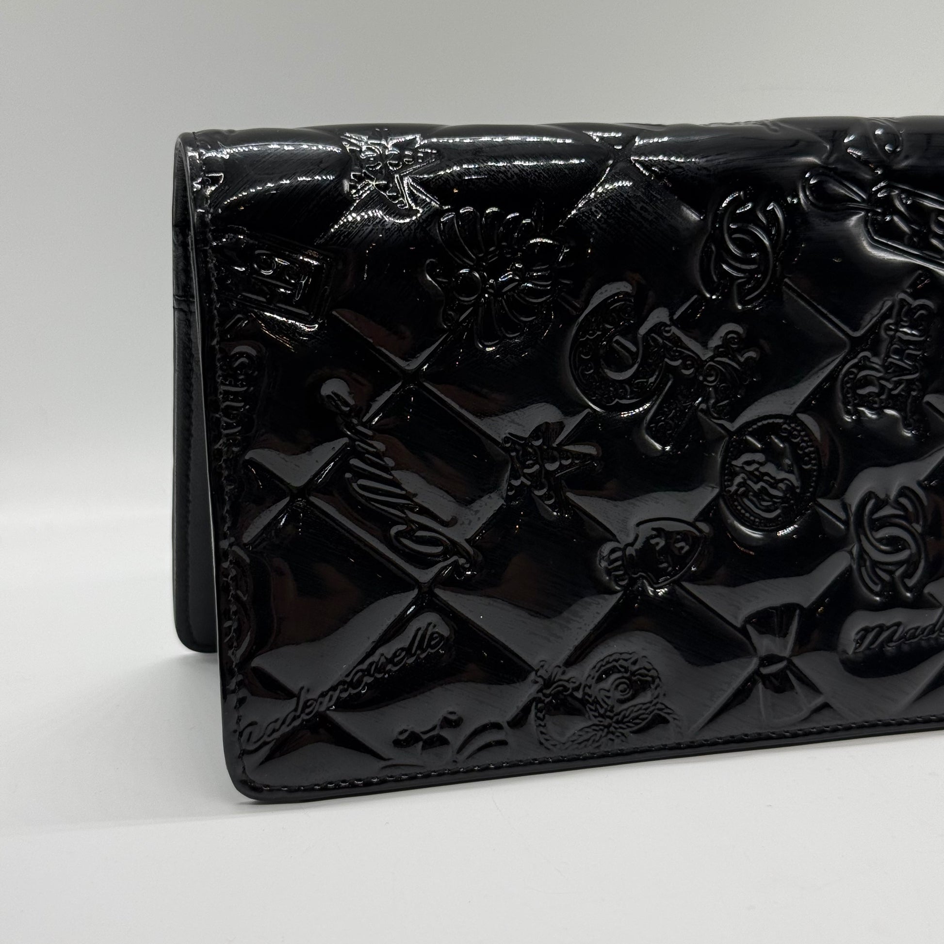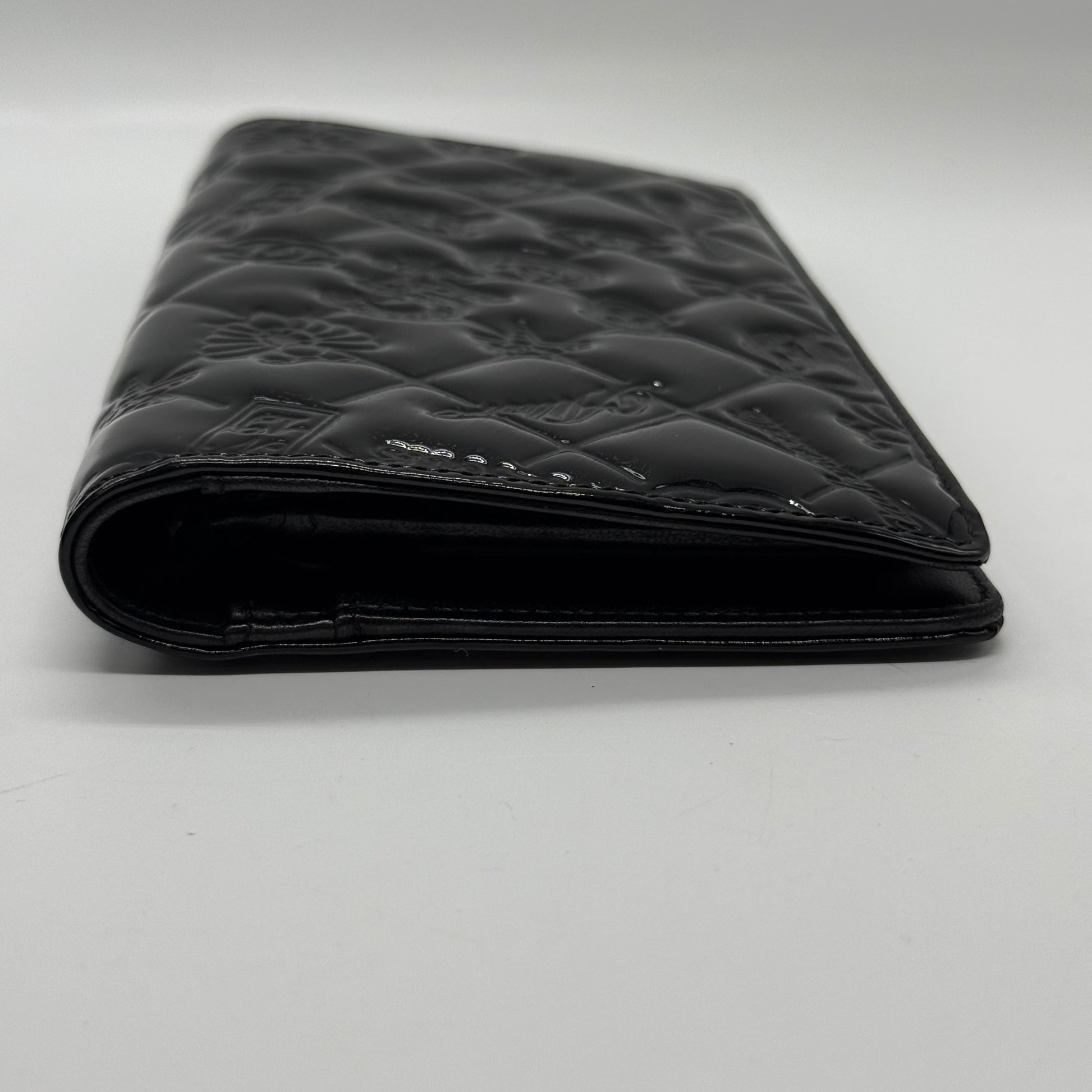 Portefeuille Chanel en cuir vernis noir, produit en 2008.