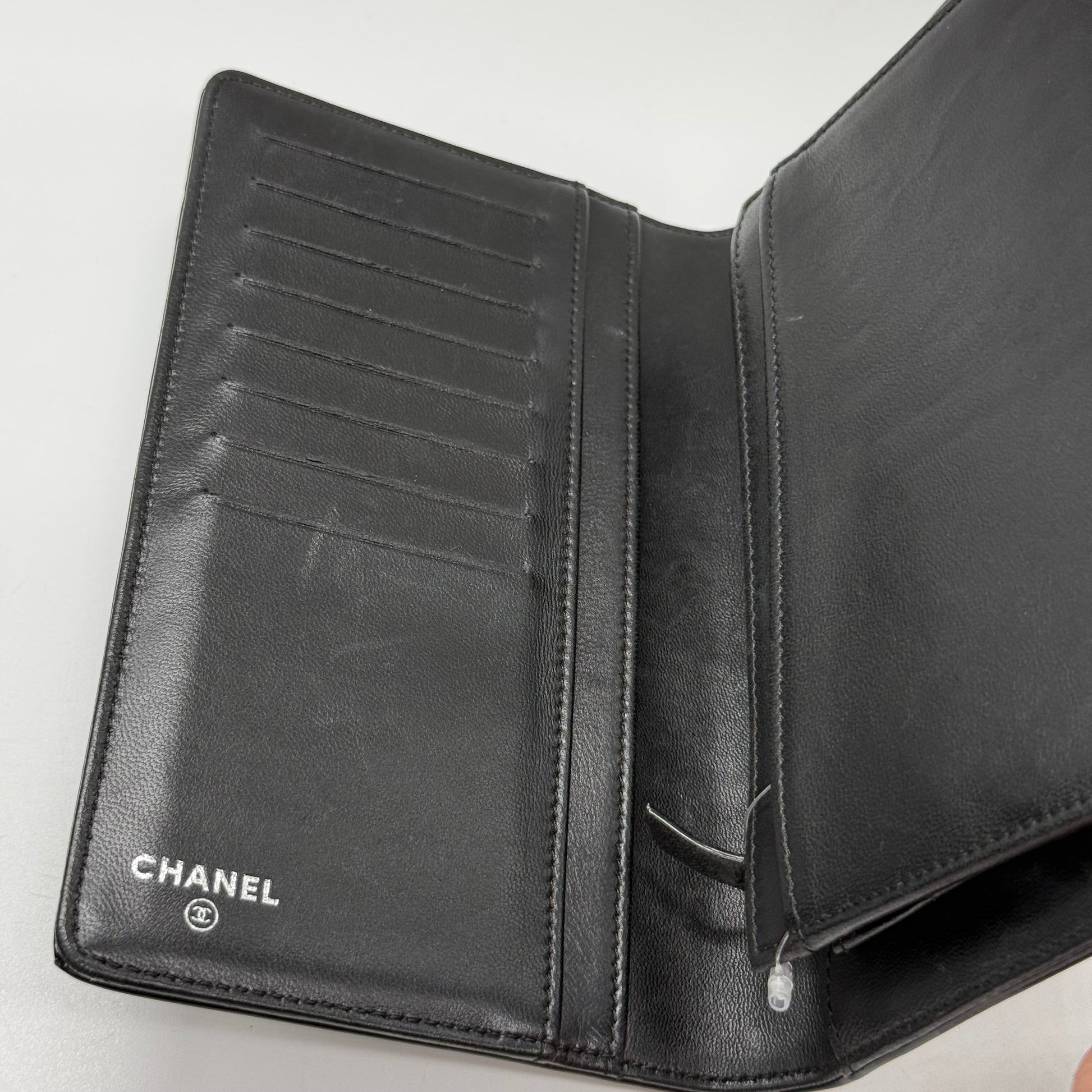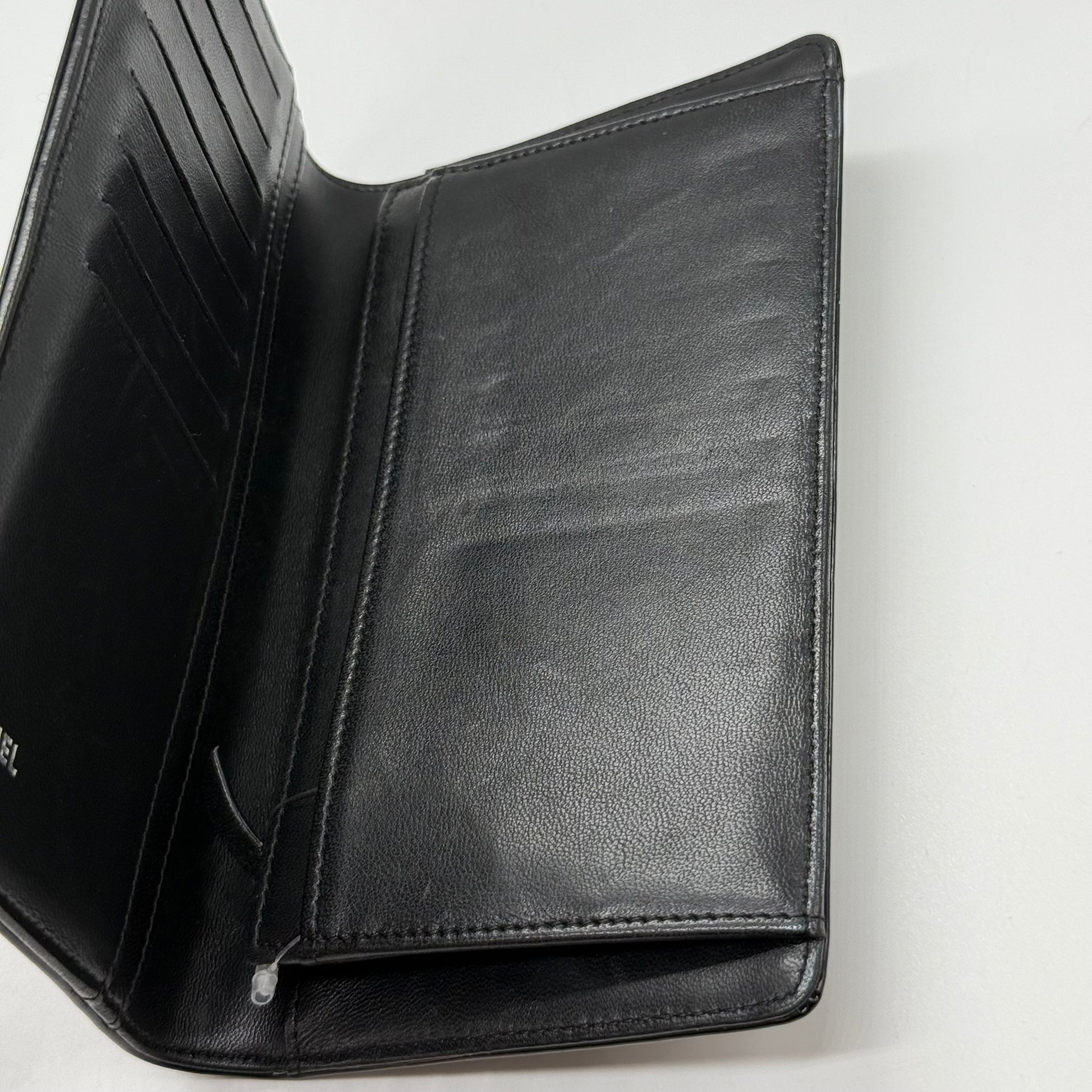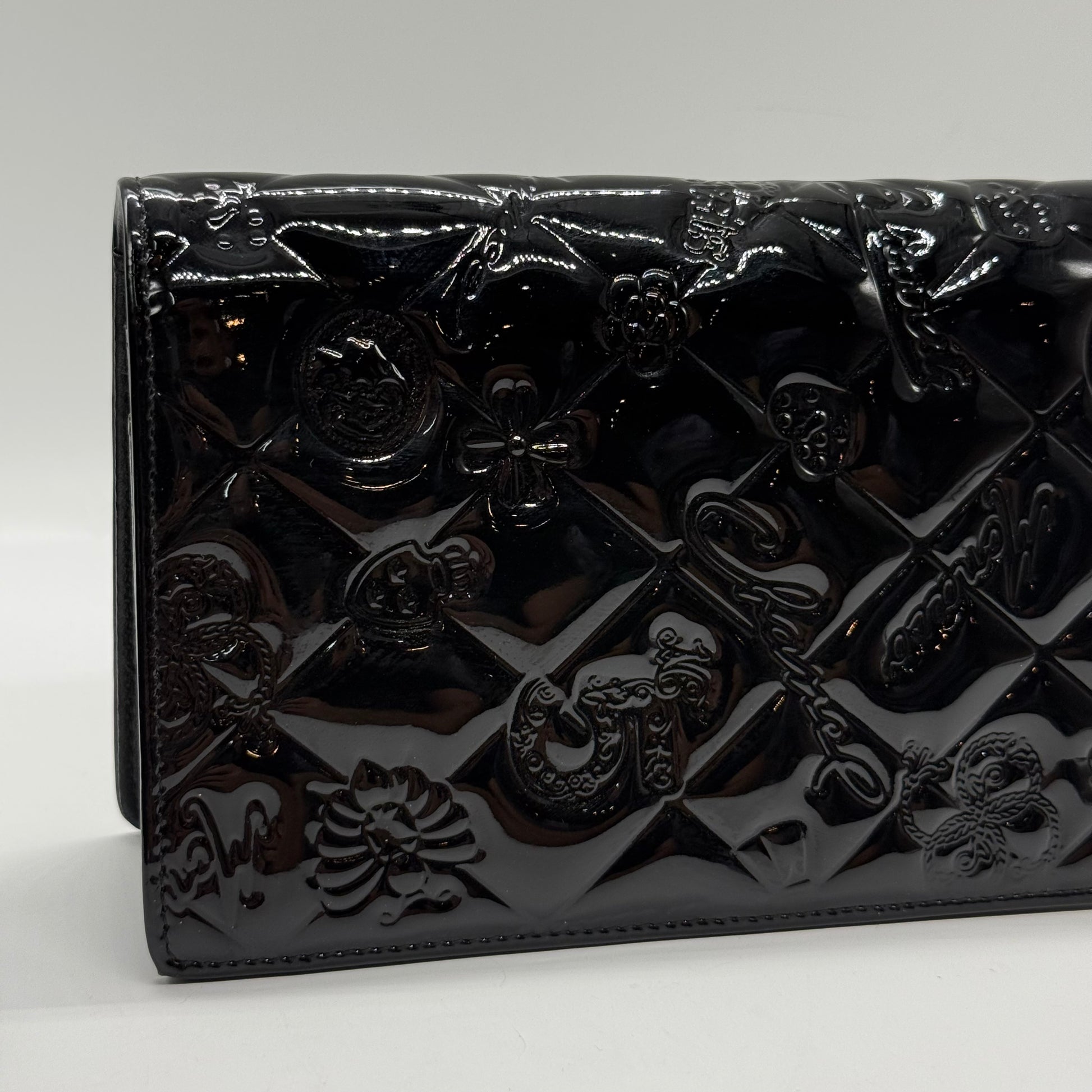 Portefeuille Chanel en cuir vernis noir, produit en 2008.