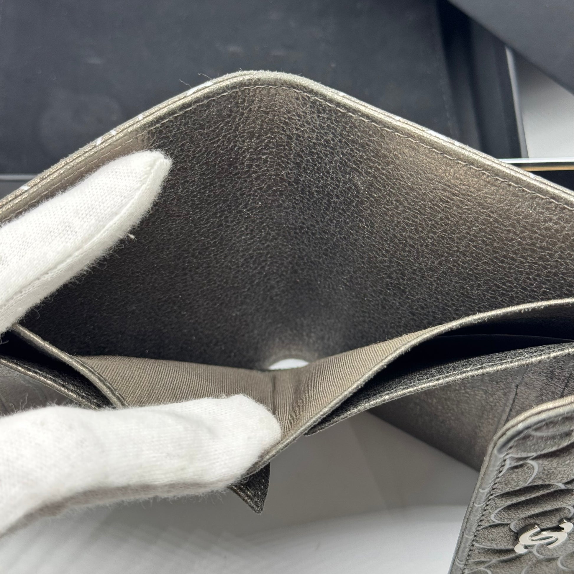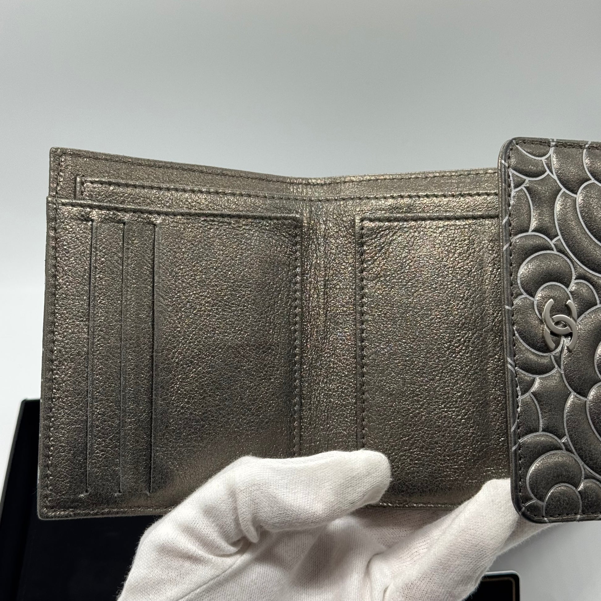 Portefeuille Chanel Camelia en cuir de veau vieilli et embossé Camelia