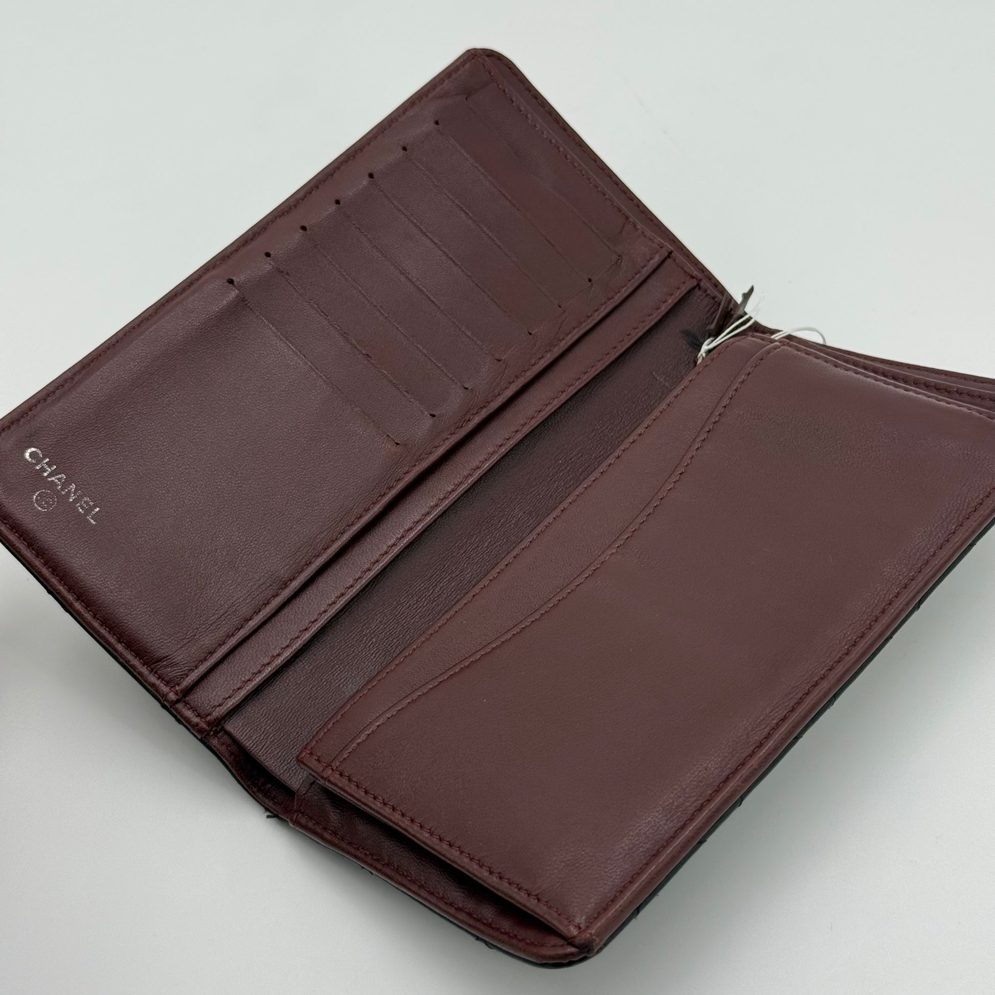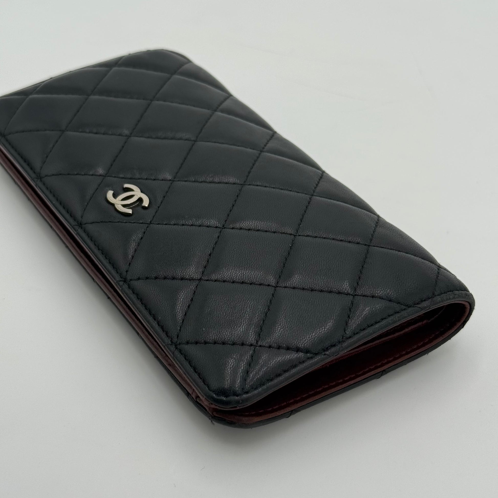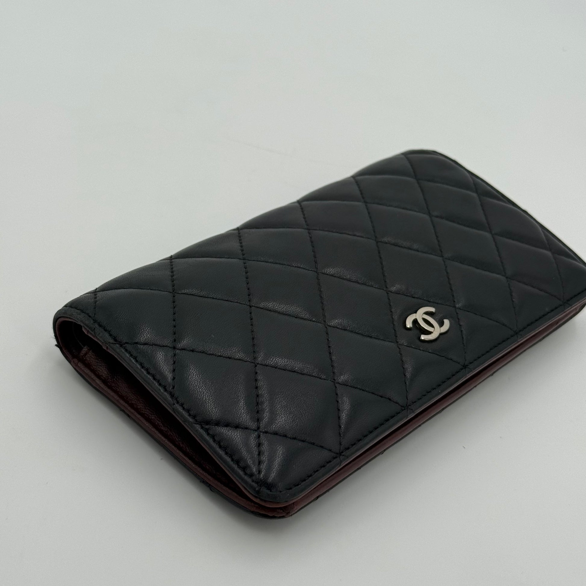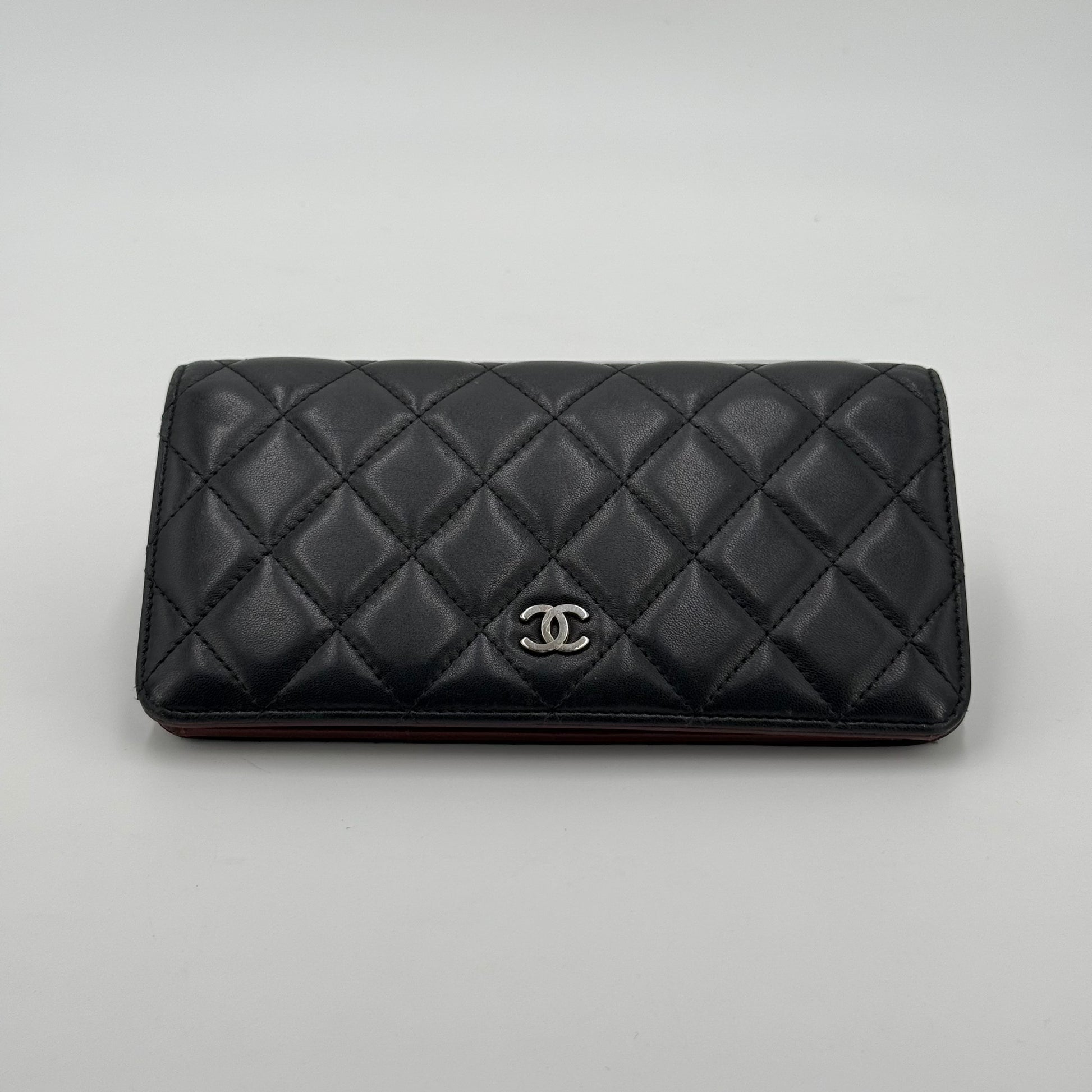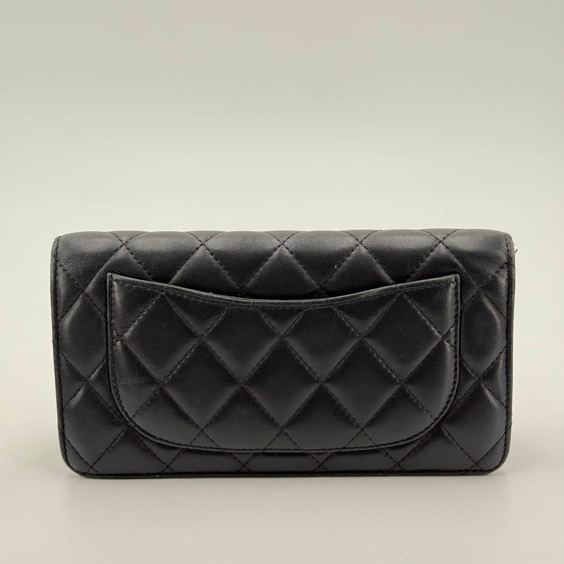 Sac Chanel Portefeuille long en cuir d'agneau noir.