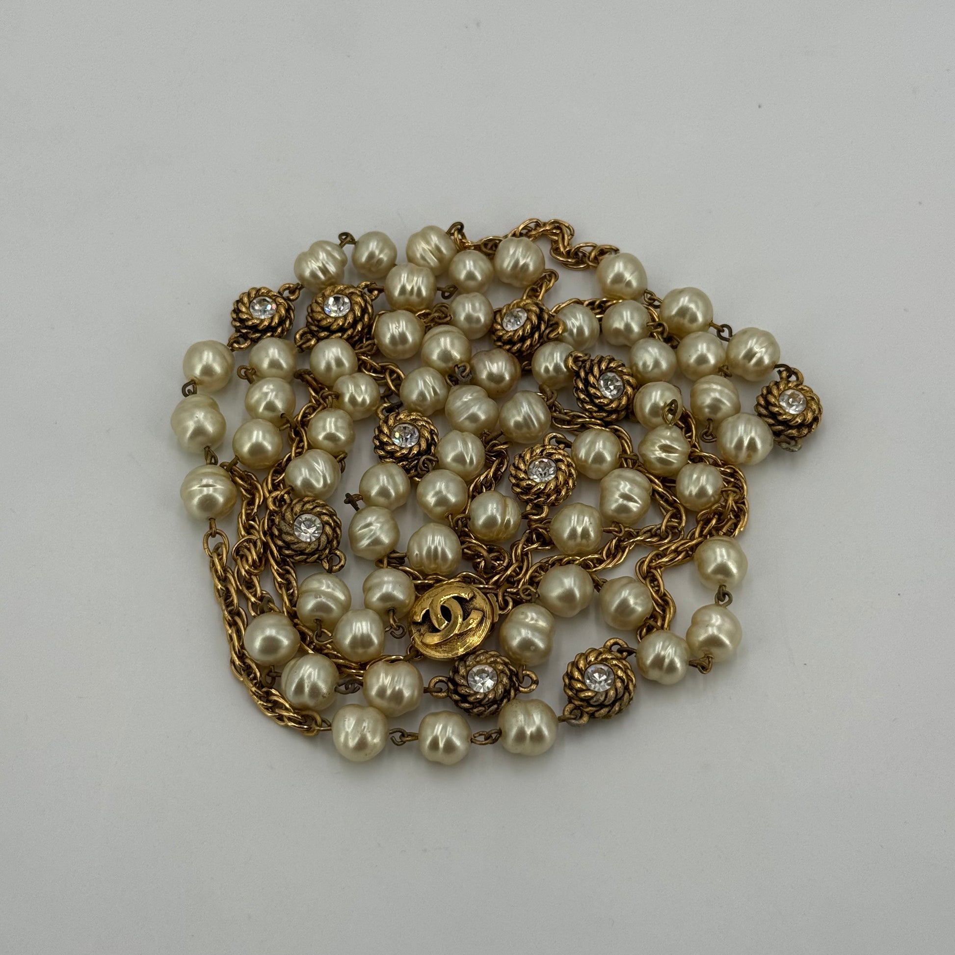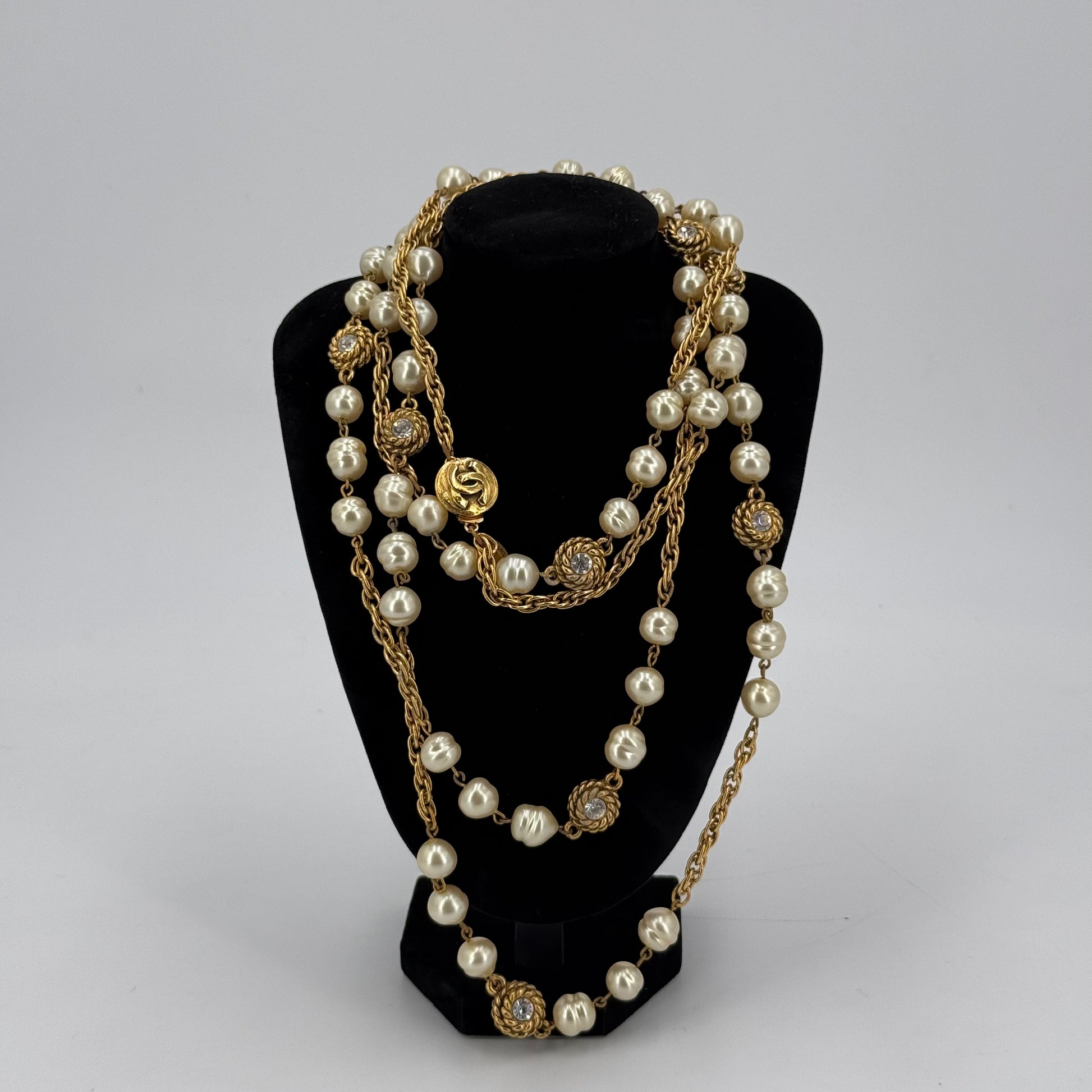 Sautoir Chanel XL modèle en perles baroques avec sa boîte et son pochon , perles baroques et métal doré et cristaux