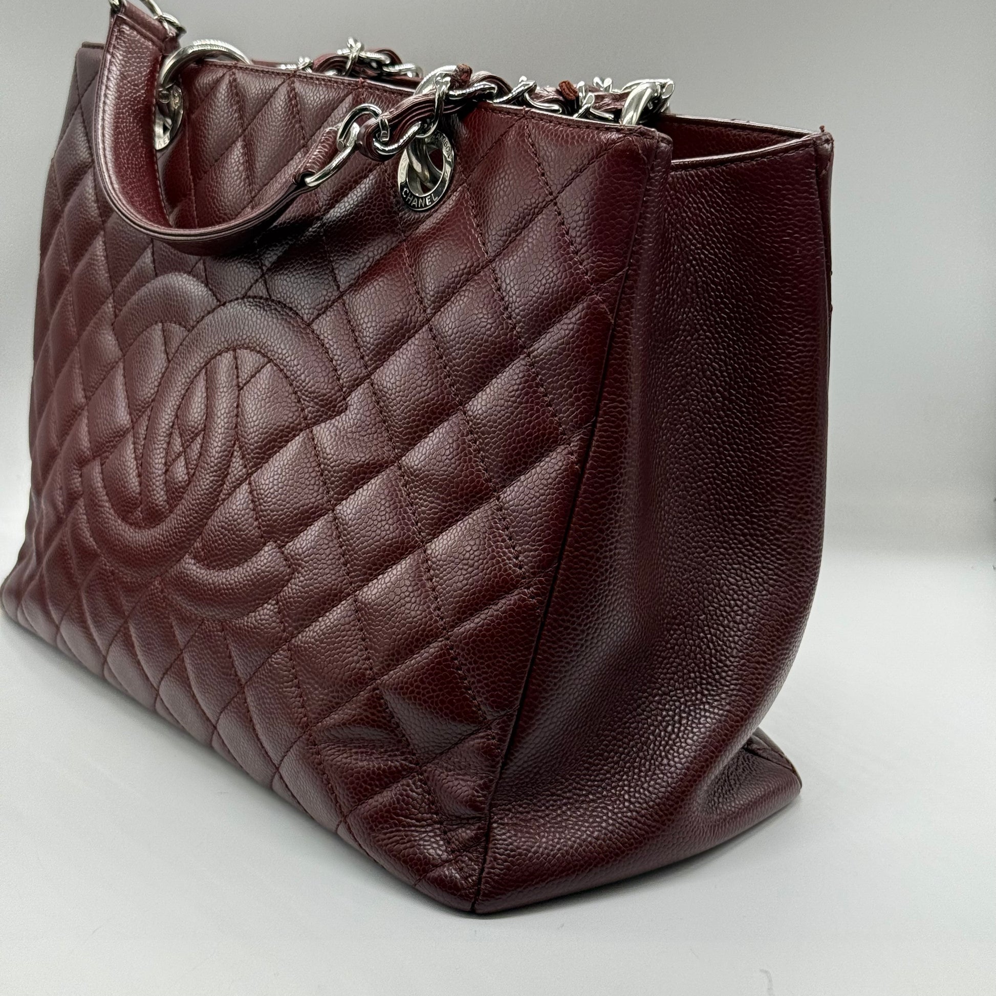 Sac Chanel Shopping en cuir de veau grainé bordeaux.