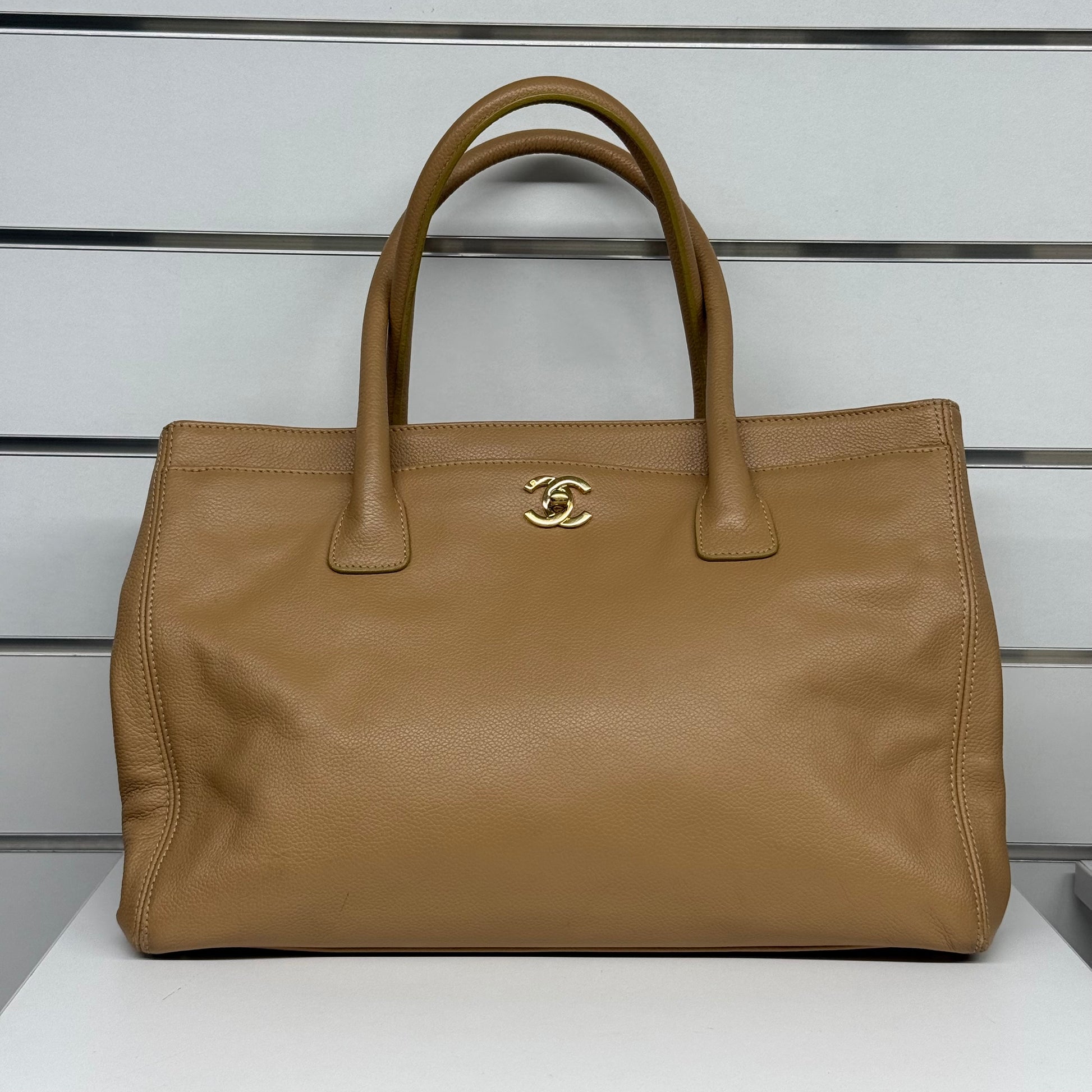 Sac Chanel Shopping executive en cuir de veau grainé cappuccino.