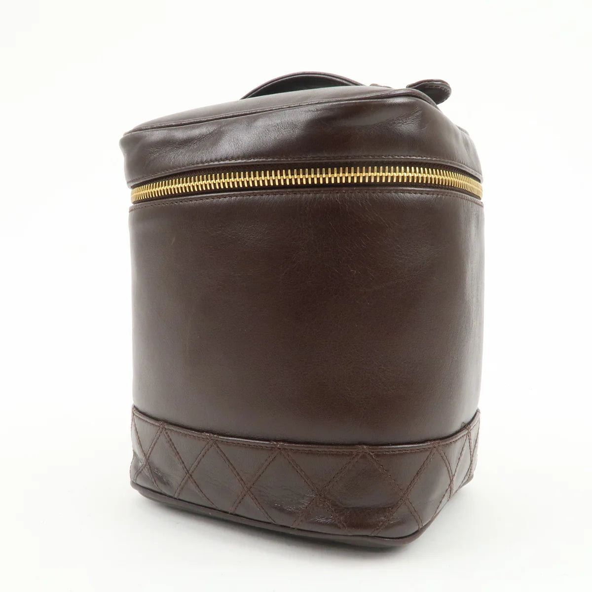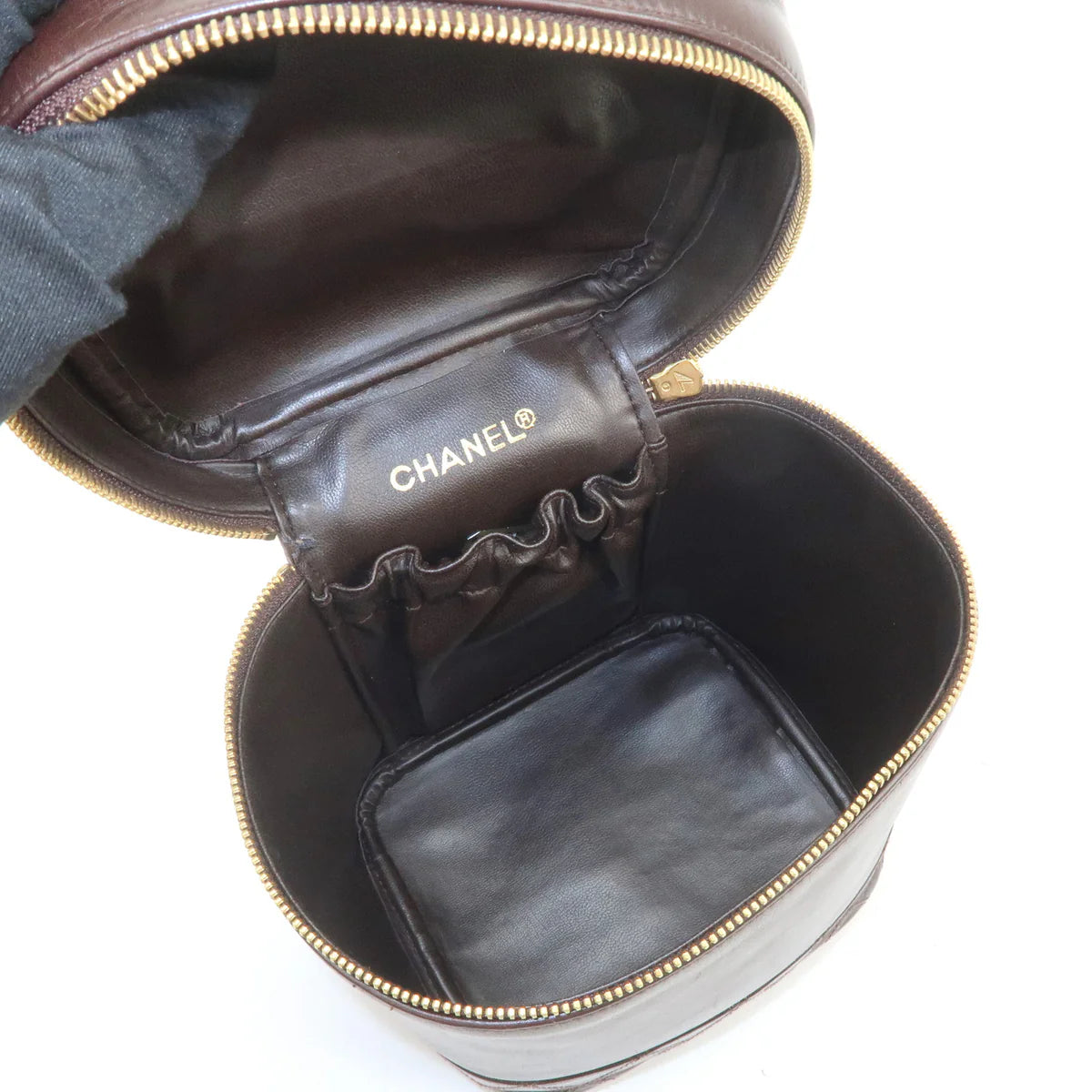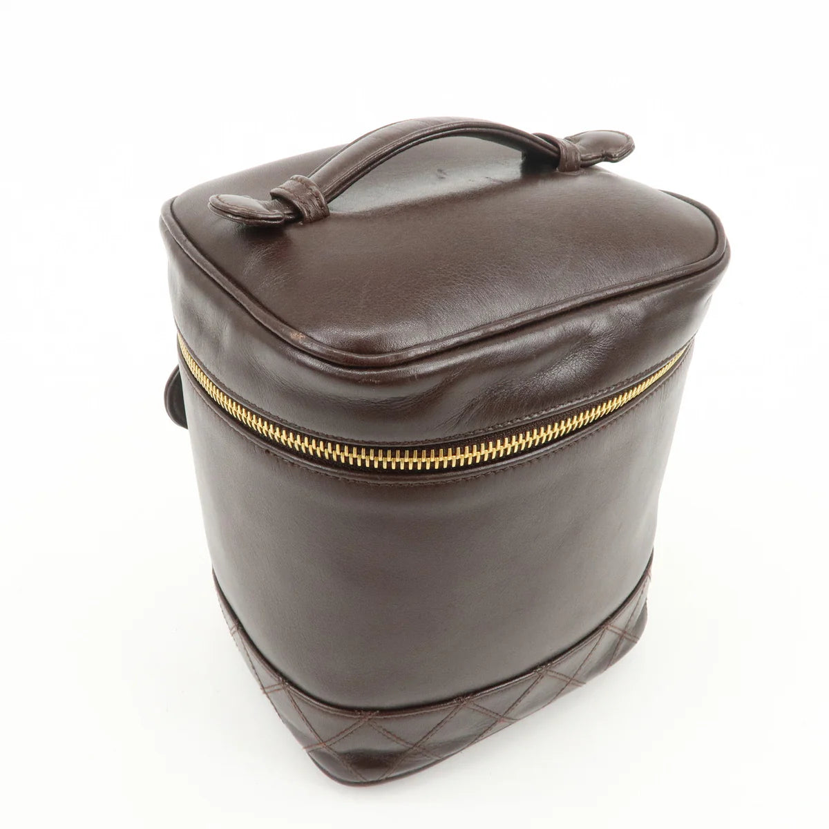Vanity en cuir d’agneau pleine fleur chocolat et bijouterie dorée , vendu avec sa carte d’authenticité