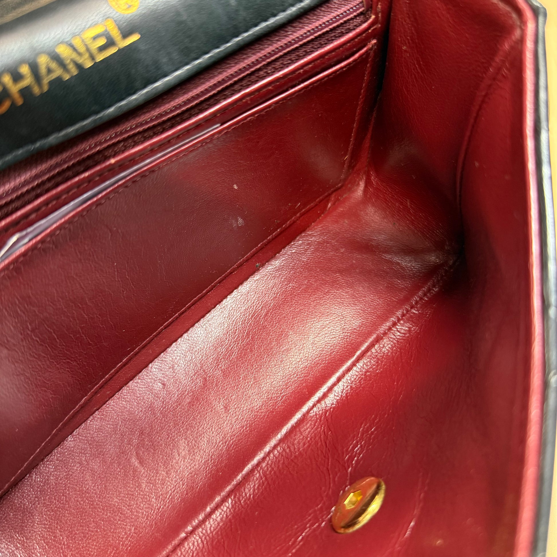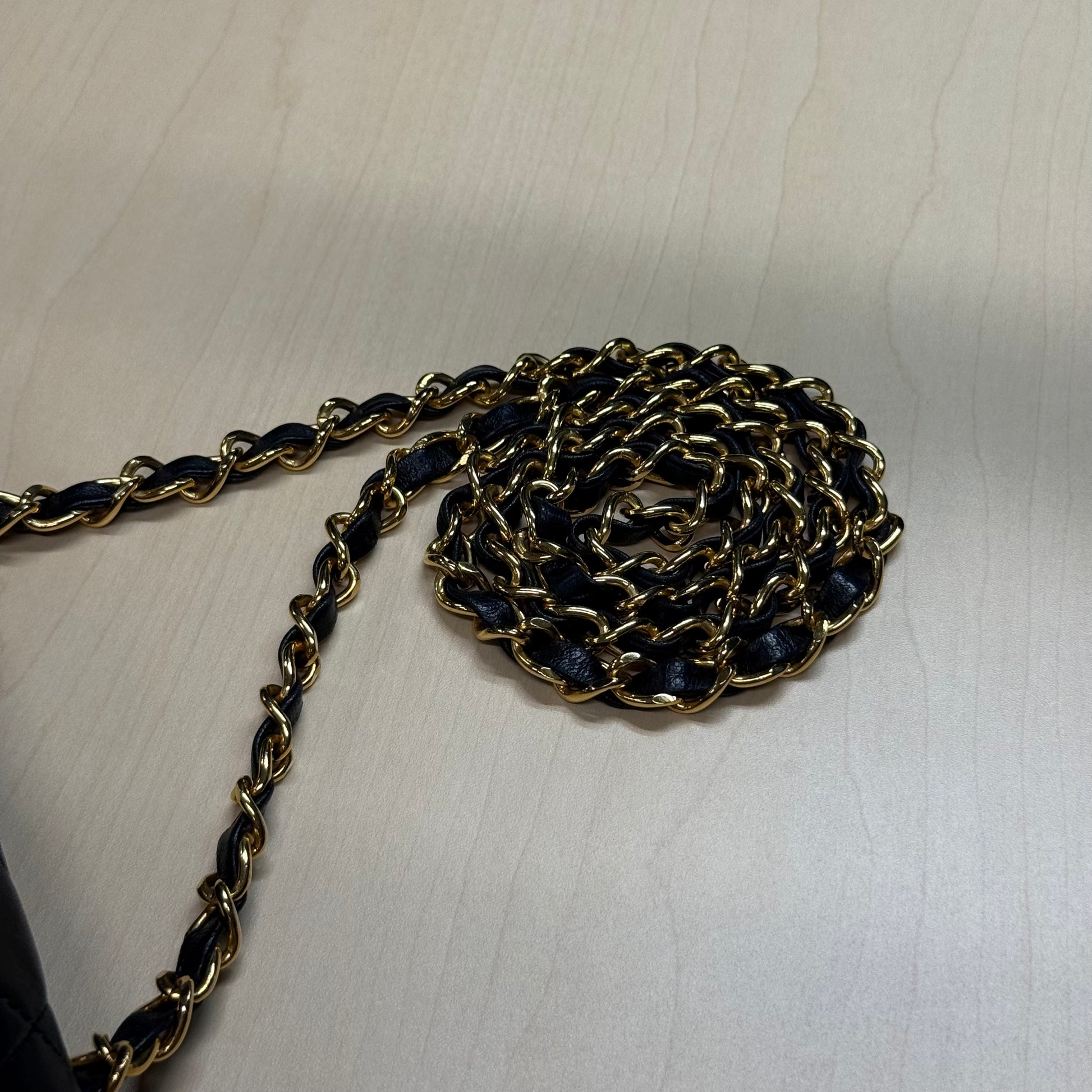 Sac Chanel vintage en cuir d'agneau noir et bijouterie plaquée or.