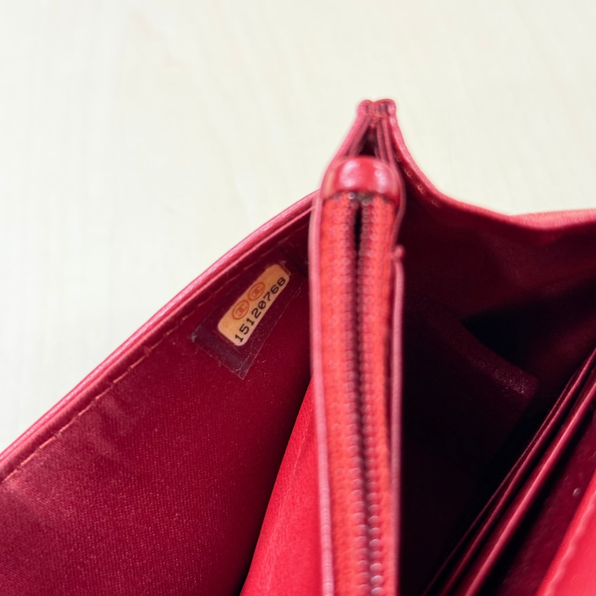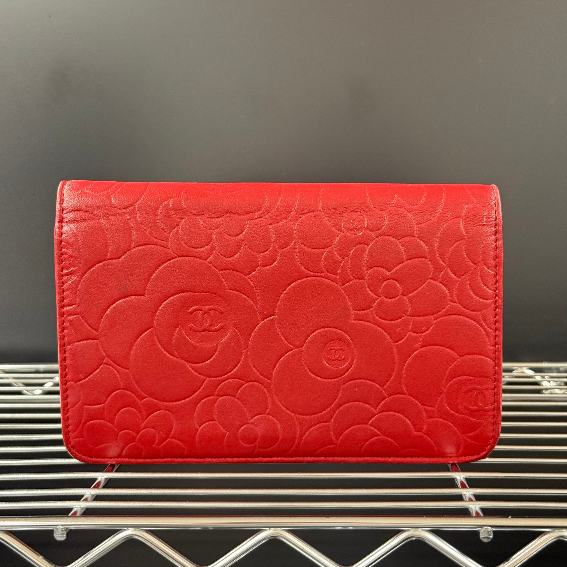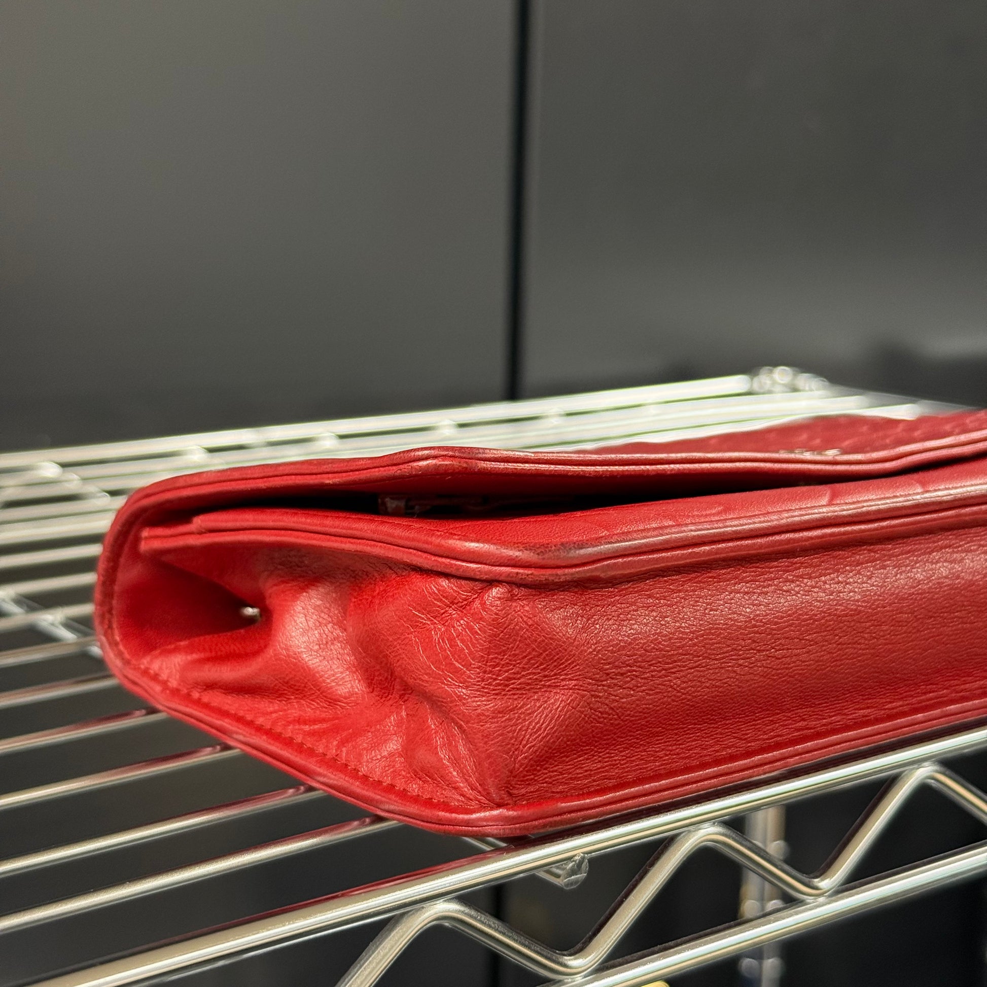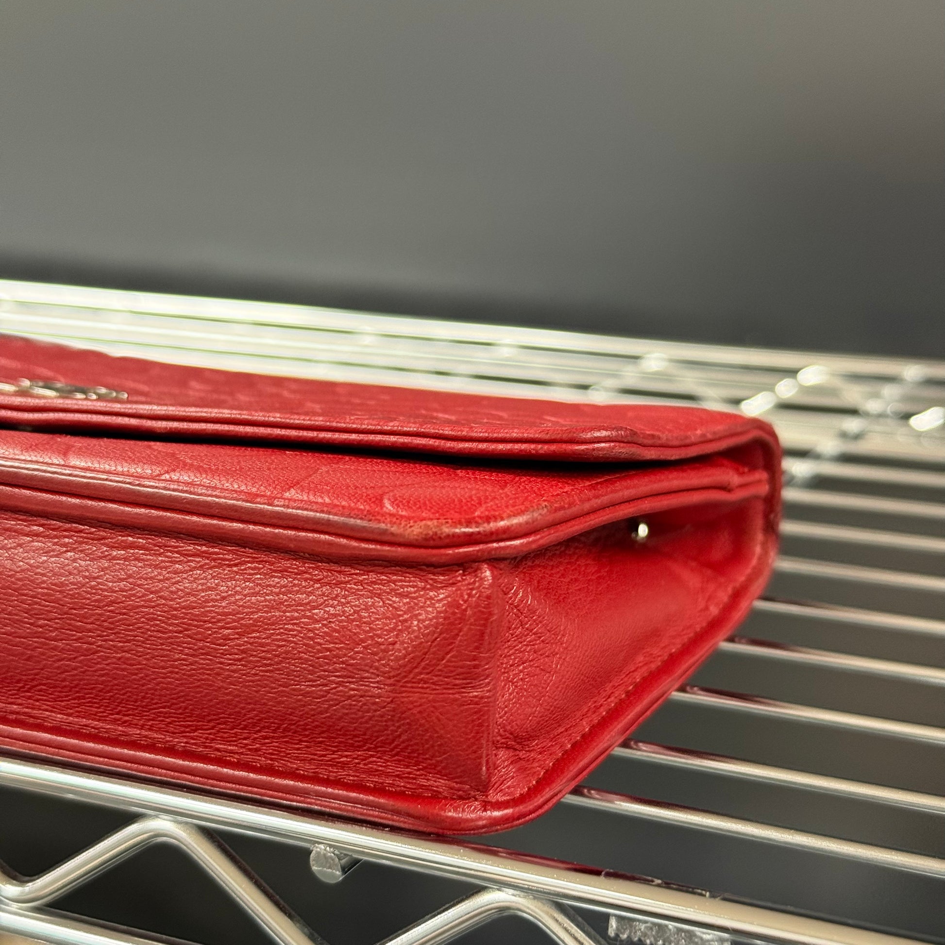 Wallet on chain Chanel en cuir d'agneau rouge.