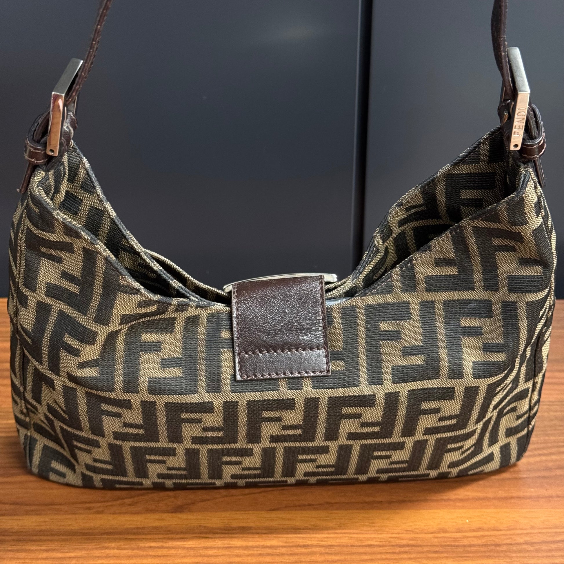 Fendi hobo en toile Jacquard. Ce modèle se porte à l'épaule.