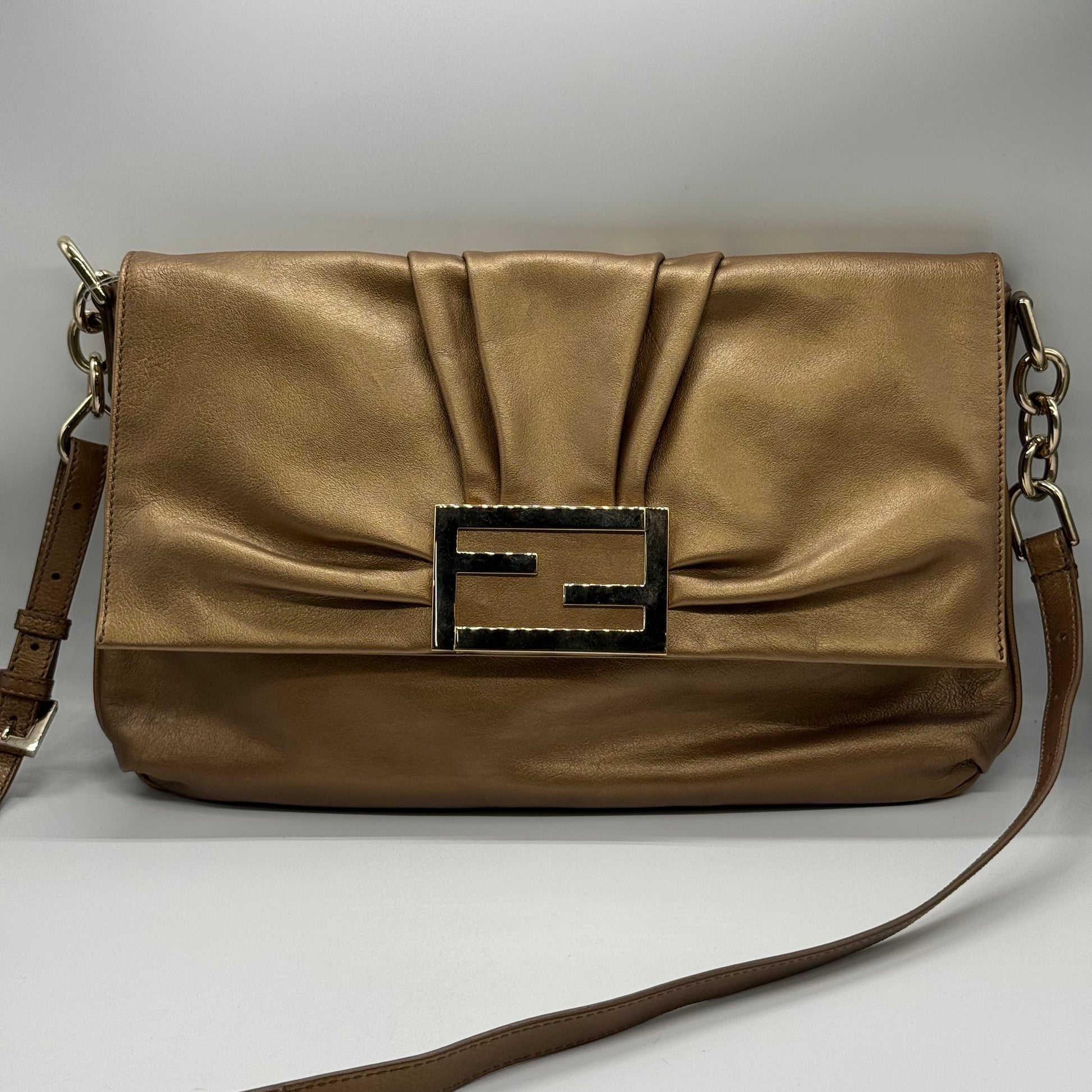 Baguette Fendi XL en cuir de veau grainé mordoré, porte bandoulière