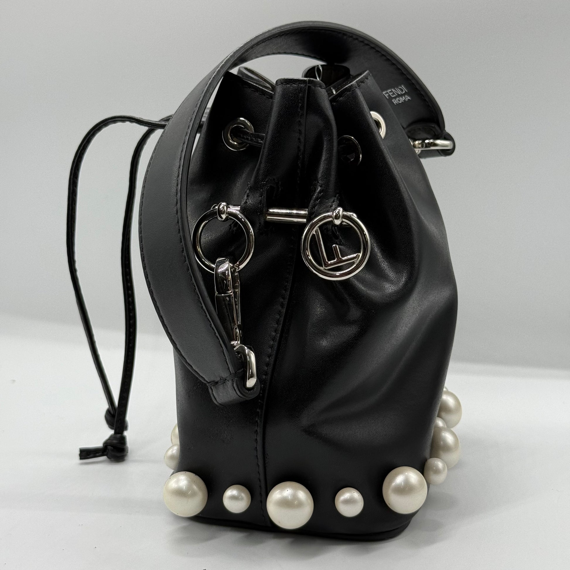 Sac Fendi Mon Tresor en cuir de veau noir et perles.