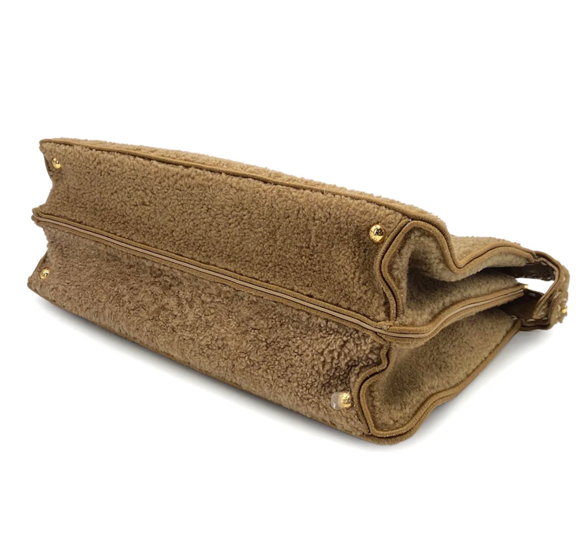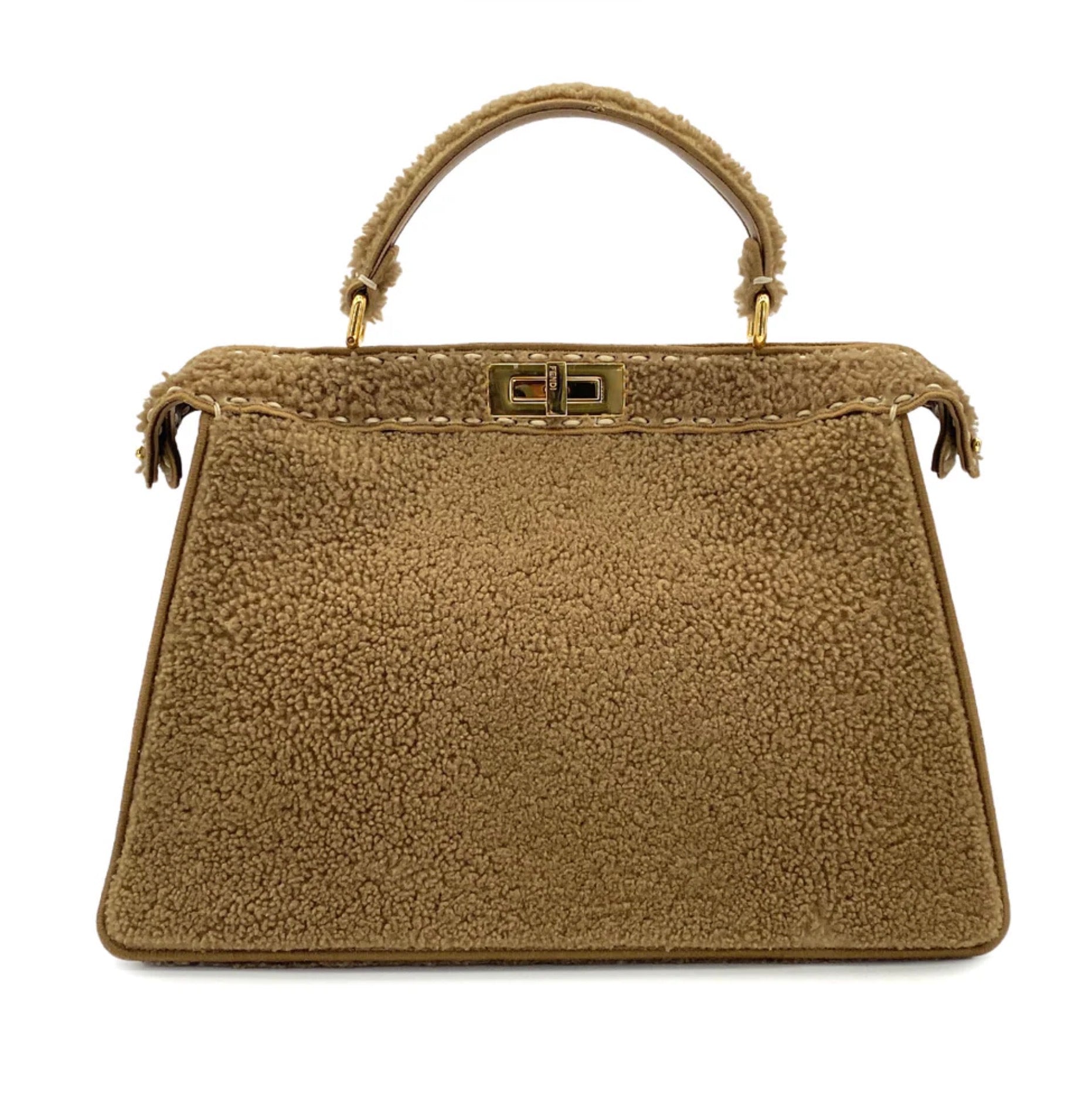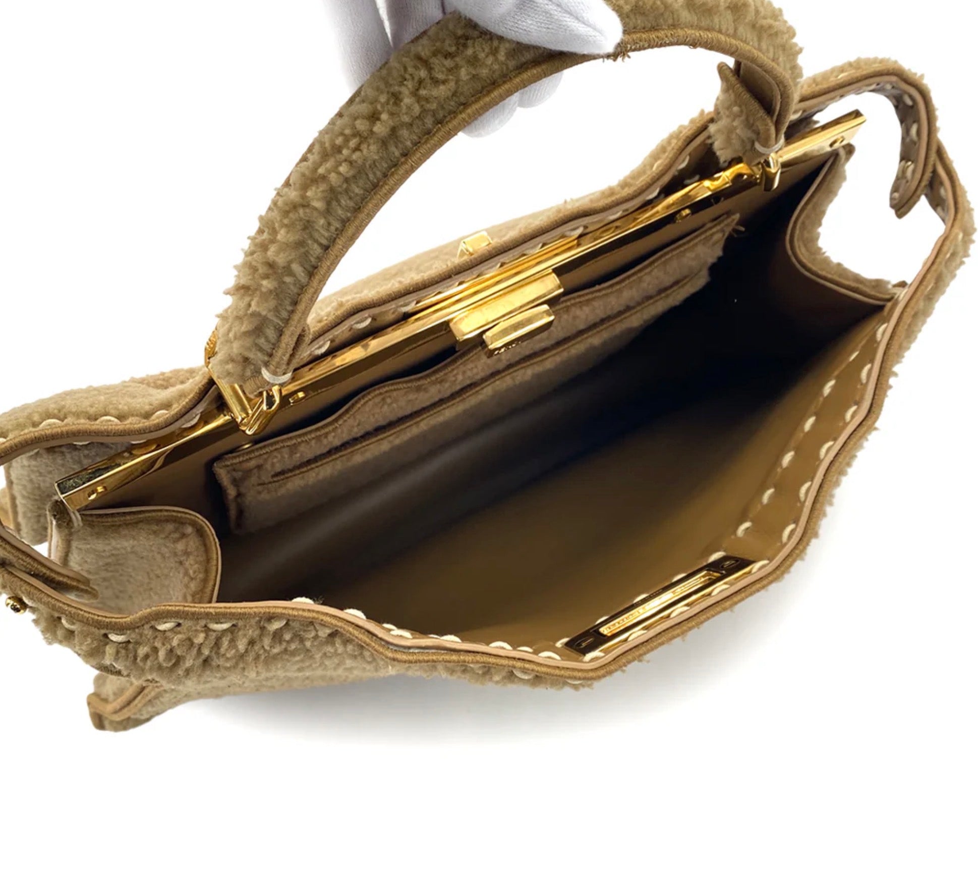 Sac Fendi PeekaBoo I See U en sherling beige et bijouterie doré