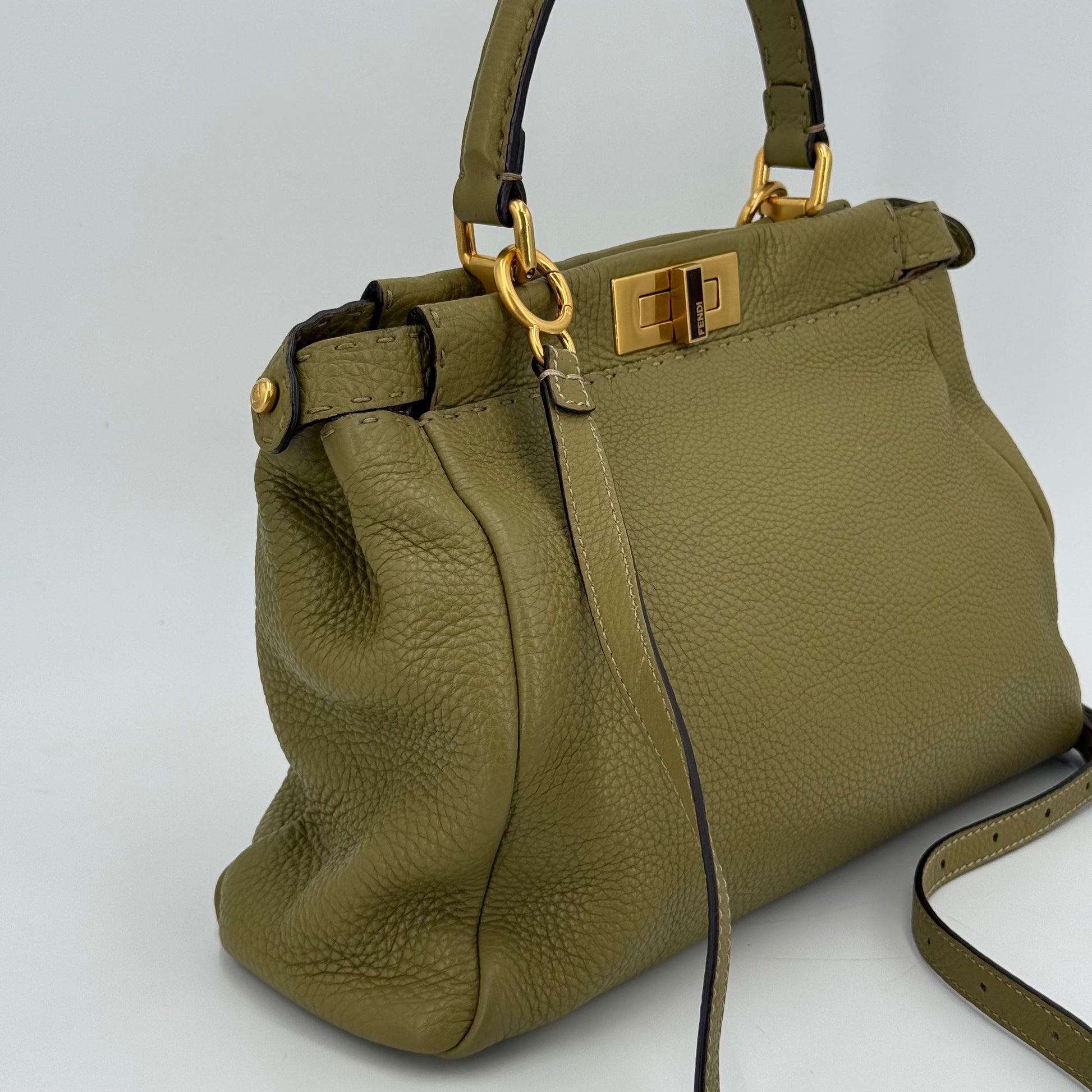 Sac Peekaboo selleria retourné emblématique, moyen format, réalisé en points sellier cousus main, un emblème de la finition iconique Selleria que les artisans Fendi perpétuent depuis 1925.