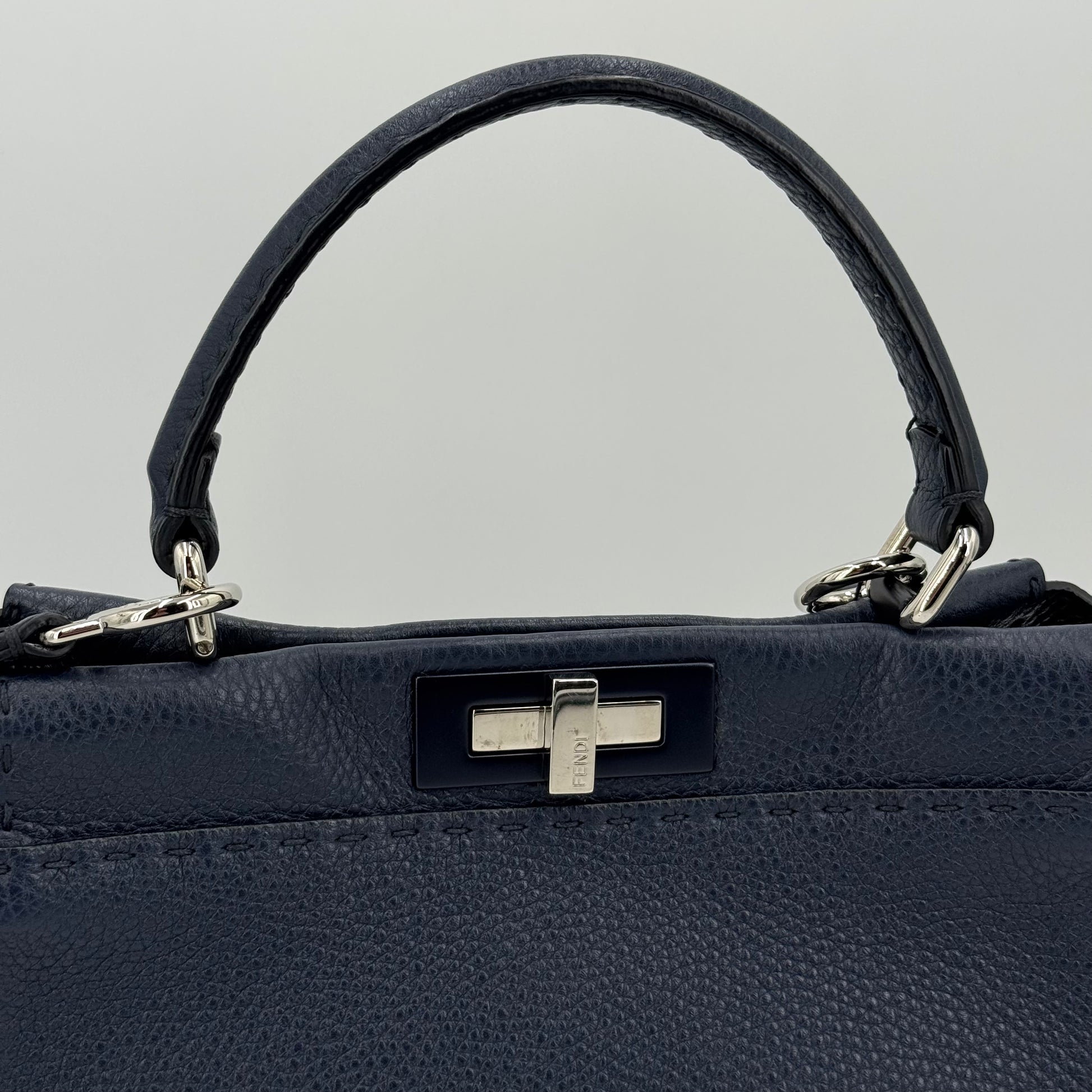 Sac Peekaboo selleria  emblématique, moyen format, réalisé avec 732 points sellier cousus main, un emblème de la finition iconique Selleria que les artisans Fendi perpétuent depuis 1925.