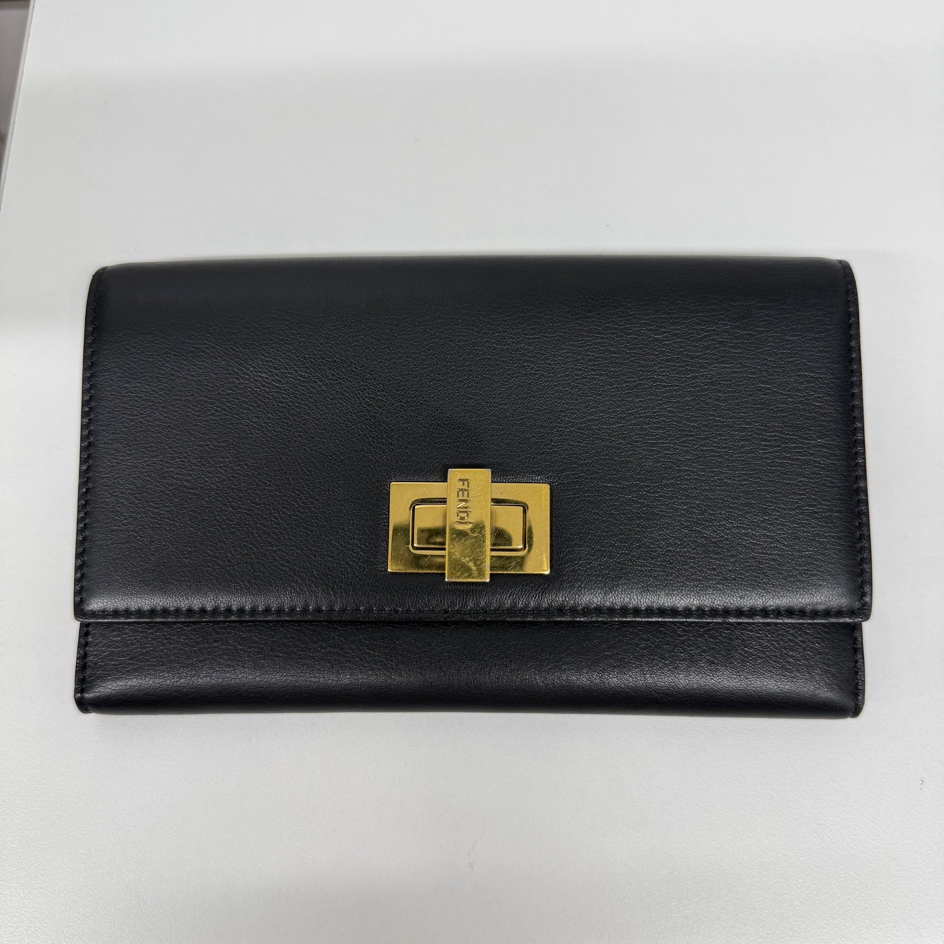 Portefeuille Fendi en cuir de veau et bijouterie dorée