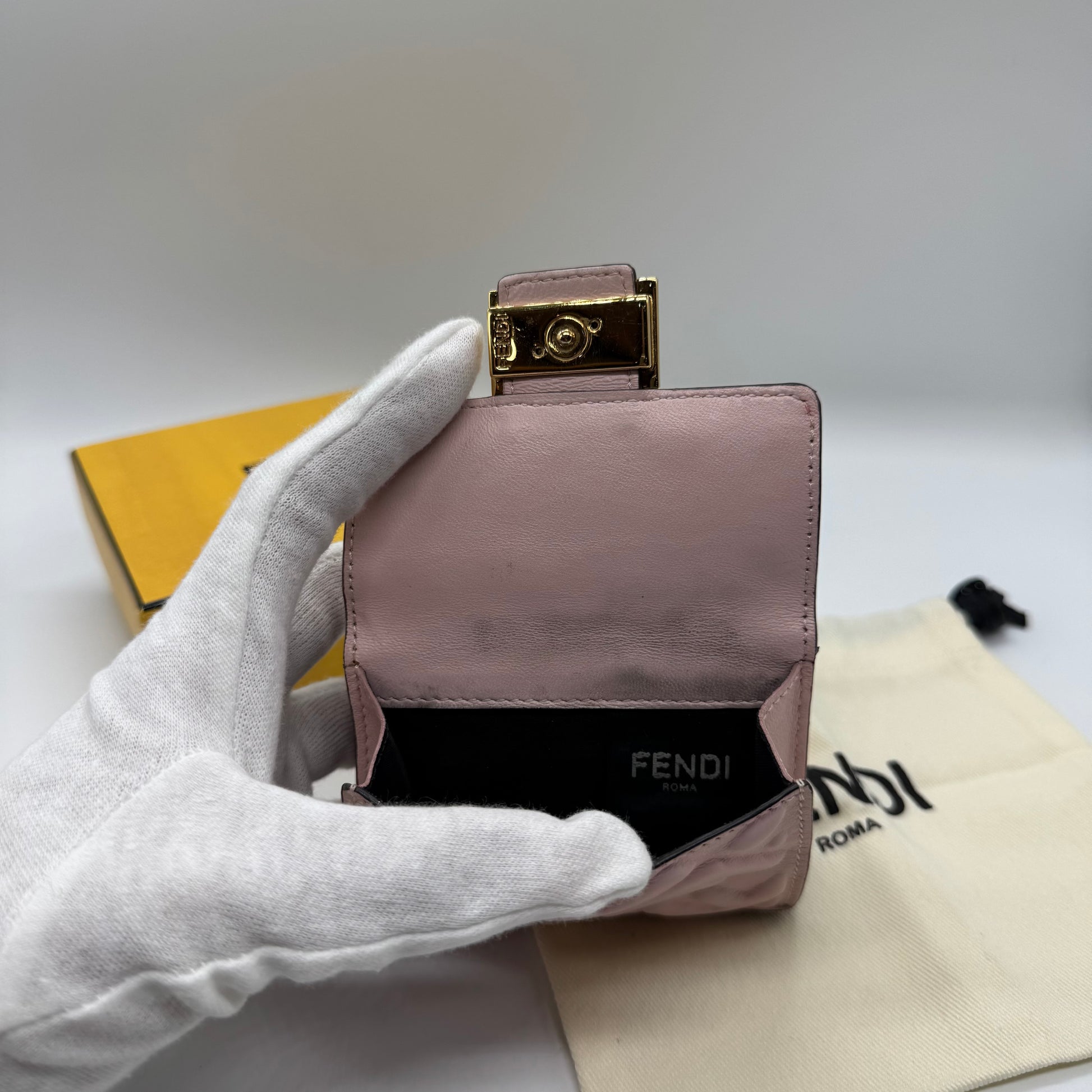 Mini portefeuille compact Fendi en cuir de veau embossé FF et boucle FF en métal doré