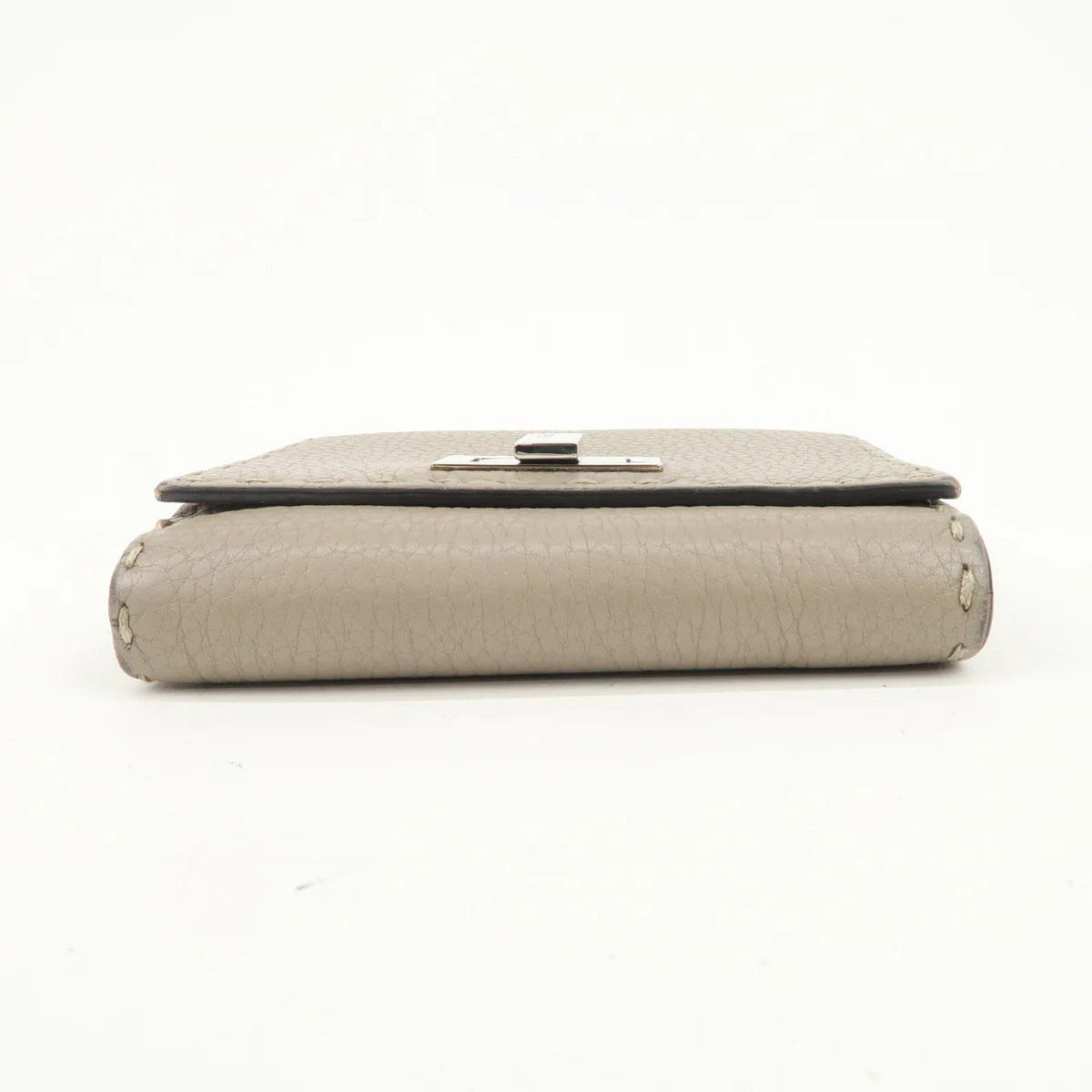 Portefeuille en cuir de veau selleria coloris grège, bijouterie argent , avec sa boîte .