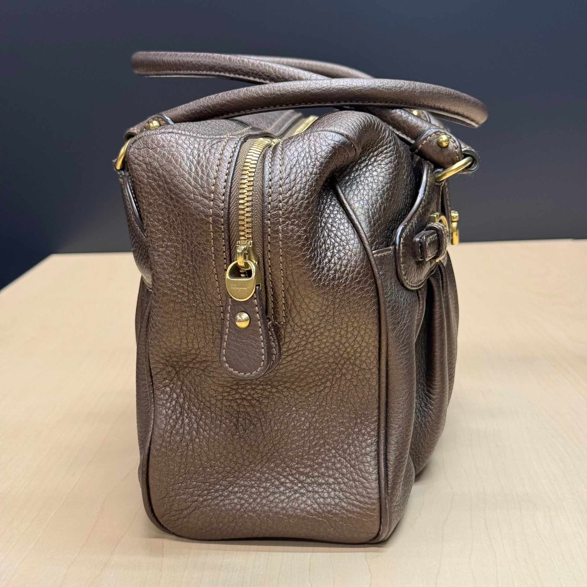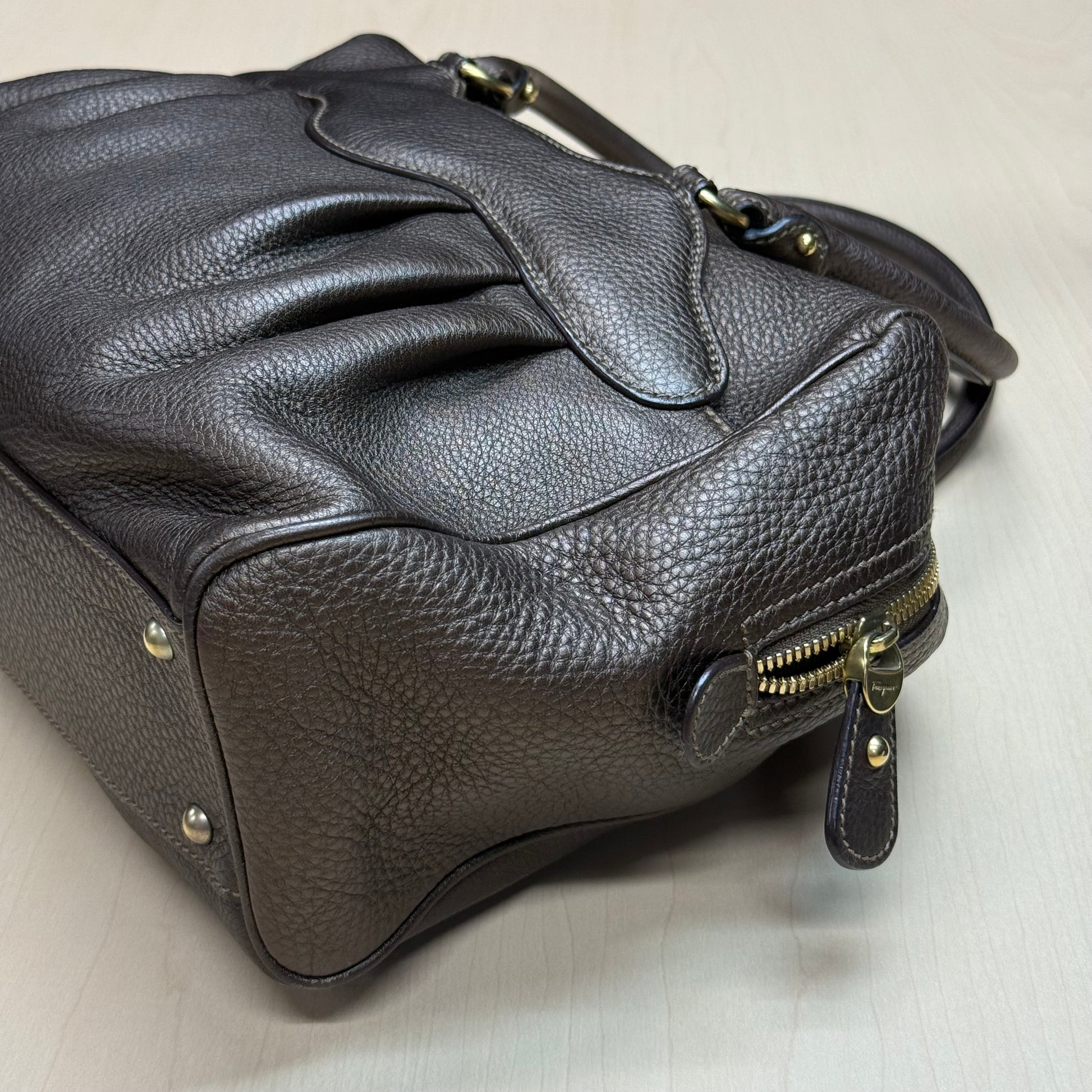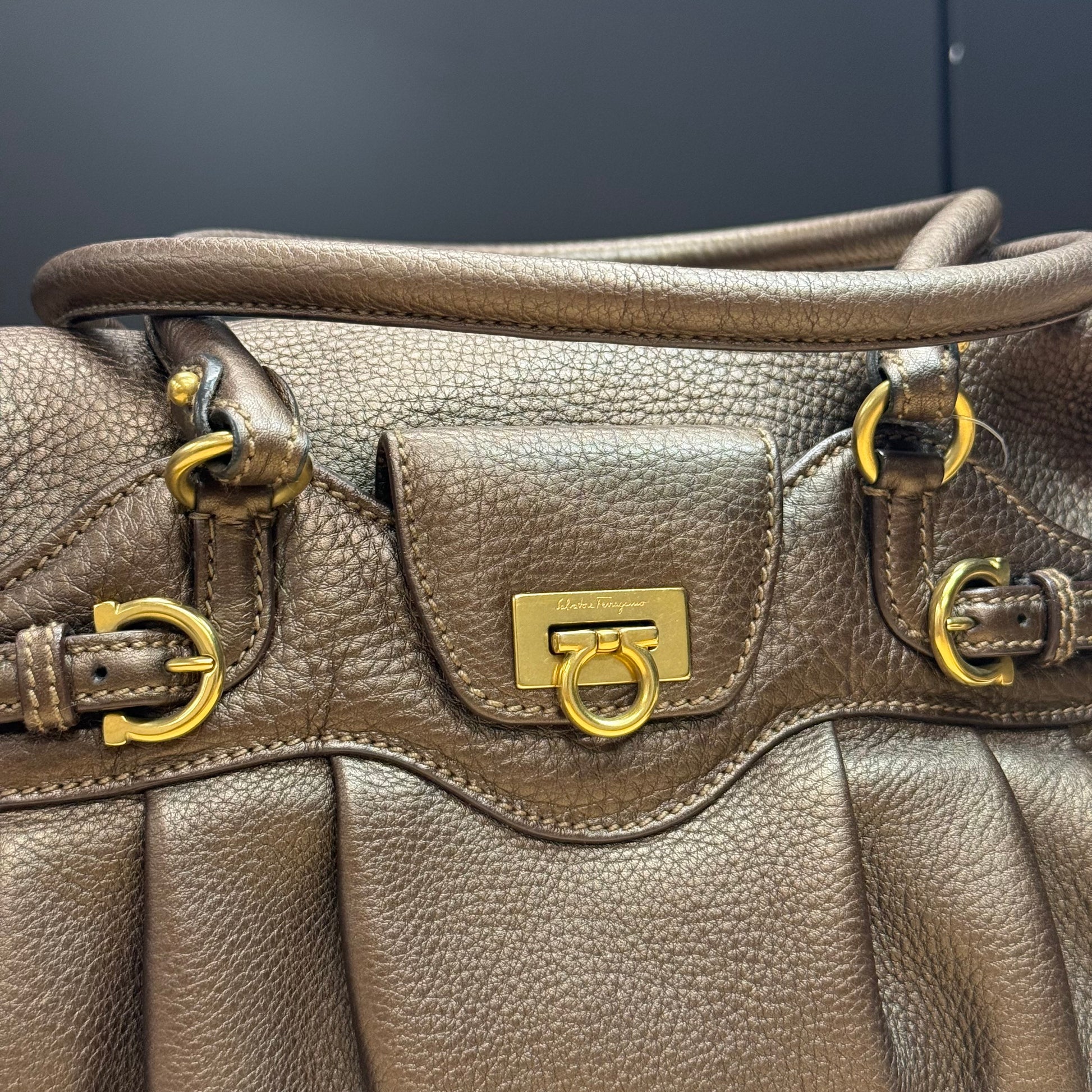 Sac shopping Ferragamo en cuir de veau grainé brun métallisé