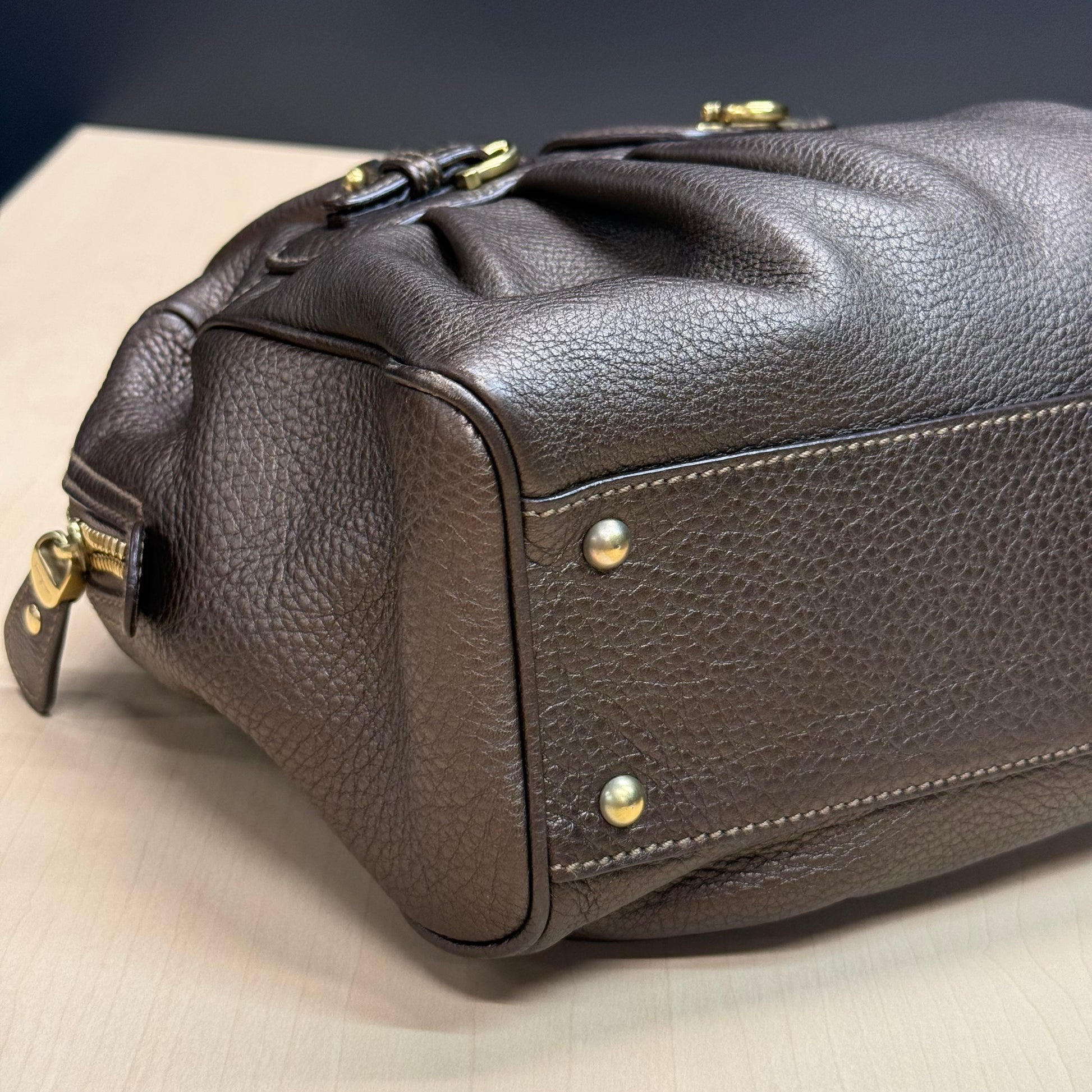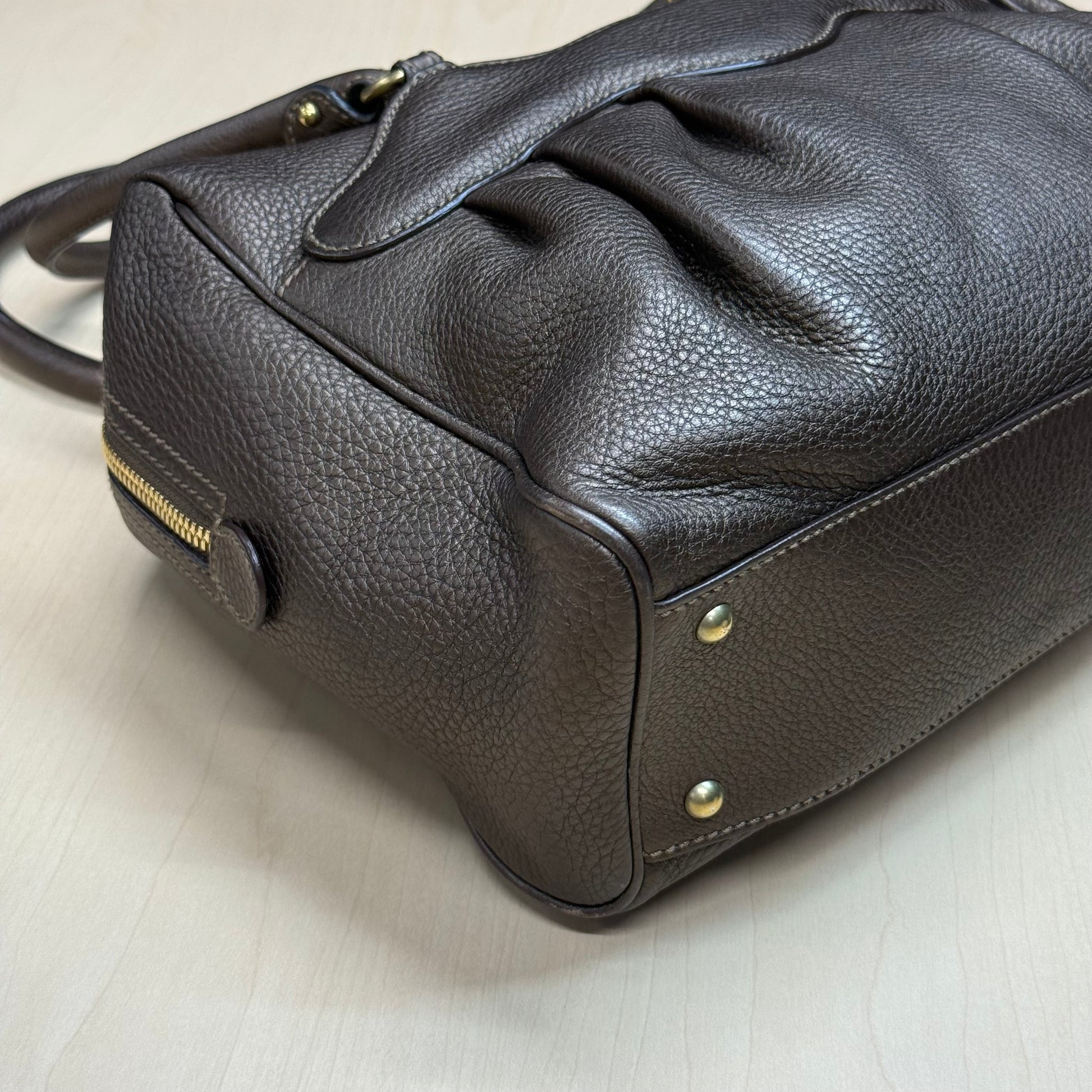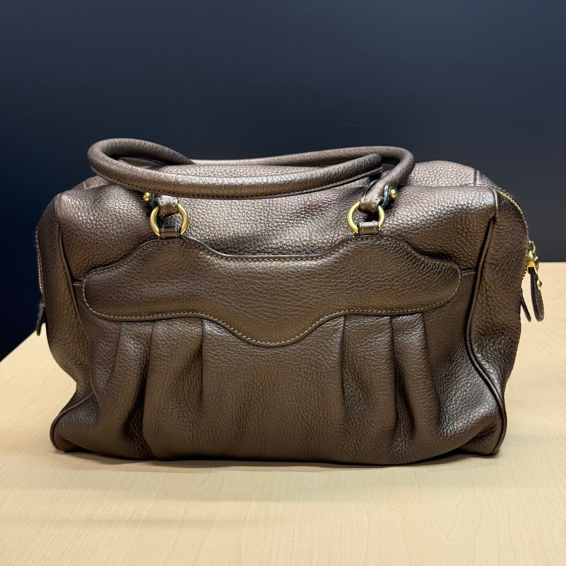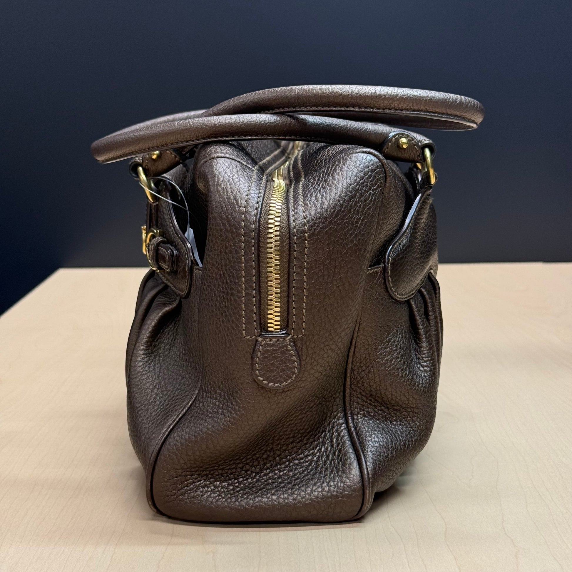 Sac shopping Ferragamo en cuir de veau grainé brun métallisé